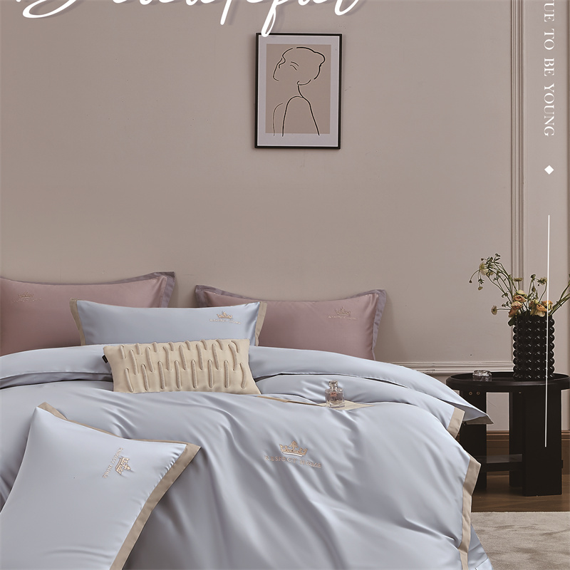 (总)家维 2025新款60支绣花长绒棉四件套,豆沙粉,香芋紫,雾青色,香槟金,浅云灰,椰紫