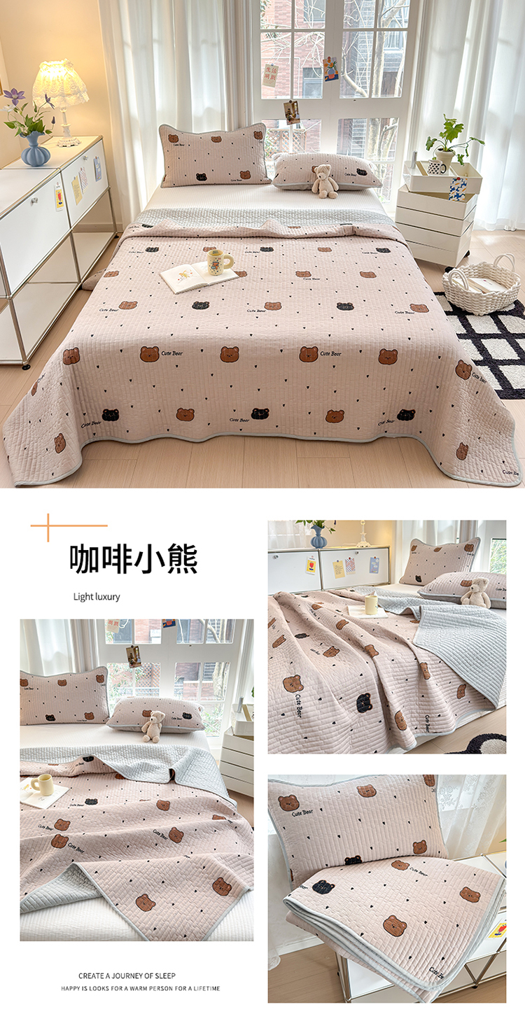 当前位置: 91家纺网 > 商品网购 > 床品套件 > 三件套 > 美优兰 2025春款全棉单面高温砂洗床盖 咖啡小熊