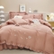 商品名称:苏木年华 2024新款夏沫花语系列韩版荷叶边刺绣花边加大床单四件套 西柚红