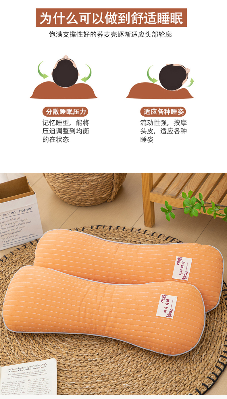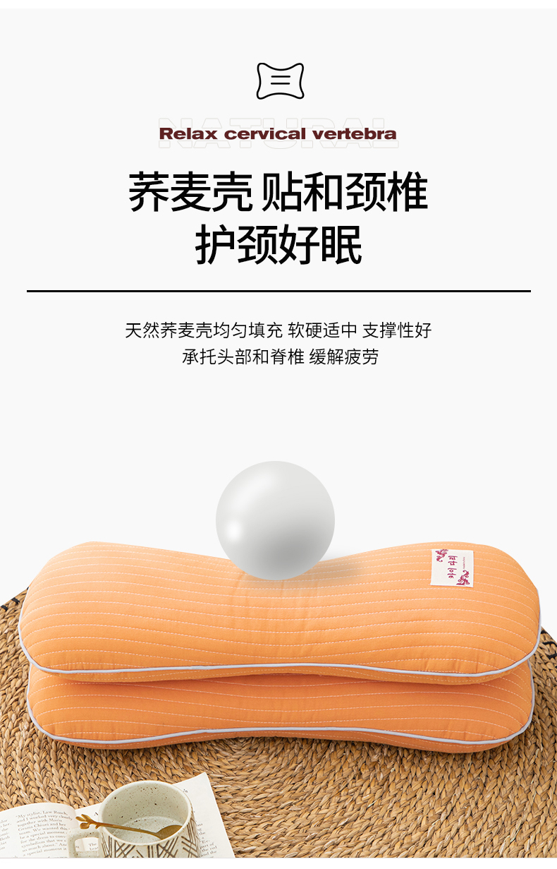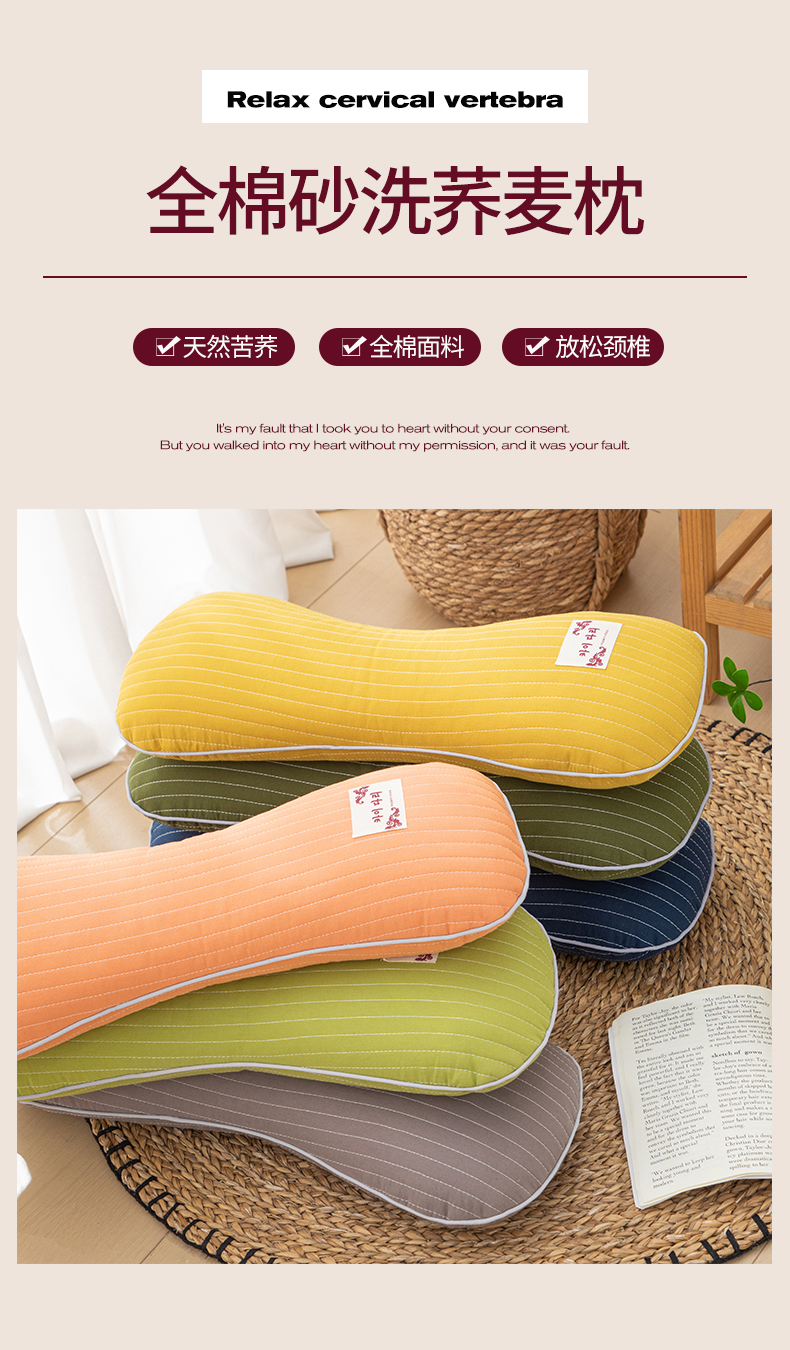 商品名称:(总)织布人 2024新款荞麦枕全棉砂洗骨型颈椎枕全荞麦壳护椎枕头枕芯