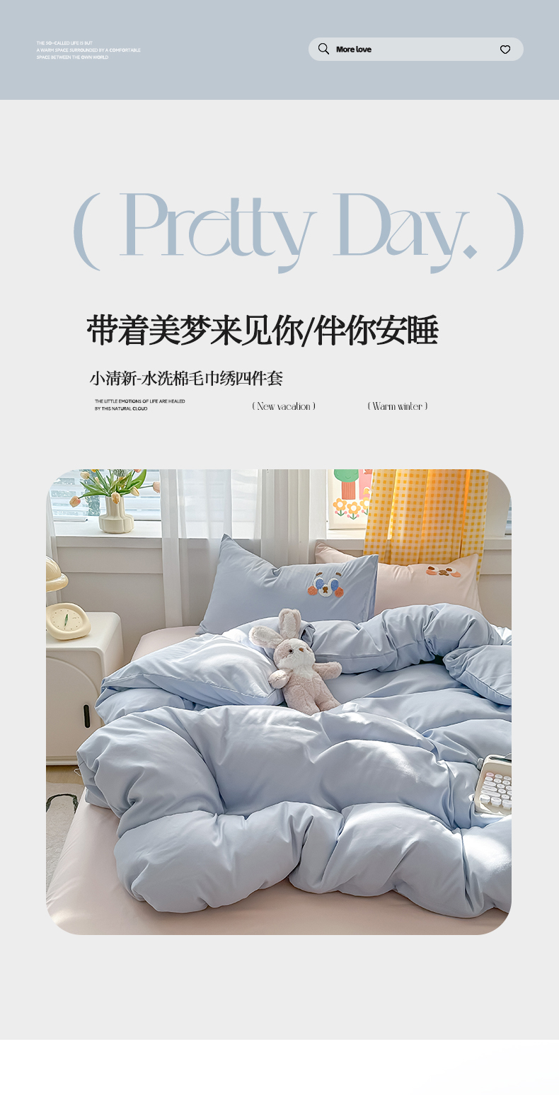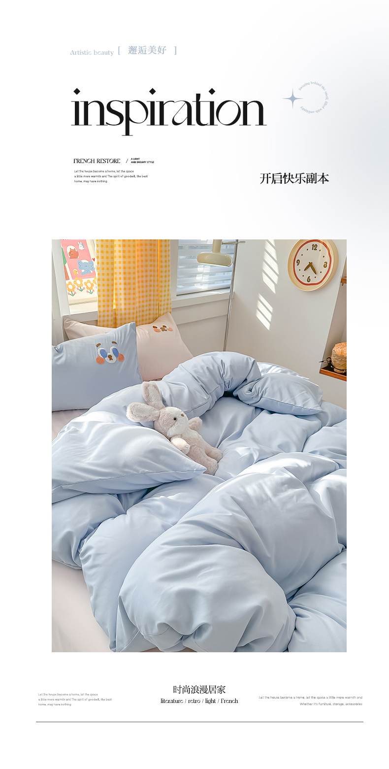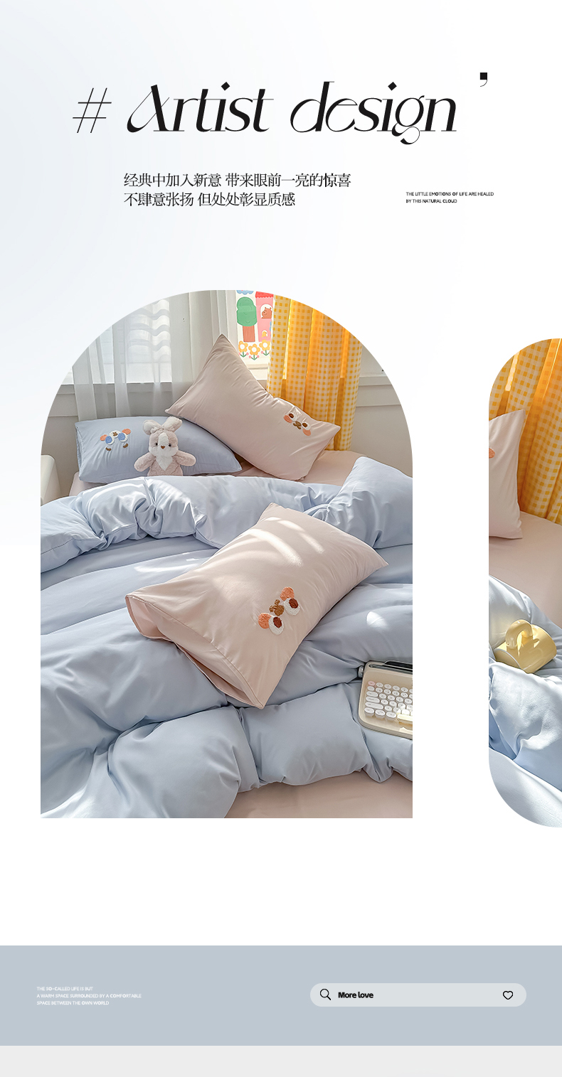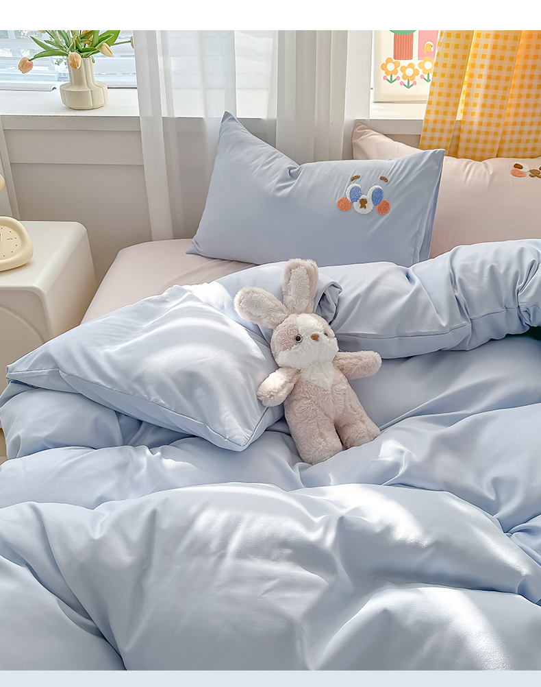 当前位置: 91家纺网 > 商品网购 > 床品套件 > 四件套 > 水洗棉四件套 > 韩都家居 2024新款水洗棉萌眼系列四件套 兰+藕粉