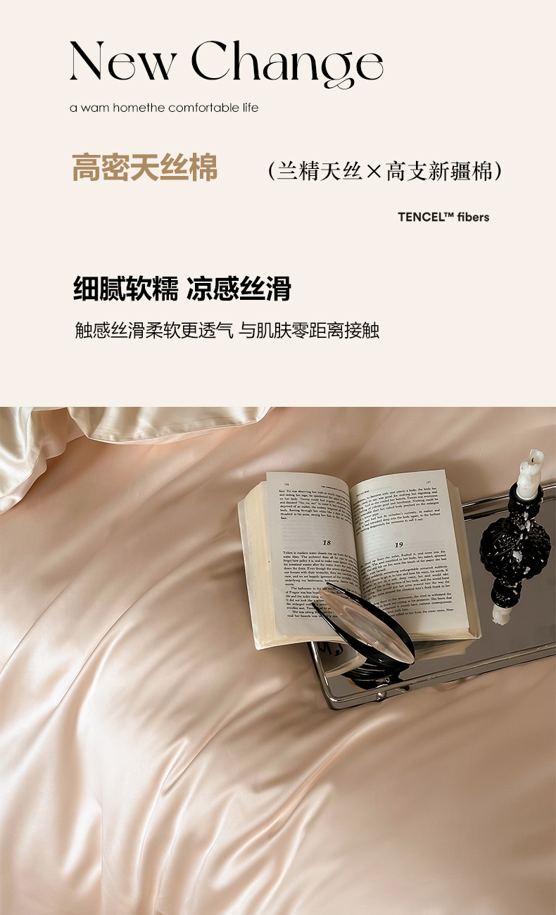 (总)沐晴 2023新款数码印花60S兰精天丝纯色简约轻奢四件套,茶花白,霍瓦纳,蓝苓花,抹茶绿,奶油桔,珊瑚粉,松石灰,太妃糖,向阳橙,薰衣草