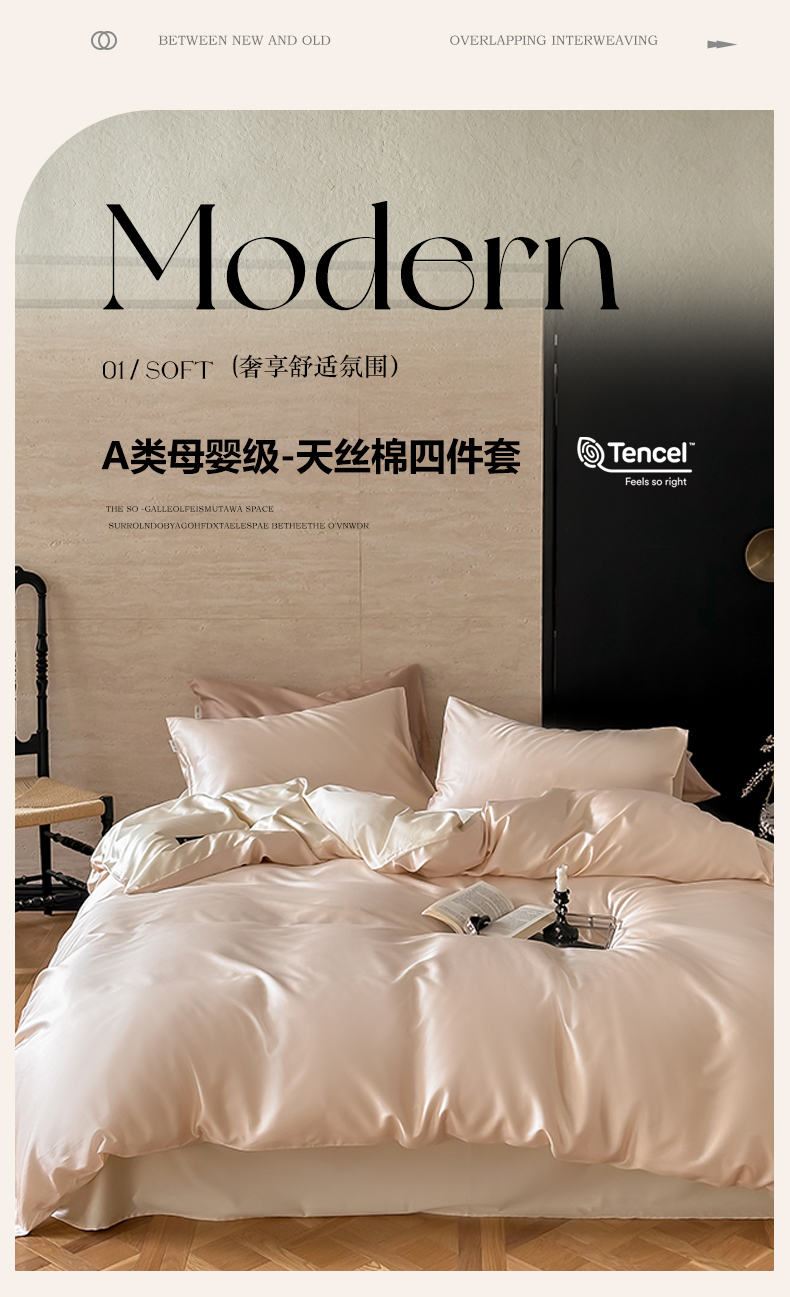 商品名称:(总)沐晴2024新款春夏60兰精天丝简约轻奢纯色长绒棉四件套