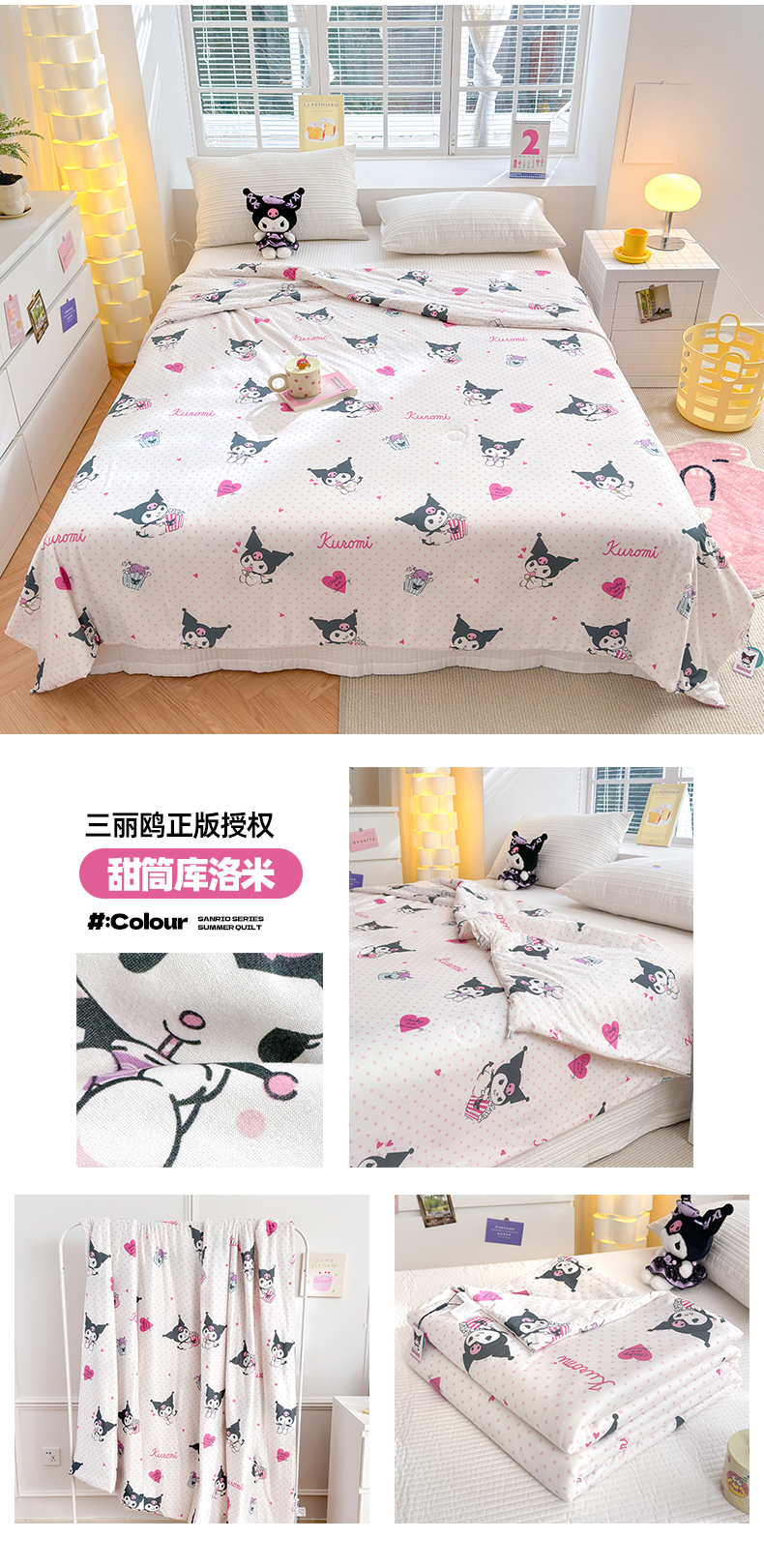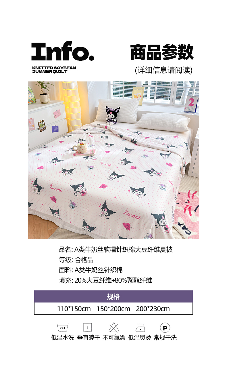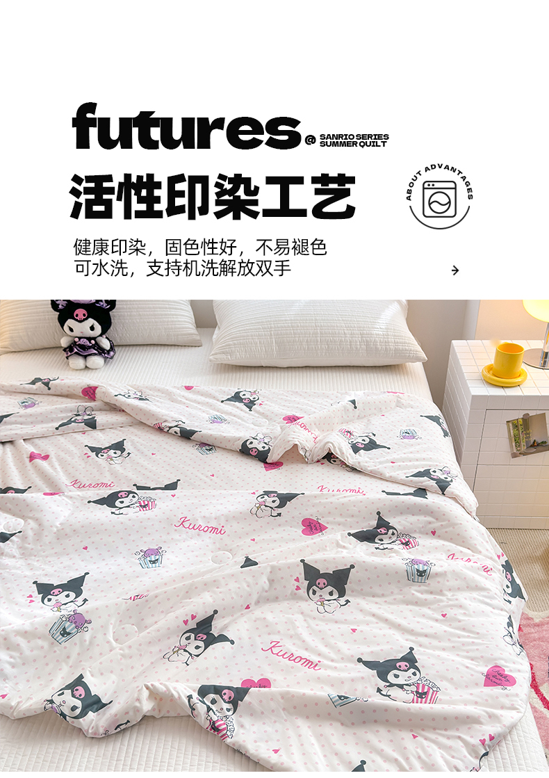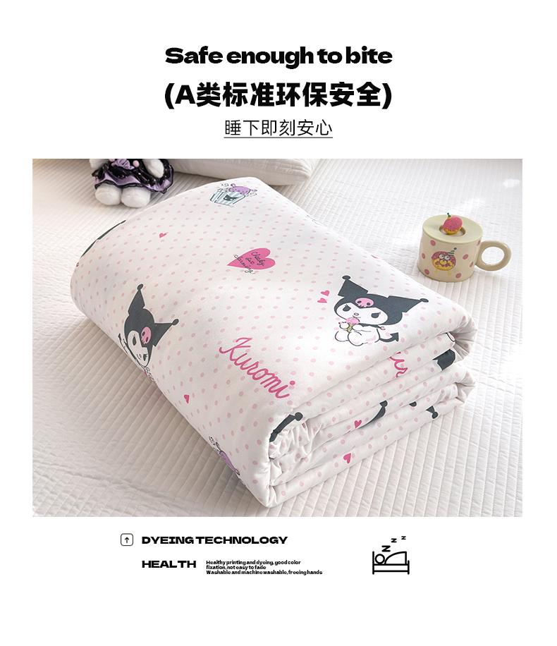 • 91家纺网 家纺一手货源 找家纺 博雅 2024新款三丽鸥正版系列A类牛奶丝软糯针织棉大豆纤维夏被 针织棉(带防伪标)甜筒库洛米