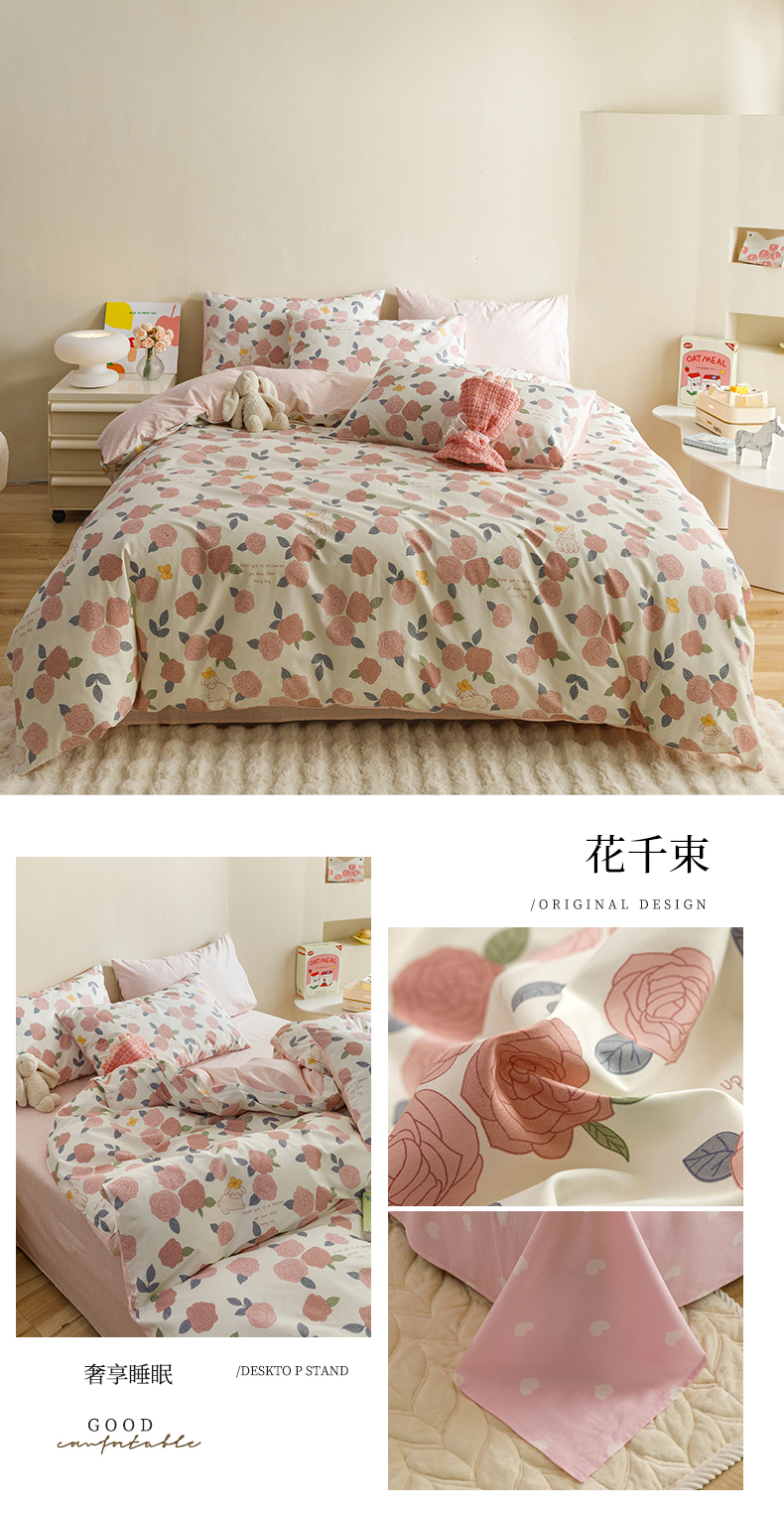 当前位置: 91家纺网 > 商品网购 > 床品套件 > 四件套 > 全棉普通四件套 > 红粉佳人家纺 2024新款纯棉卡通小清新四件套及单品 花千束