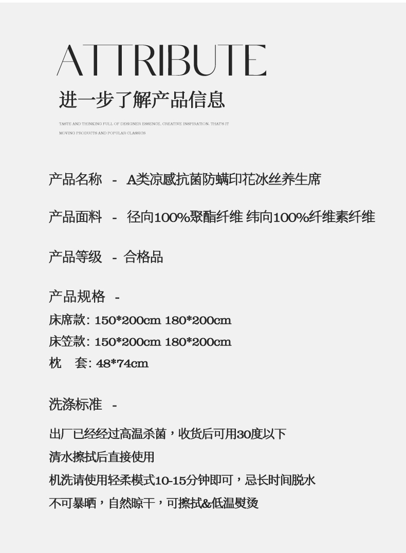 商品名称:(总)三味舒屋 2025新款凉感马德里冰丝提花刺绣凉席