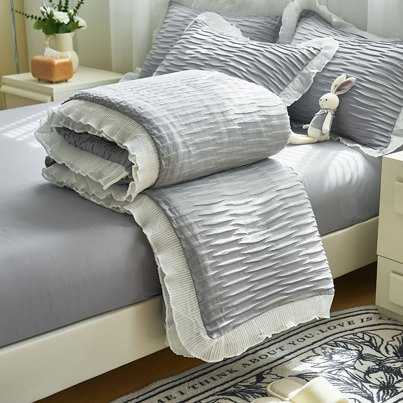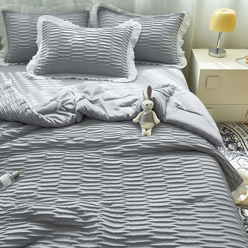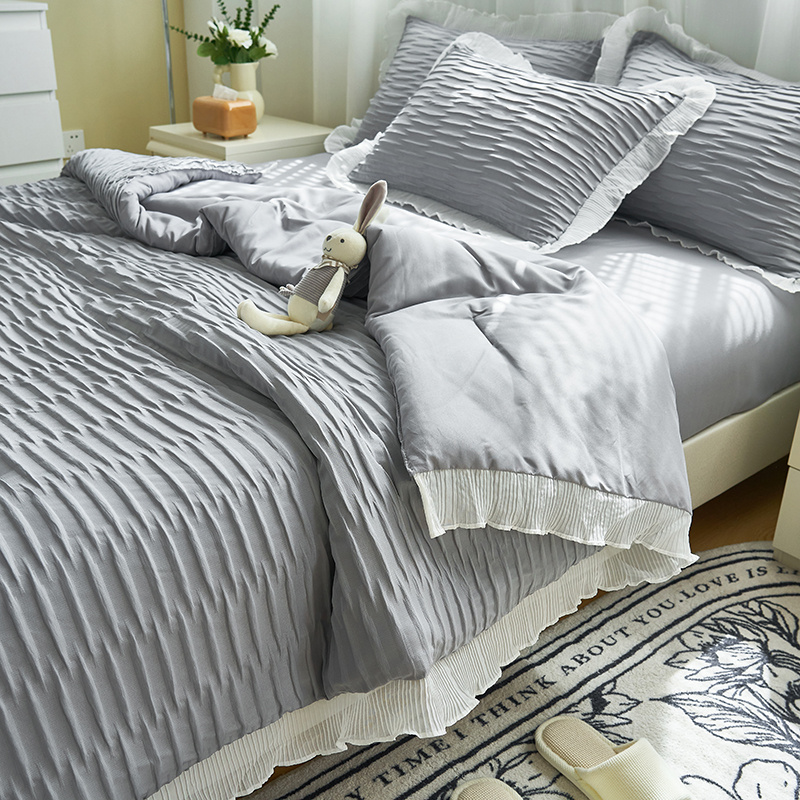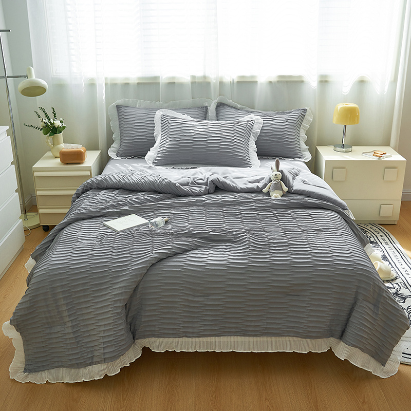 当前位置: 91家纺网 > 商品网购 > 床品套件 > 四件套 > 夏被四件套 > 畅销被业 2024新款泡泡纱花边夏被四件套 花边款泡泡纱-情调灰