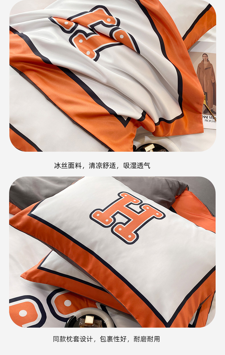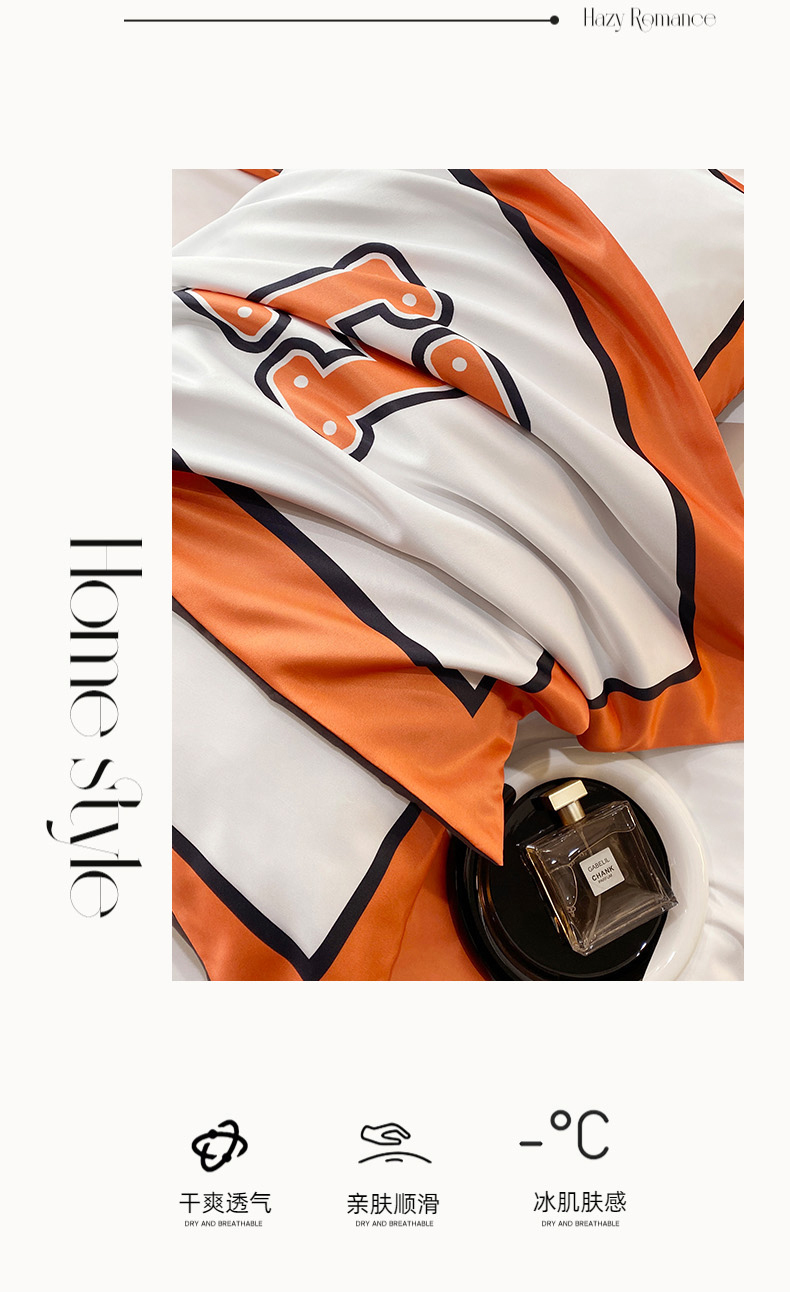 商品名称:色鬼布艺 2024新款冰丝四件套水洗真丝四件套 大H1