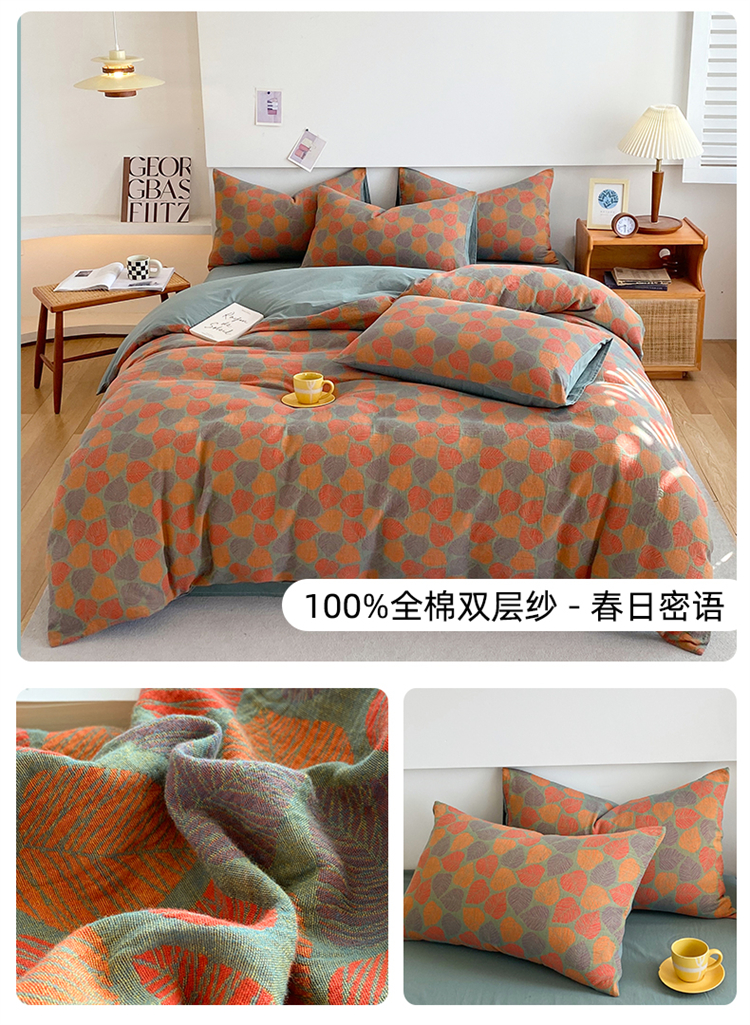 (总)2024新款全棉纯棉双层纱三层纱立体提花四件套,春日密语,森林奇境,汉塞尔,百福,美好旋律,苏娜,萨曼红