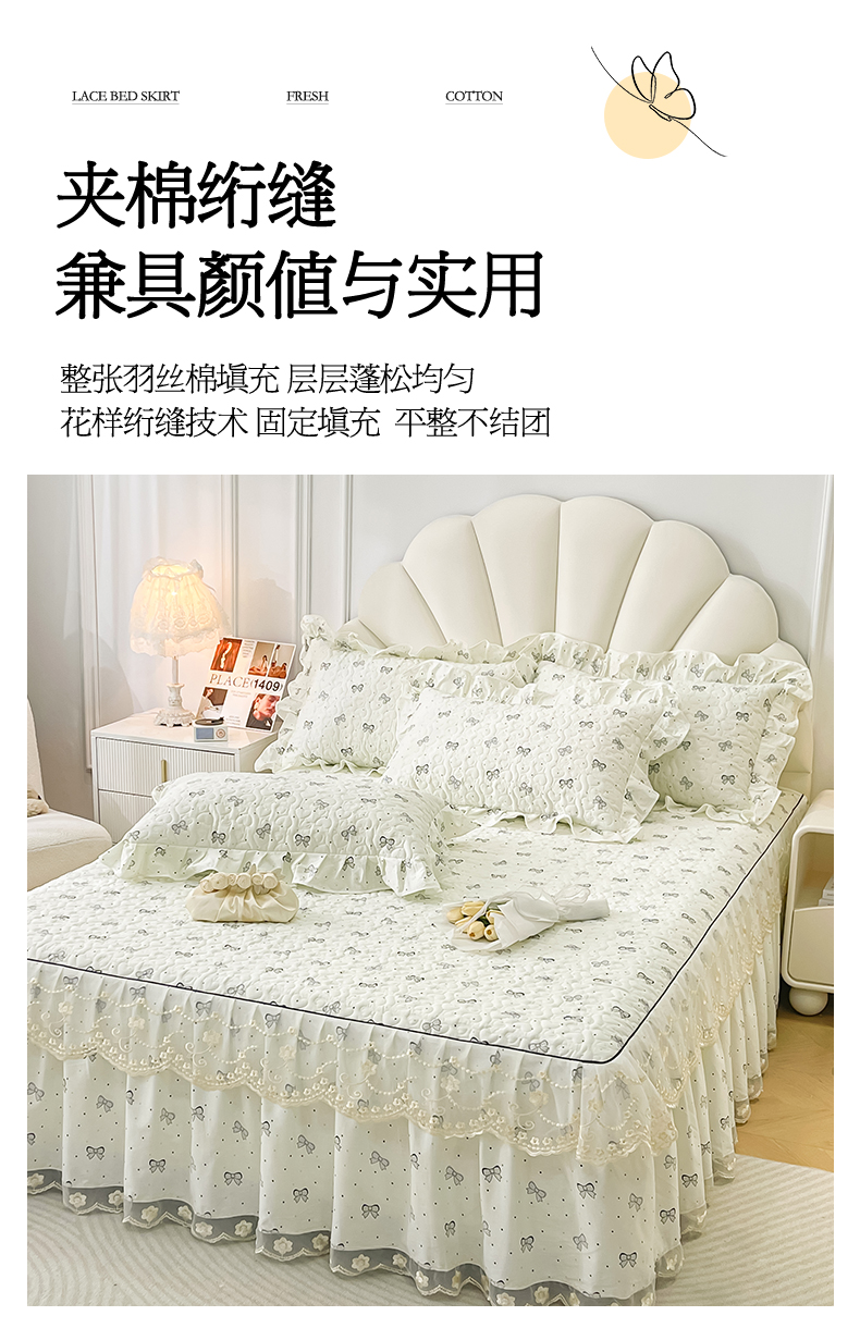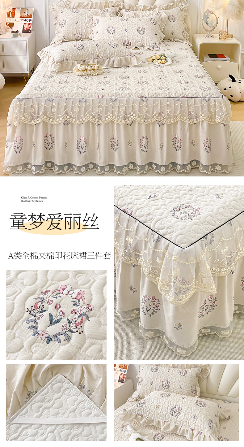宜凡家纺 2024新款全棉夹棉印花床裙系列三件套 亚瑟的梦