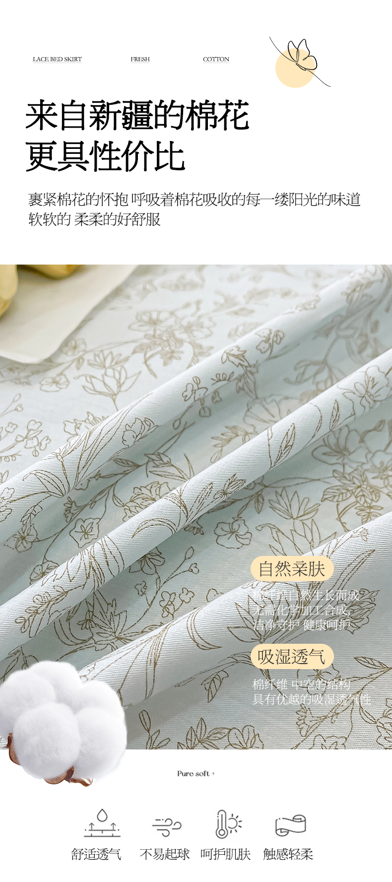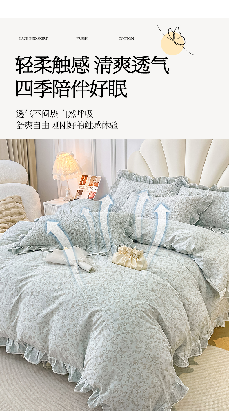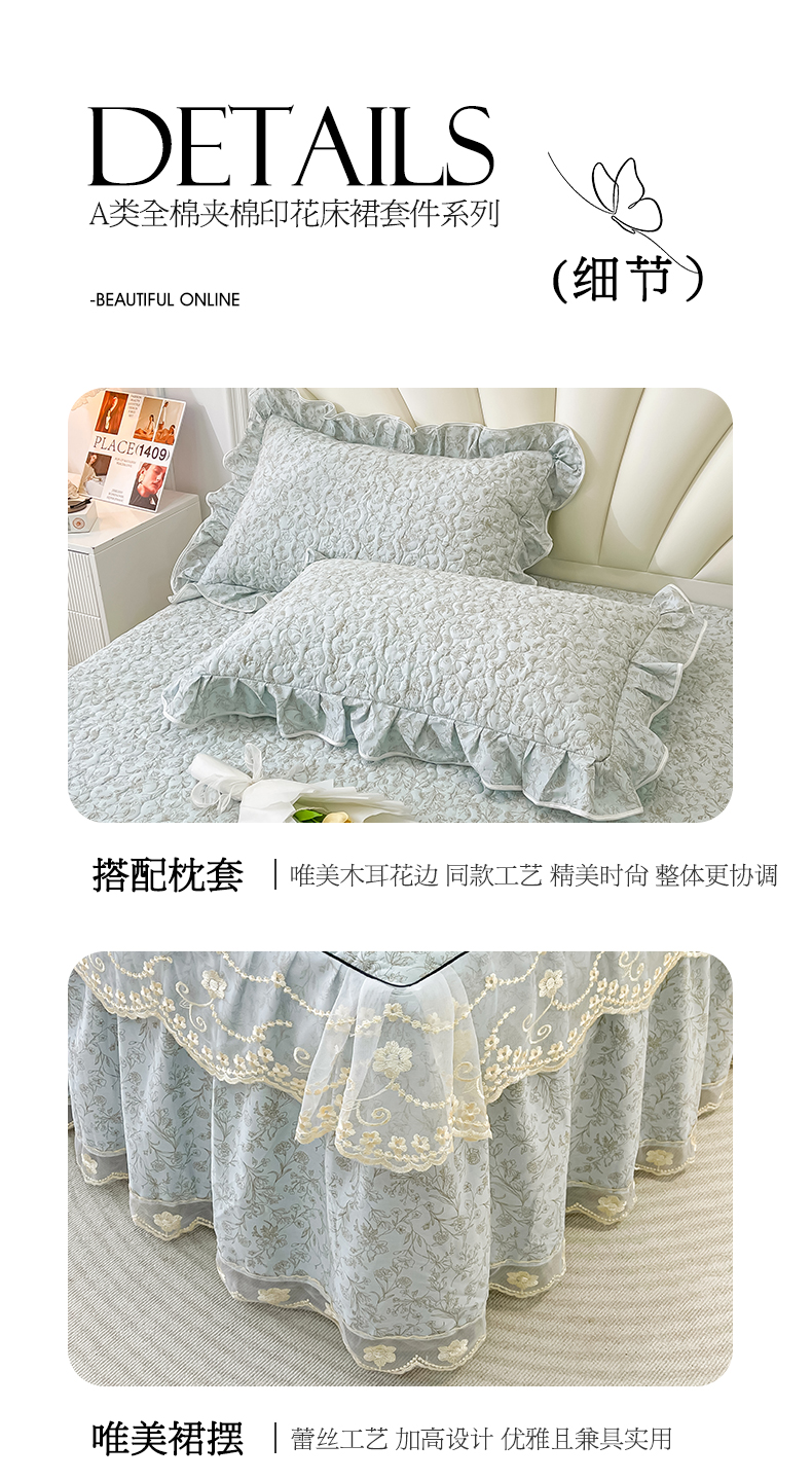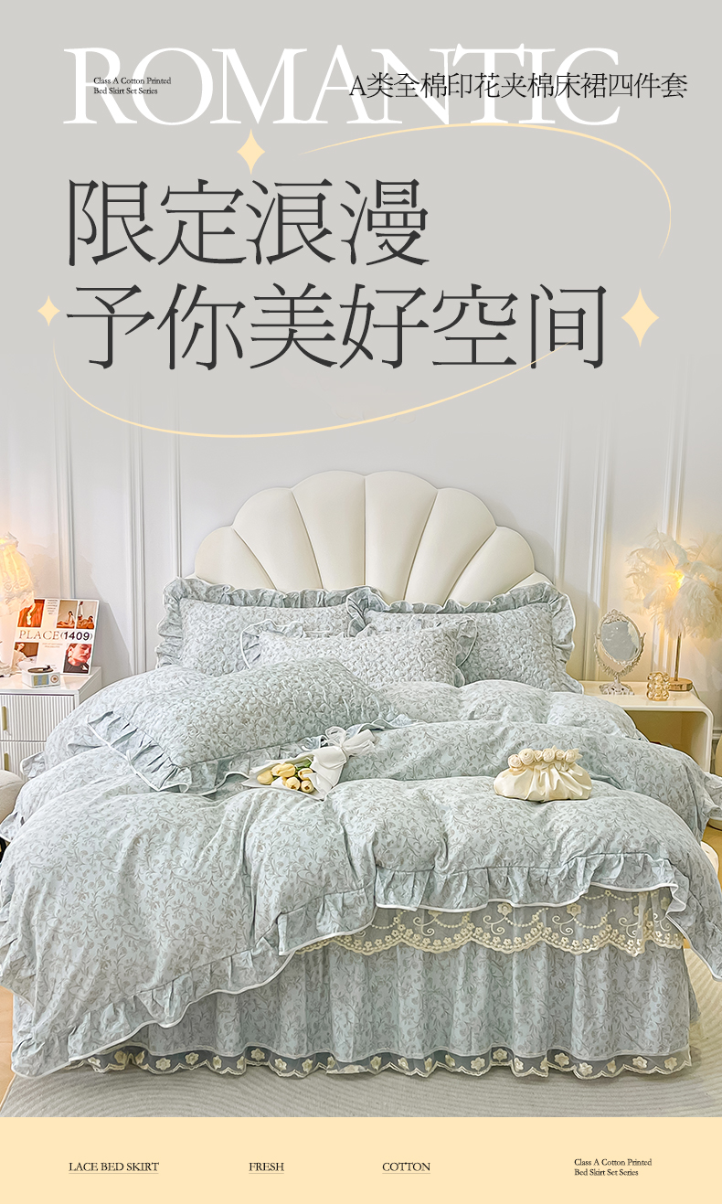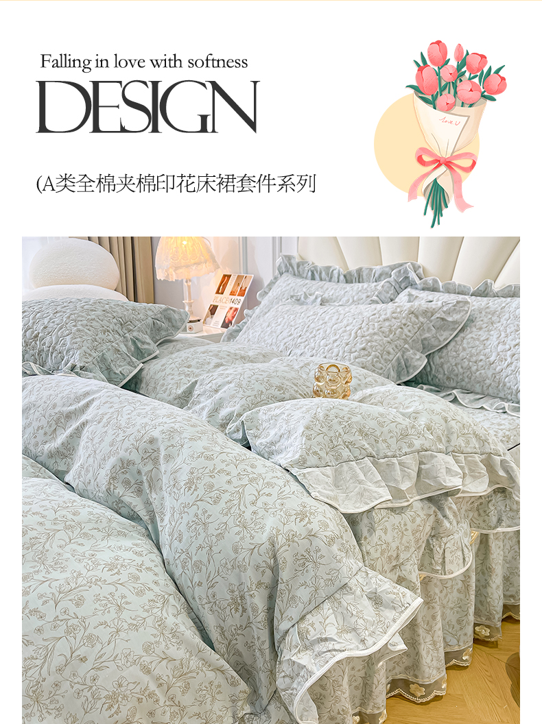 宜凡家纺 2024新款全棉夹棉印花床裙系列四件套 随风意想
