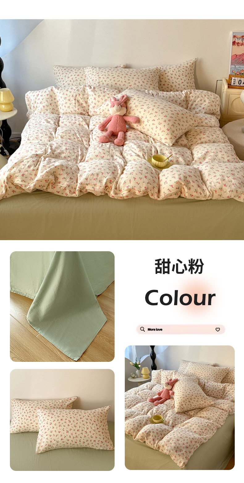 商品名称:千朵 2024新款全棉双层纱四件套 甜心粉