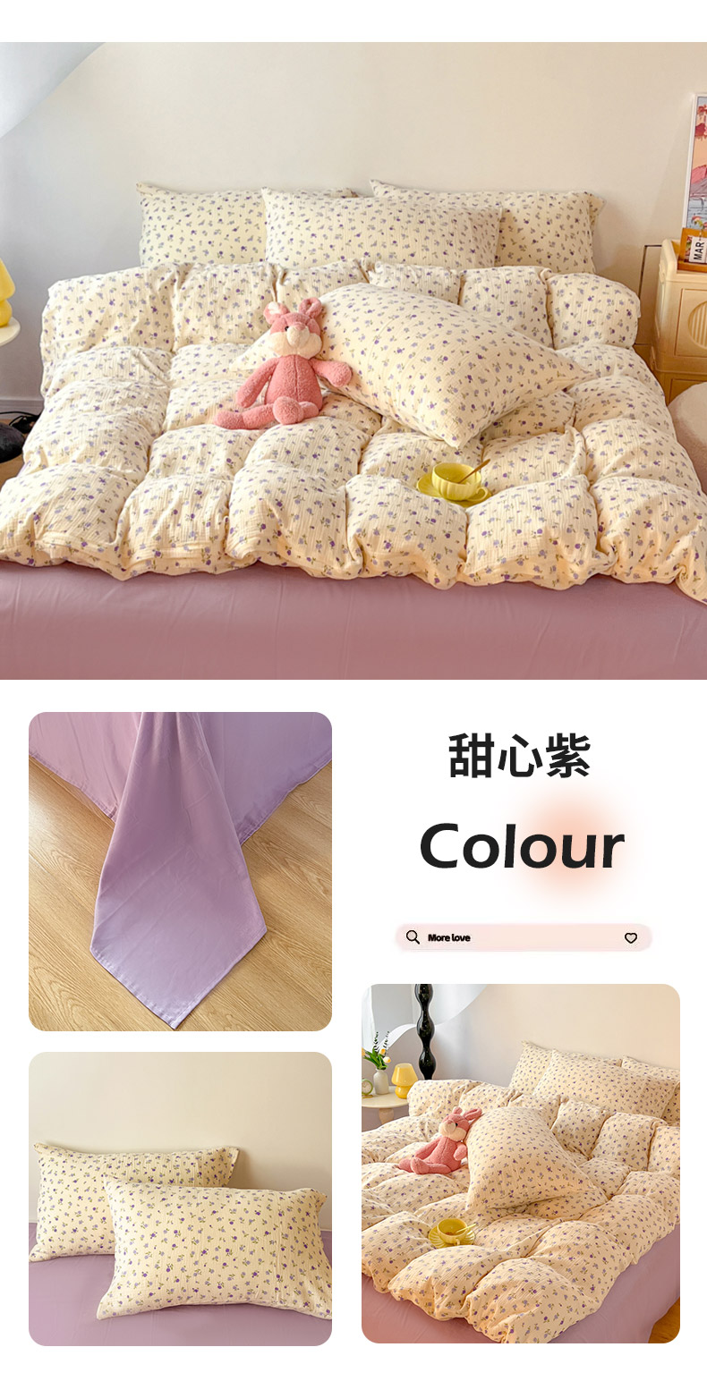 (总)千朵 2025新款全棉纯棉色织提花水洗棉四件套,杰克,景天,灵感菇,洛神,小蜜蜂,云朵,紫芙