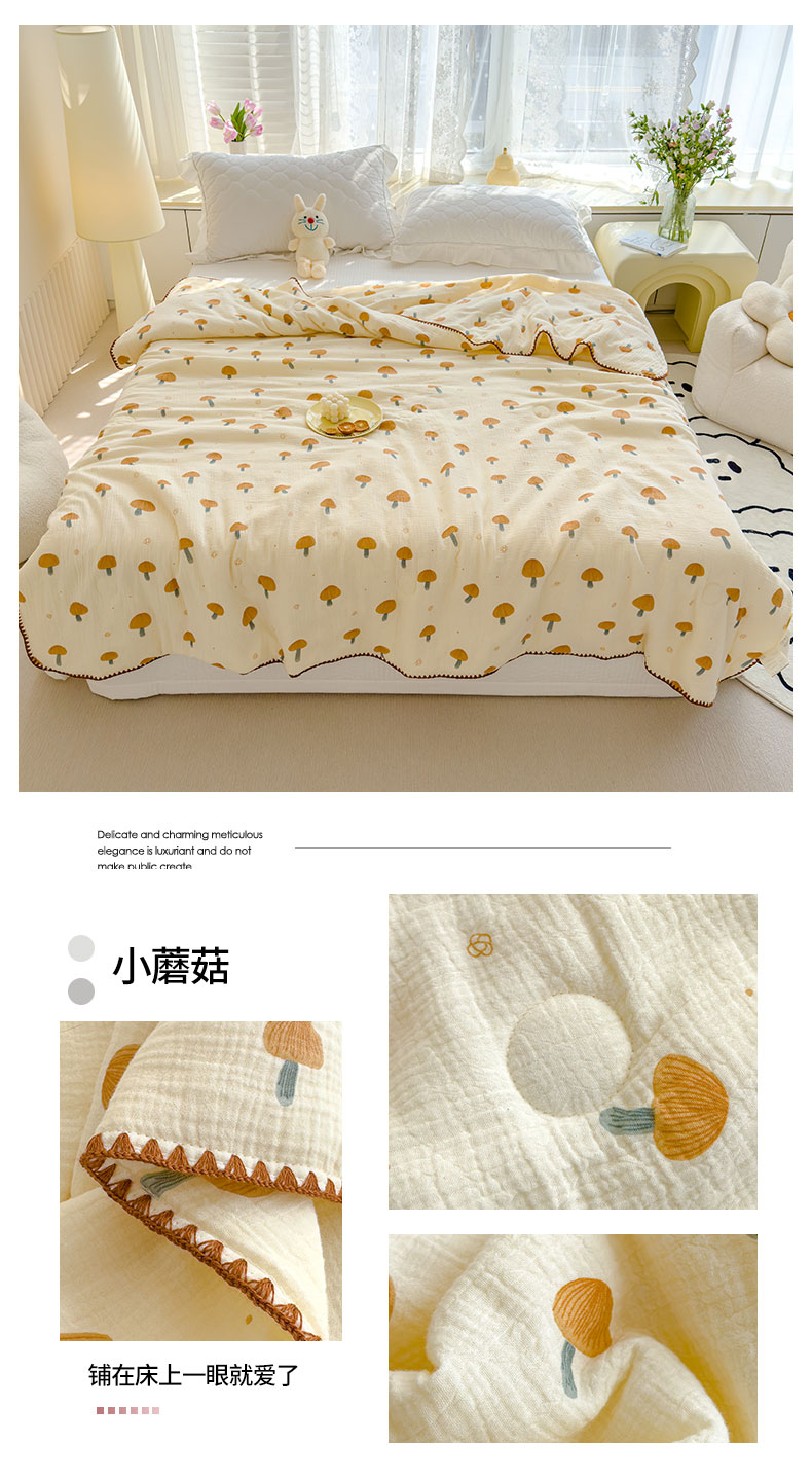 芯恋 2025新款母婴级全棉皱皱纱双层纱夏被 小蘑菇