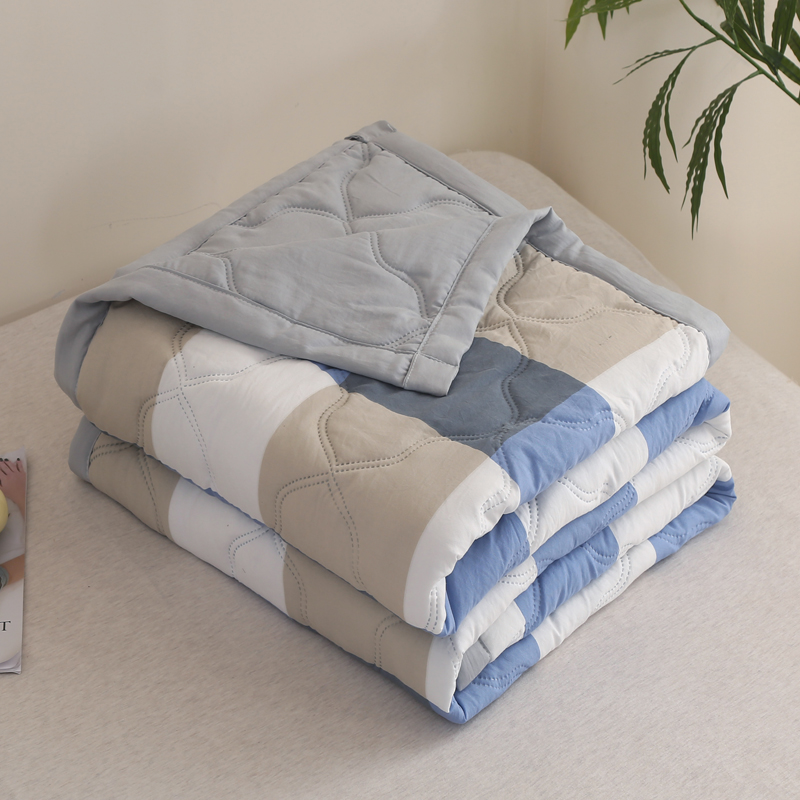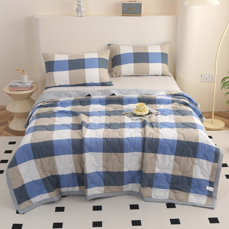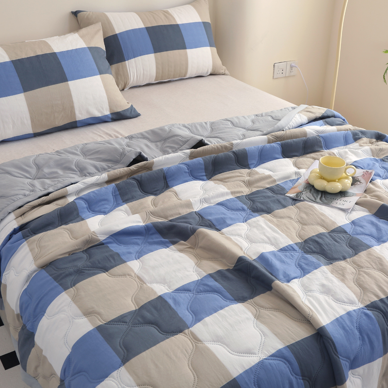 欧喜璐 2024新款水洗棉超声波礼品夏被夏凉被春秋被 大格子-蓝