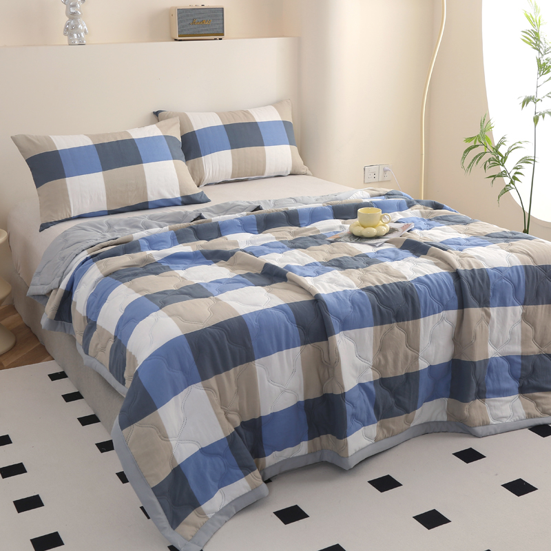 商品名称:欧喜璐 2024新款水洗棉超声波礼品夏被夏凉被春秋被 大格子-蓝