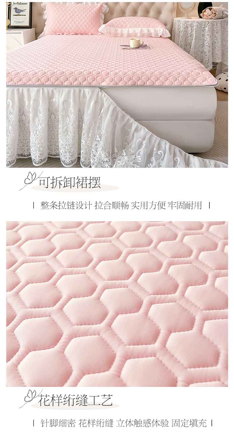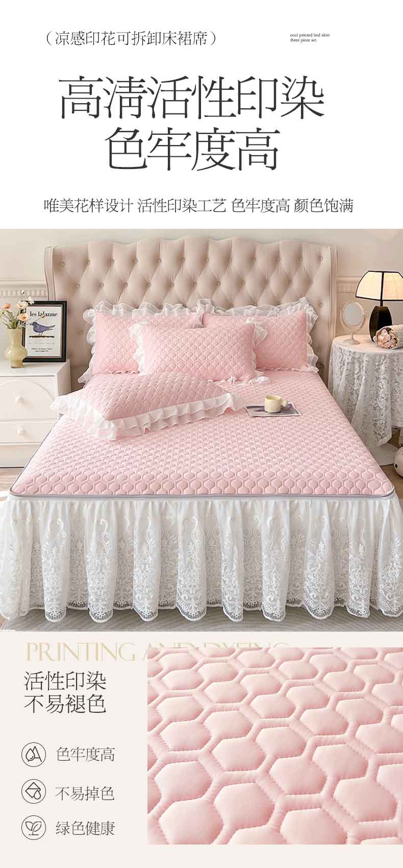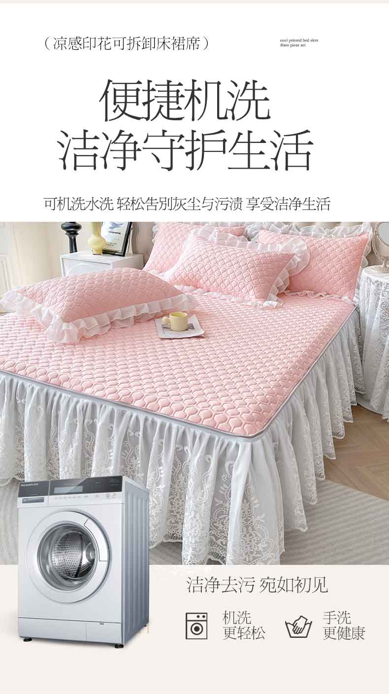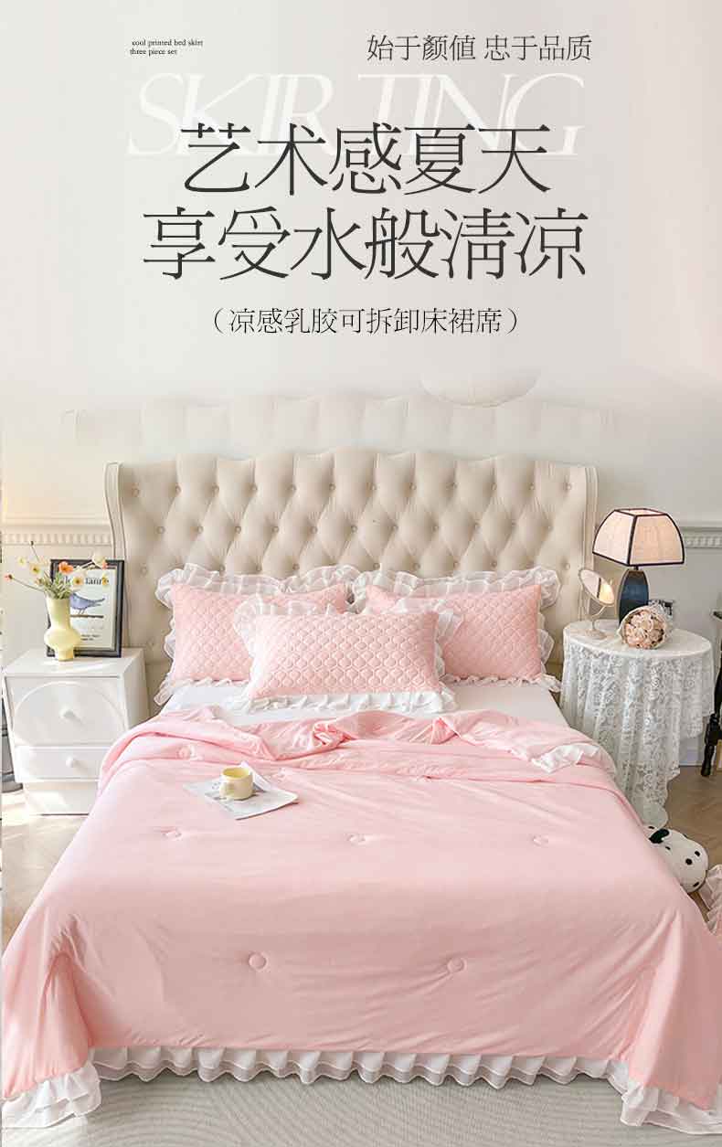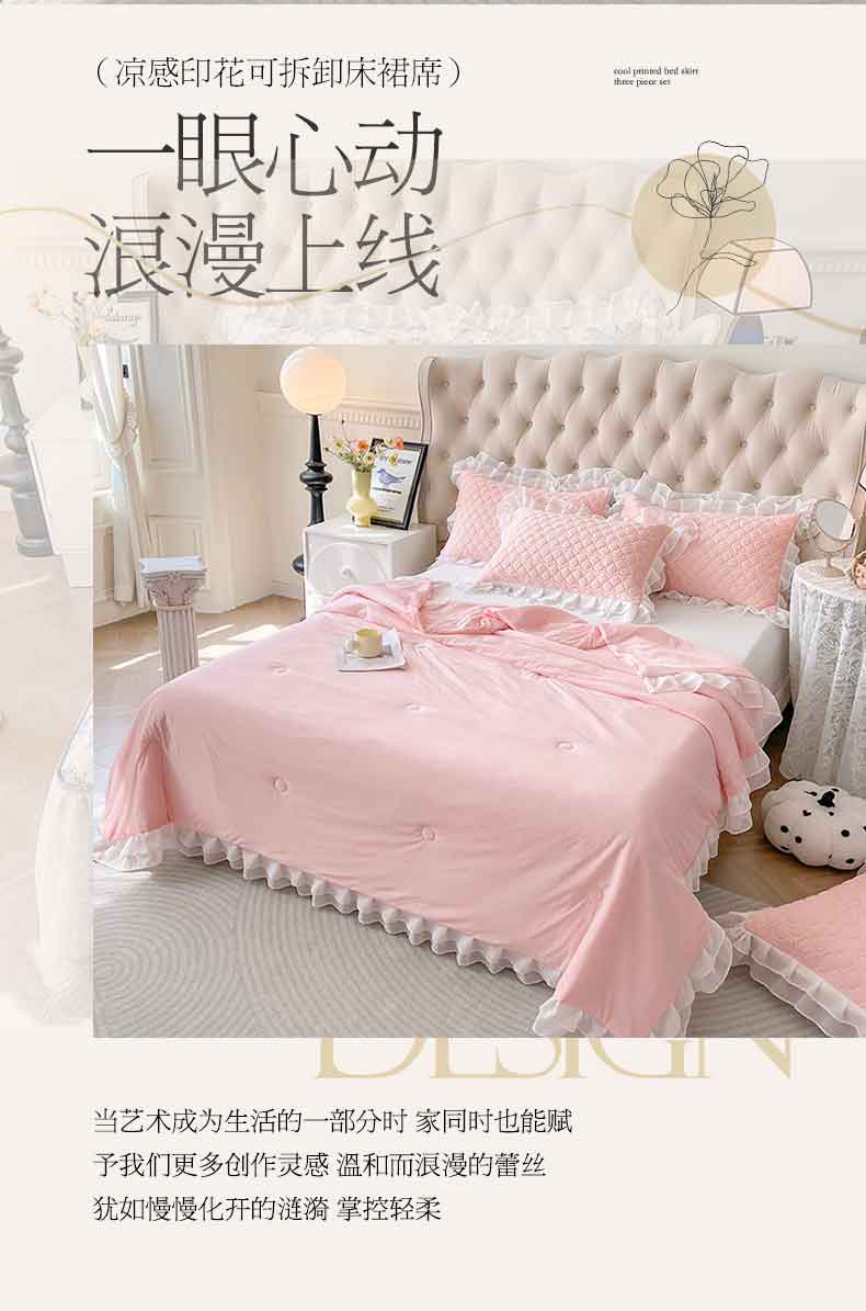 商品名称:虹星家纺 2024新款凉感丝印花可拆床裙套件-三件套 仙女粉