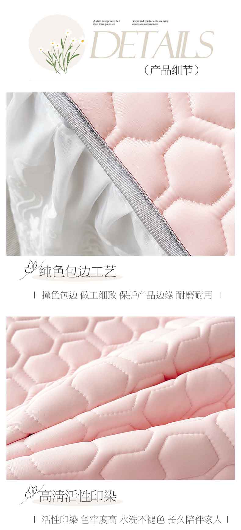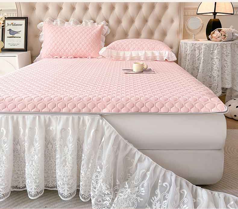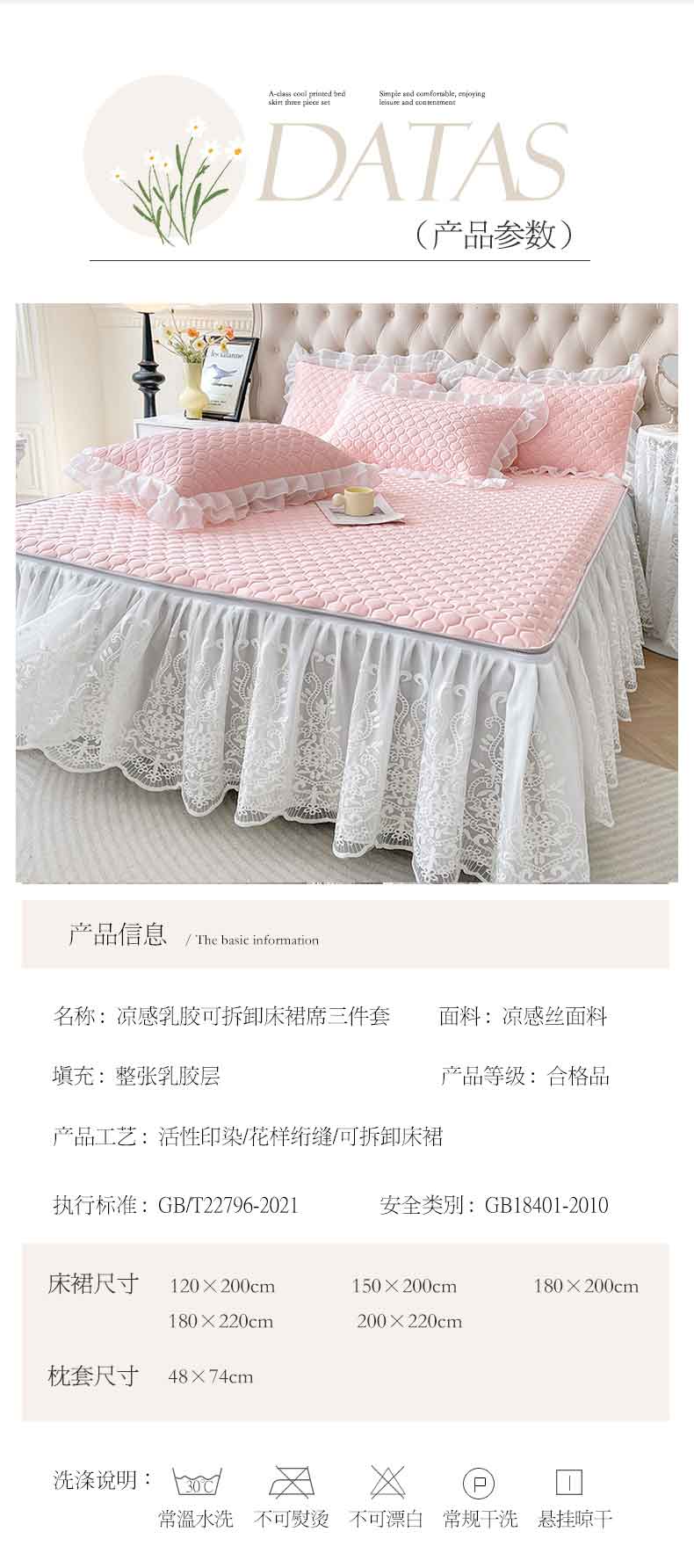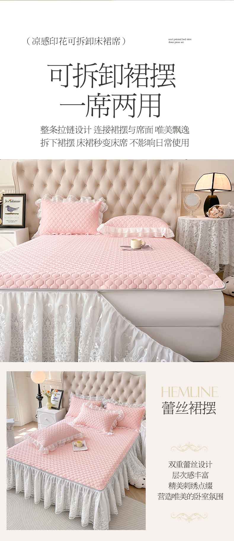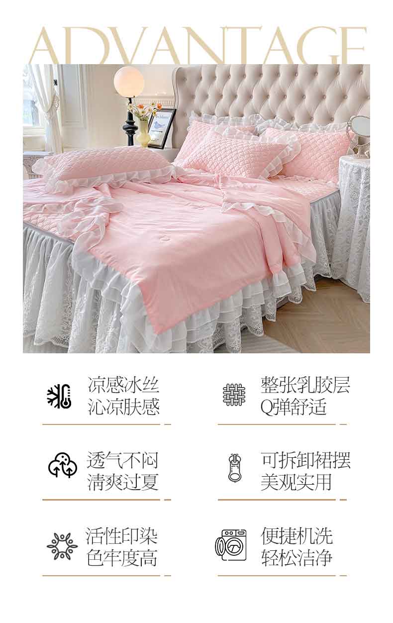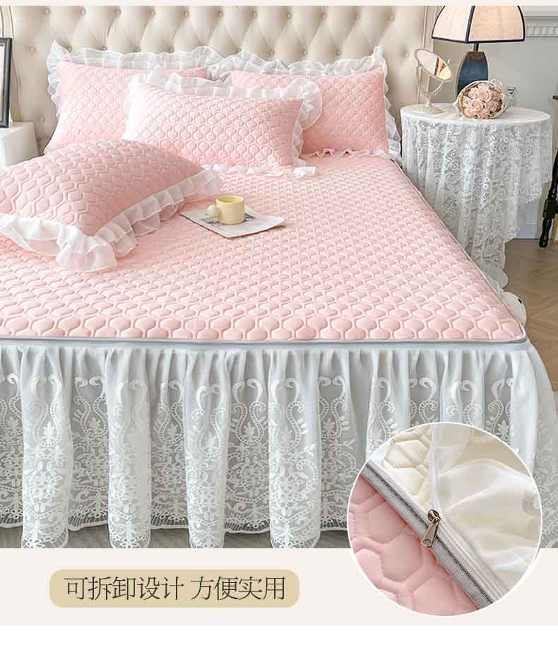 商品名称:虹星家纺 2024新款凉感丝印花可拆床裙套件-三件套 仙女粉