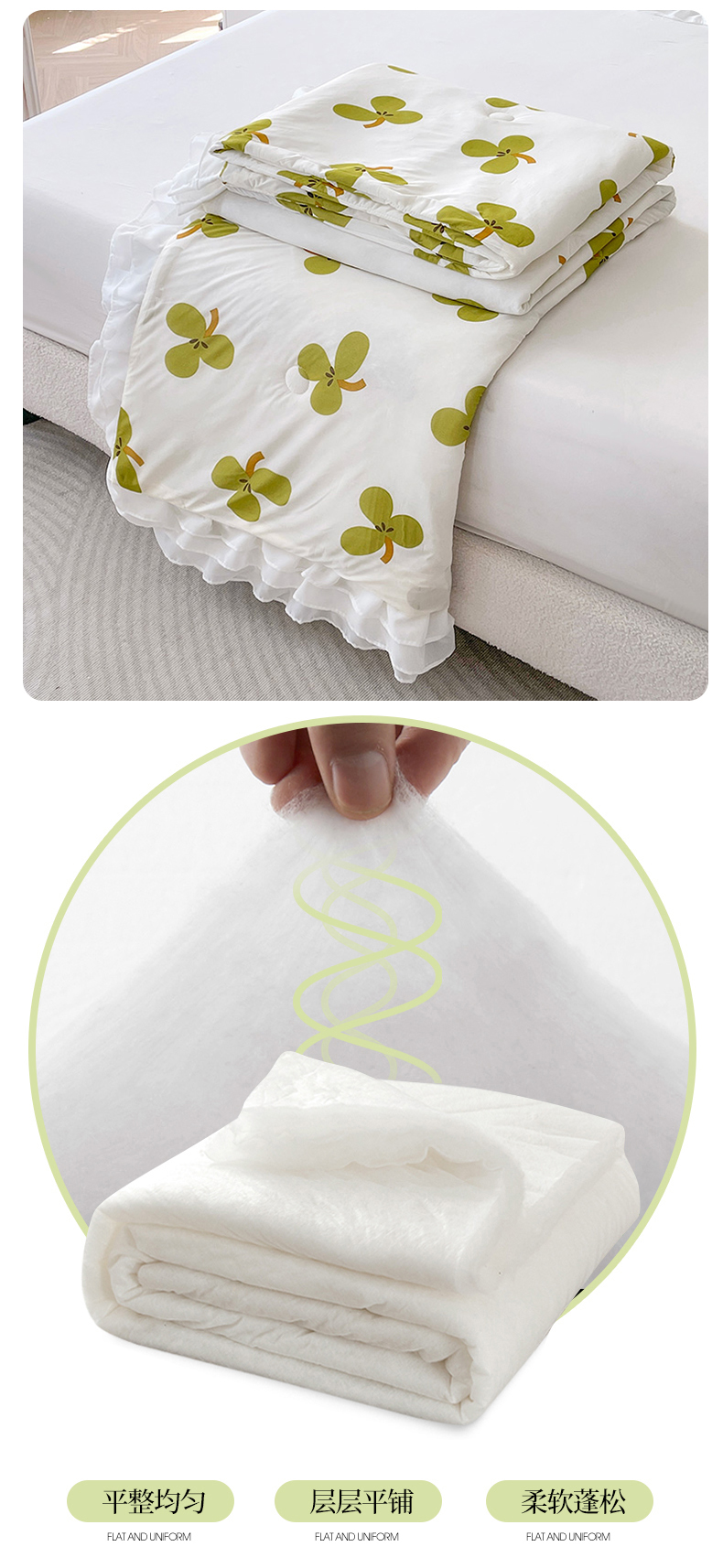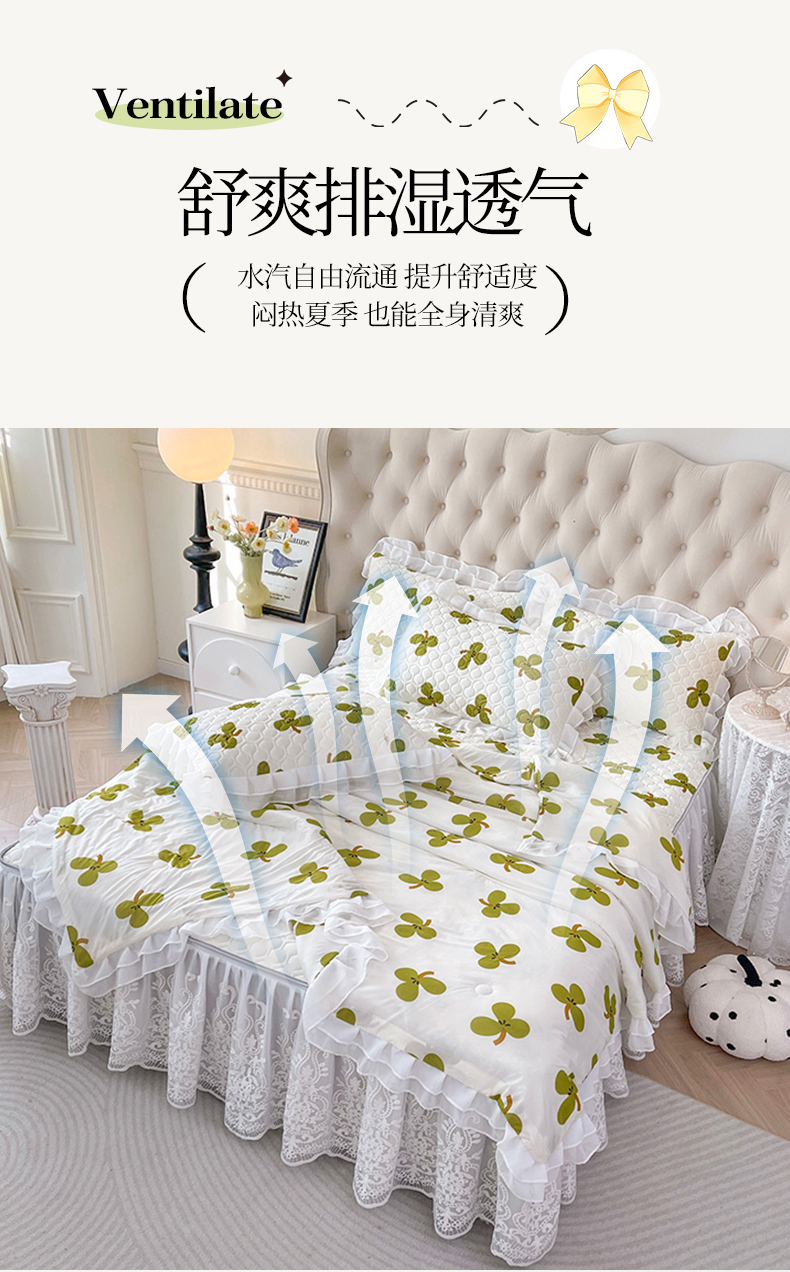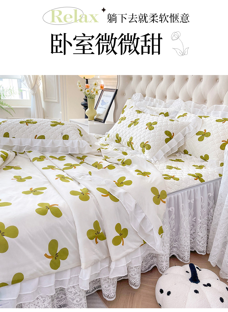 虹星家纺 2024新款凉感丝印花可拆床裙套件-夏被凉席四件套 三叶星草