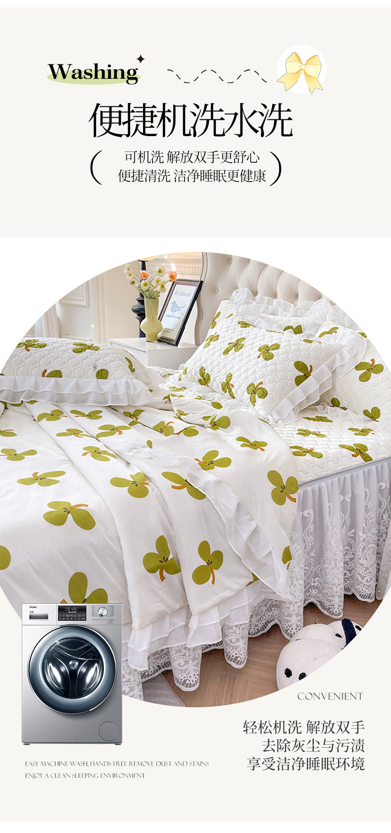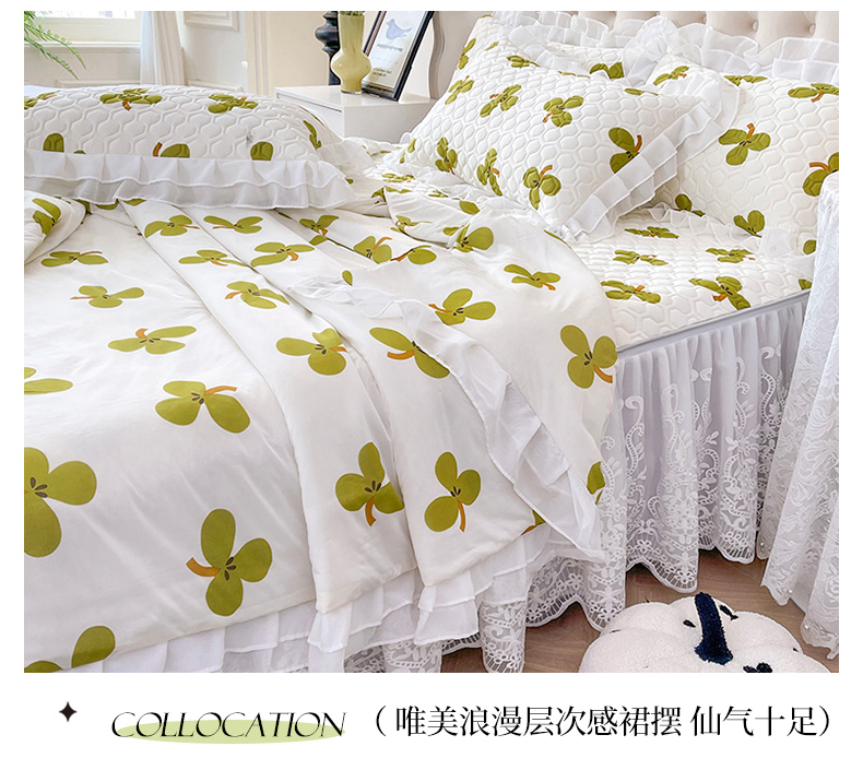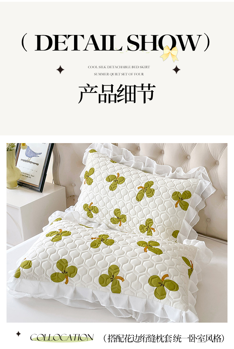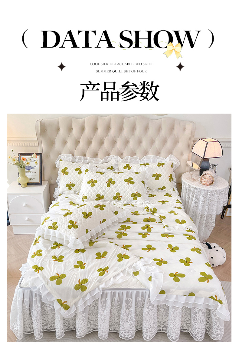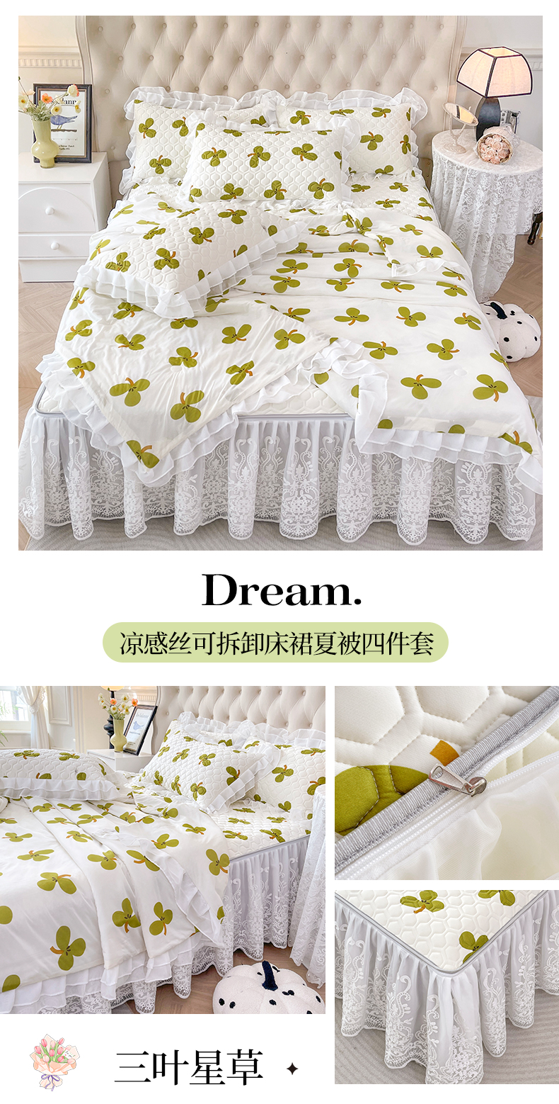 商品名称:虹星家纺 2024新款凉感丝印花可拆床裙套件-夏被凉席四件套 三叶星草