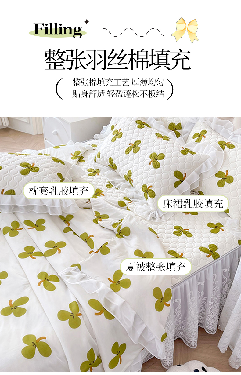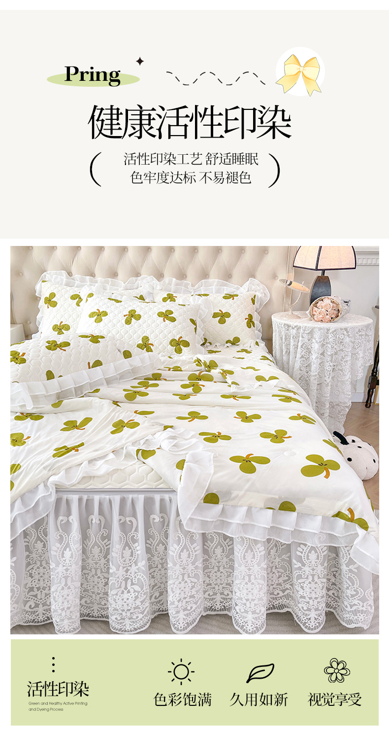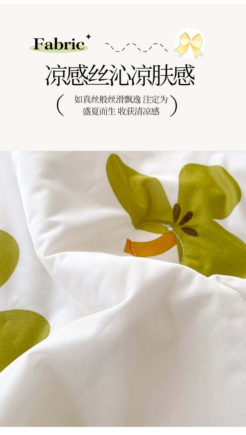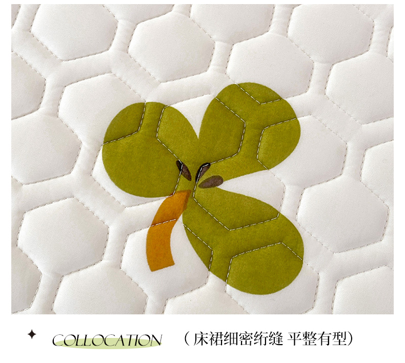 商品名称:虹星家纺 2024新款凉感丝印花可拆床裙套件-夏被凉席四件套 三叶星草