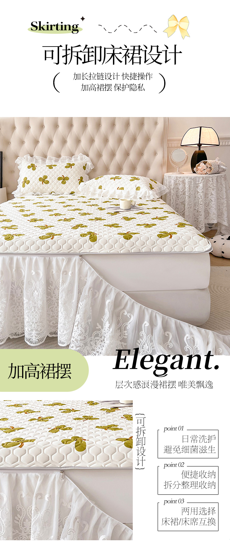 (总)虹星家纺 2025新款A类冰感凉豆豆床裙席三件套-素夏,素夏-抹茶绿,素夏-蜜桃粉,素夏-青果绿,素夏-天空蓝,素夏-月光灰