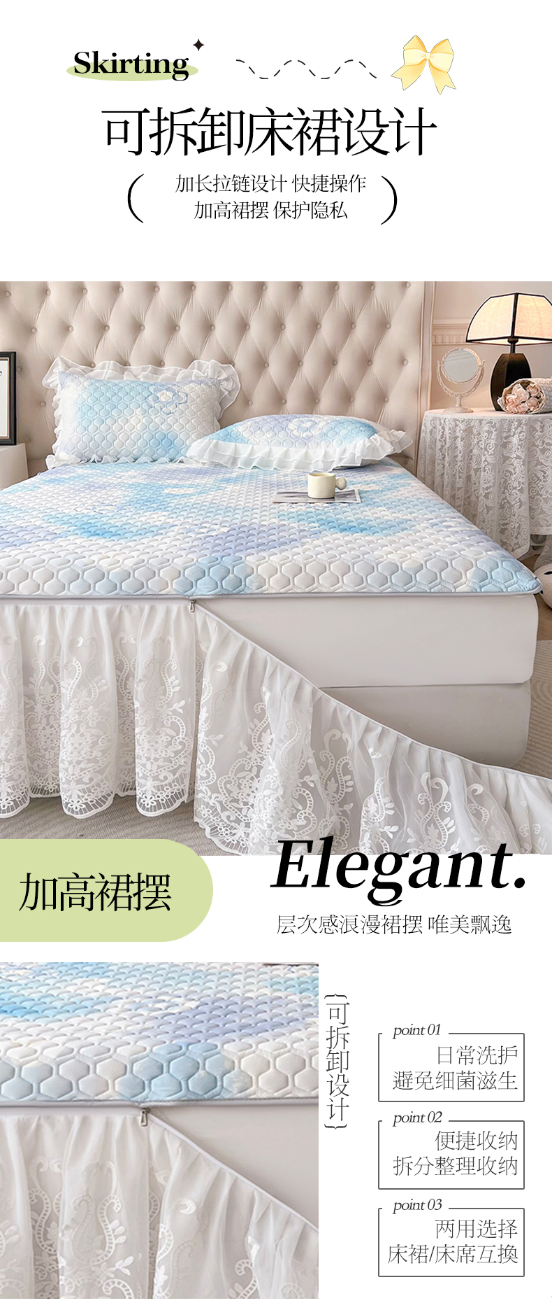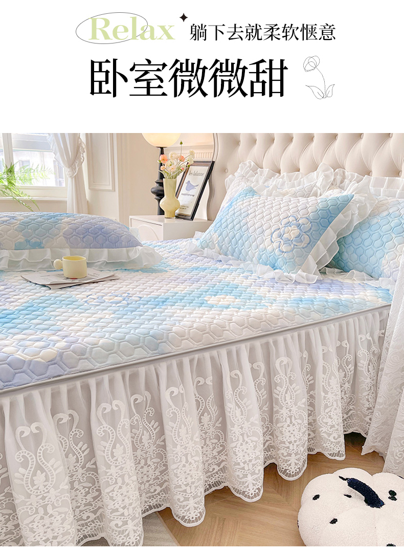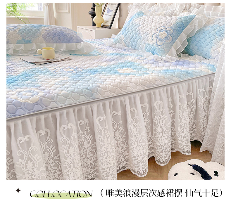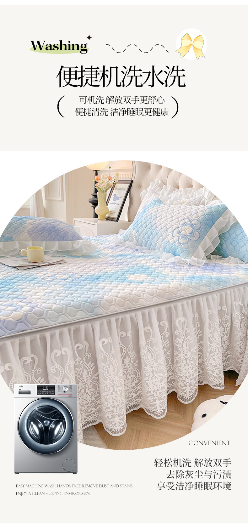 (总)虹星家纺 2025新款A类冰感凉豆豆床裙席三件套-素夏,素夏-抹茶绿,素夏-蜜桃粉,素夏-青果绿,素夏-天空蓝,素夏-月光灰