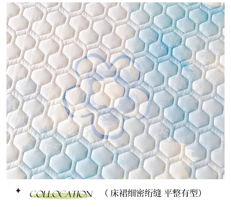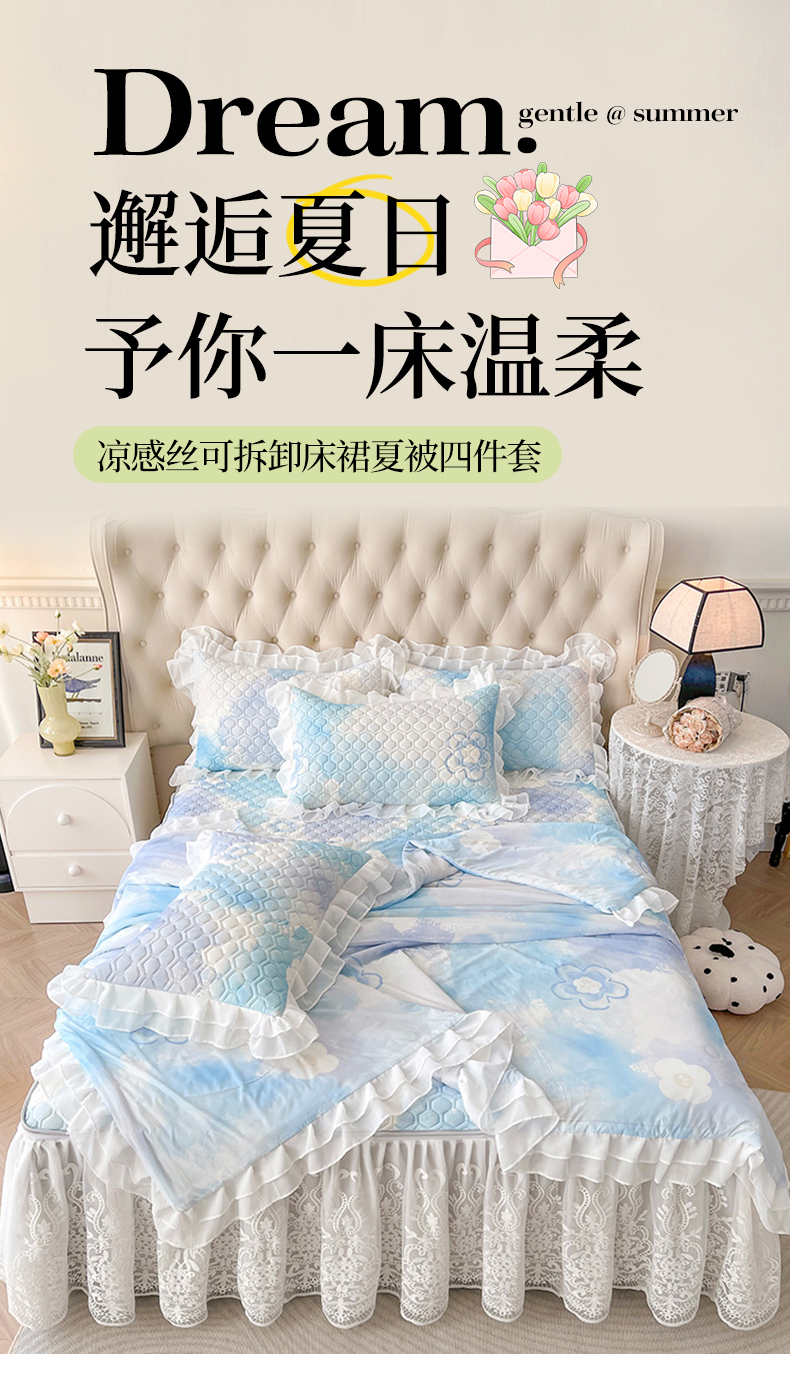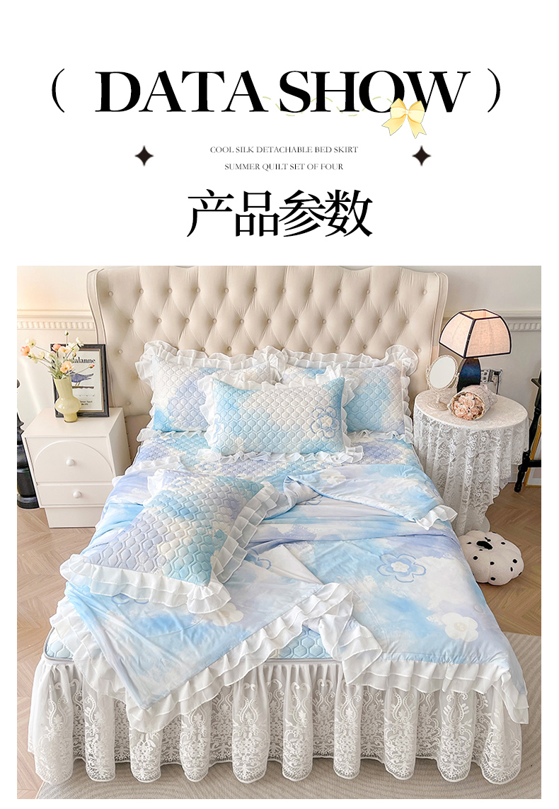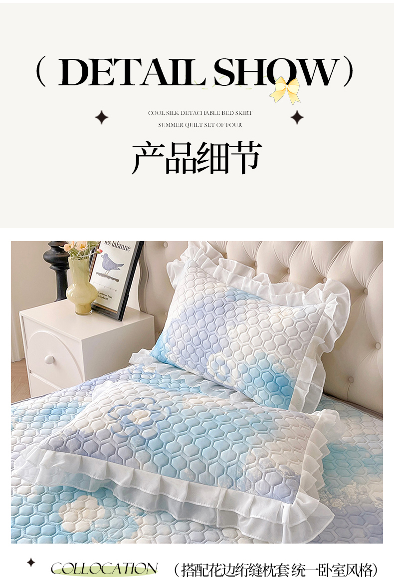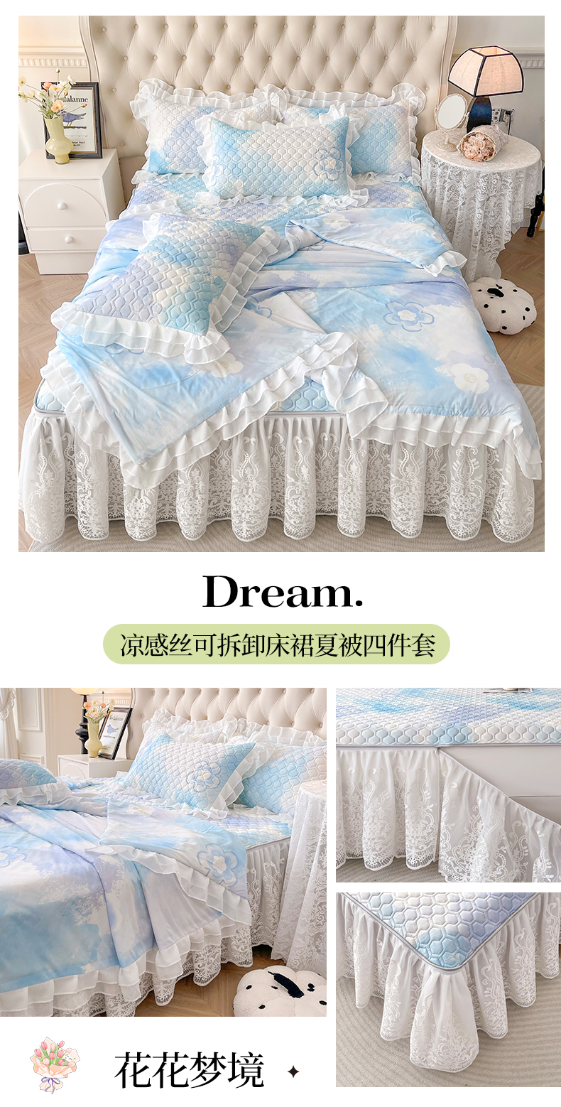 商品名称:虹星家纺 2024新款凉感丝印花可拆床裙套件-夏被凉席四件套 花花梦境