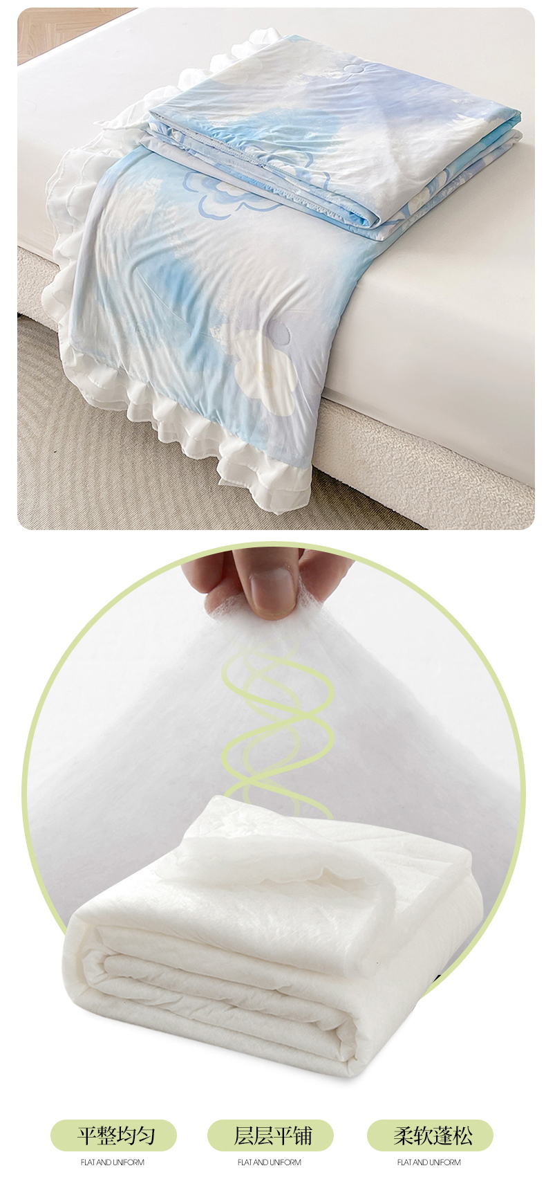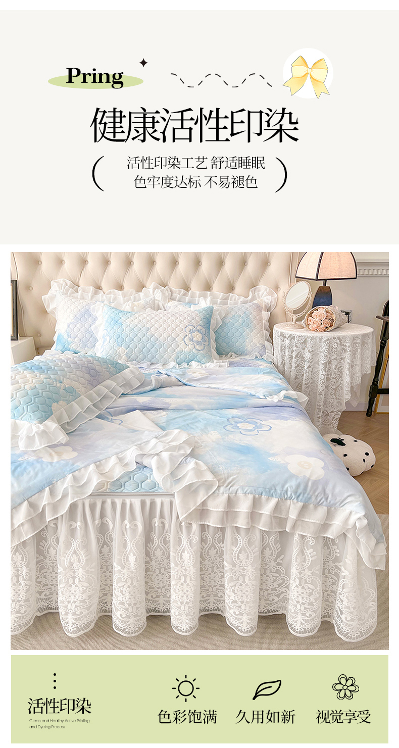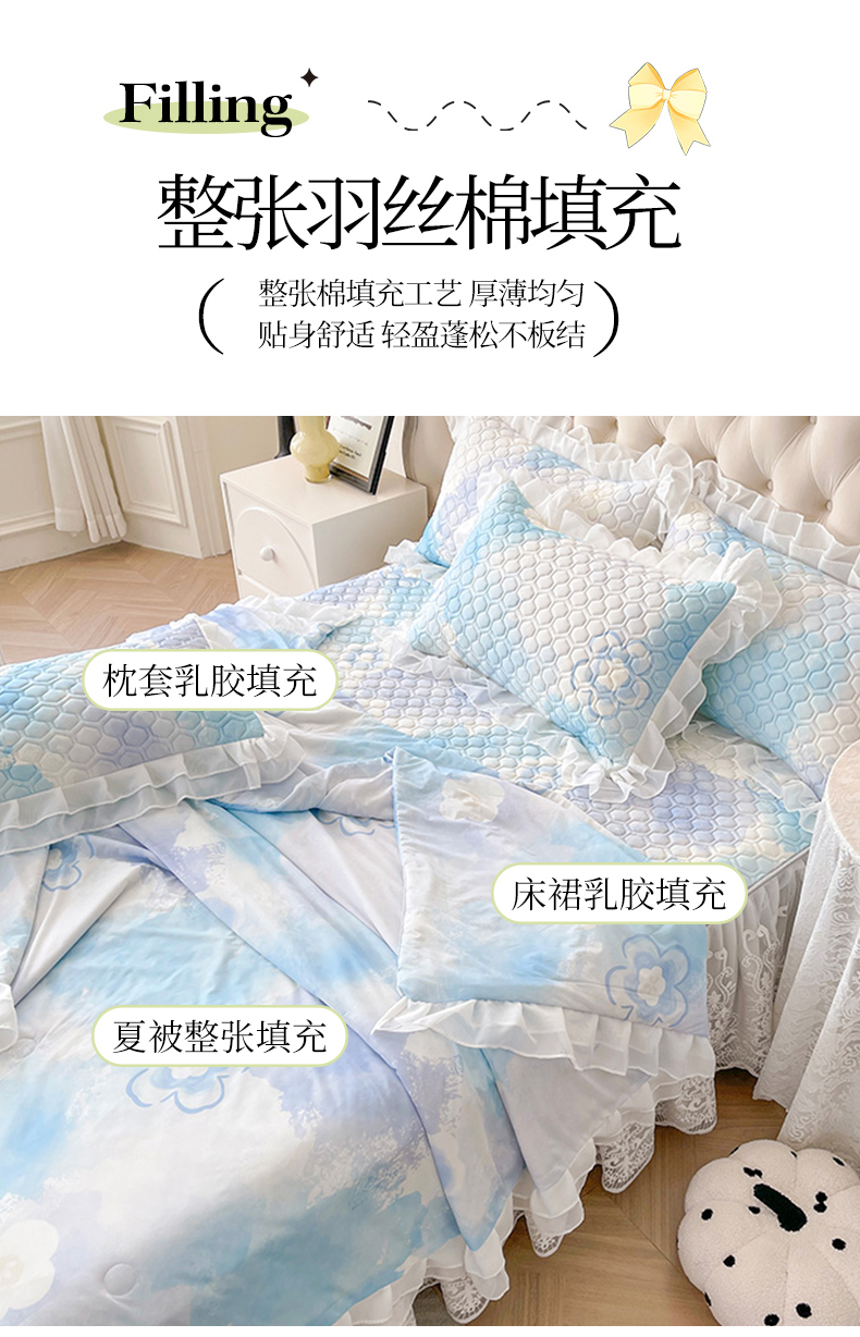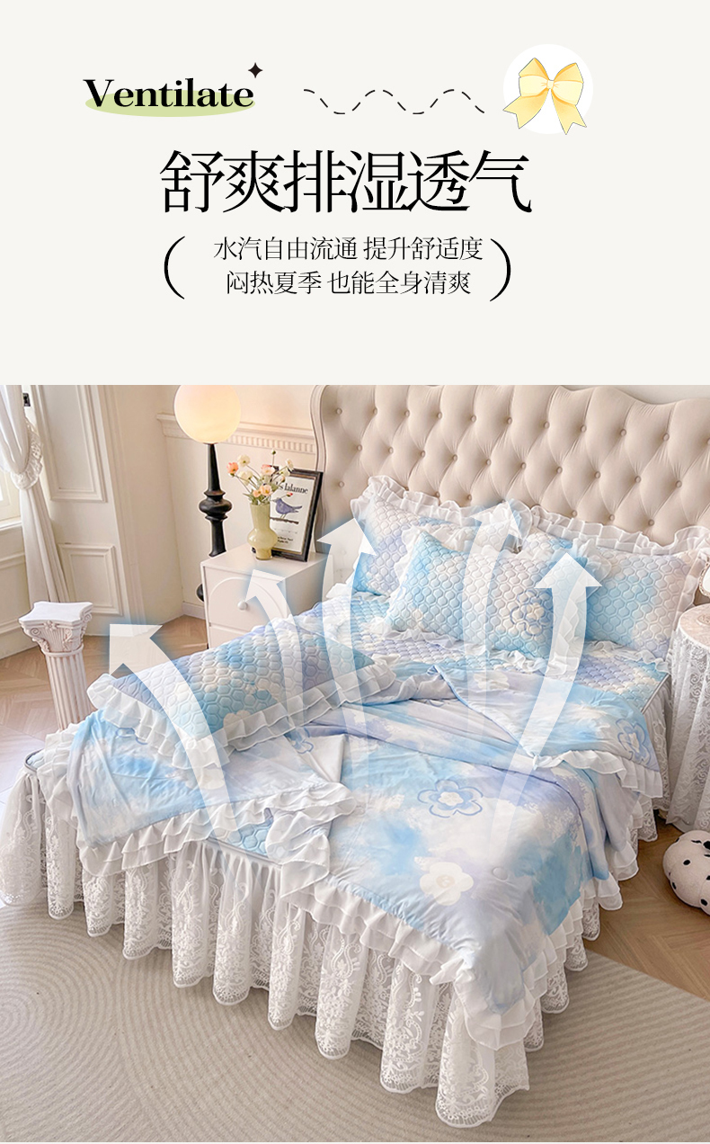 虹星家纺 2024新款凉感丝印花可拆床裙套件-夏被凉席四件套 花花梦境