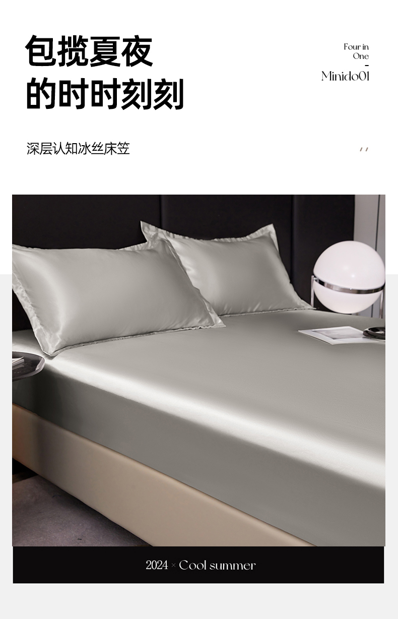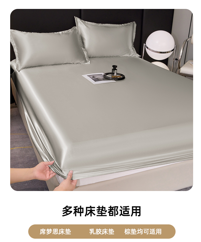 商品名称:梦舒羽 2025新款可水洗冰丝床垫保护套床笠三件套 典雅灰