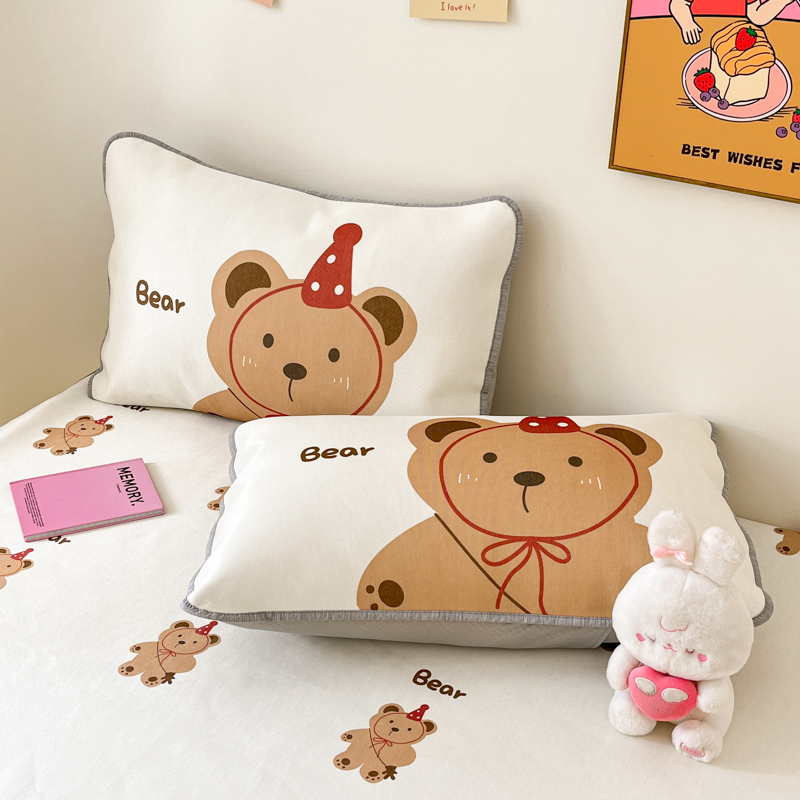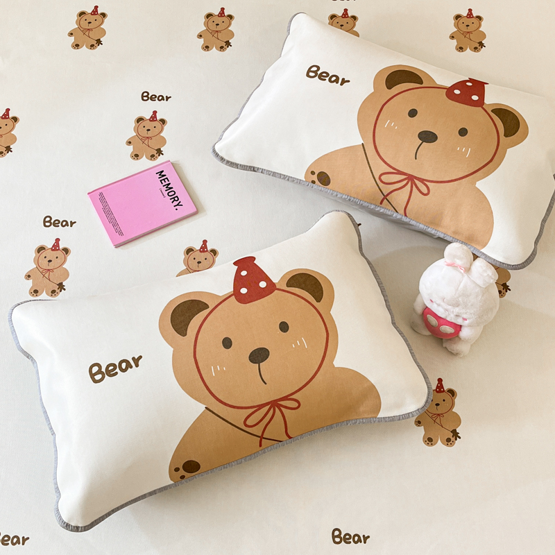 寐居 2024新款时尚印花冰丝席大版枕套 嘟嘟熊