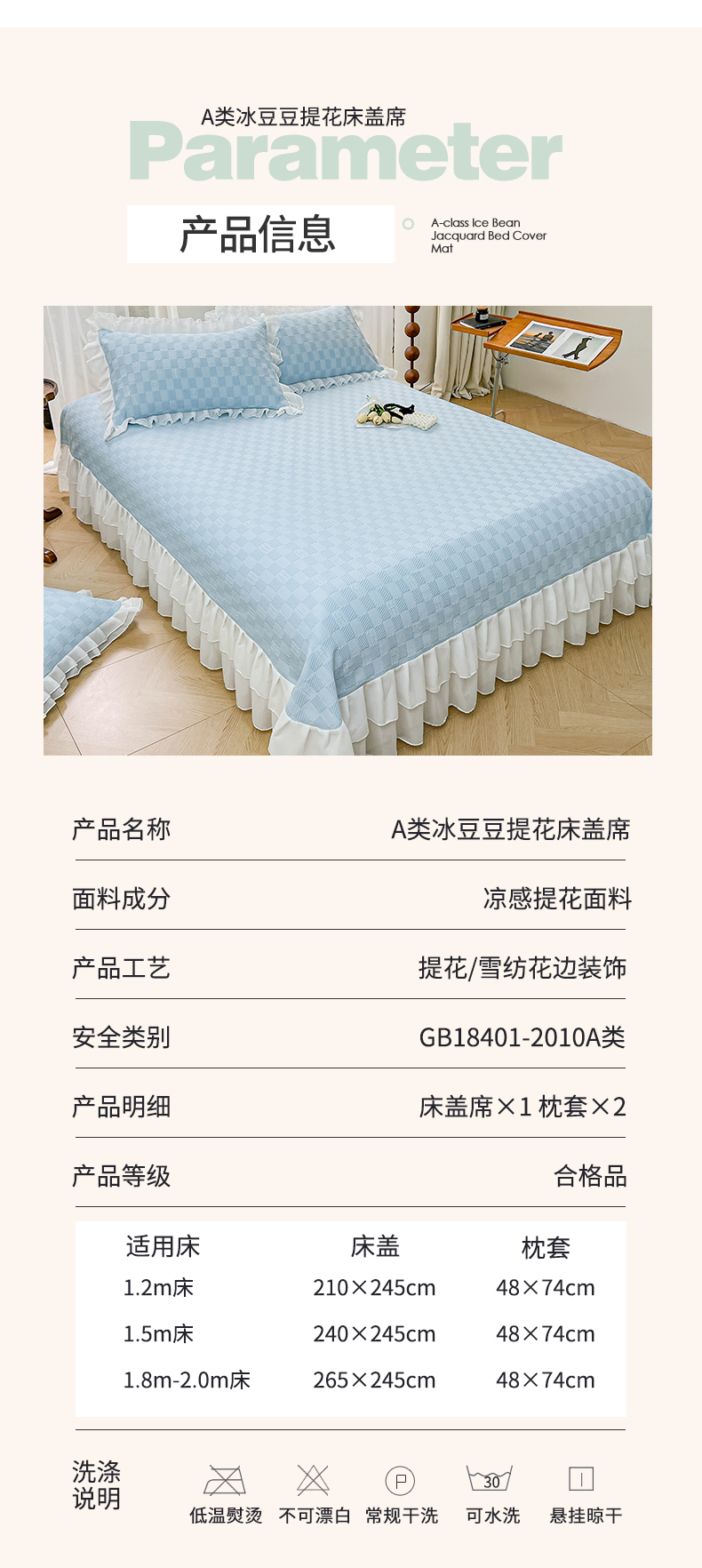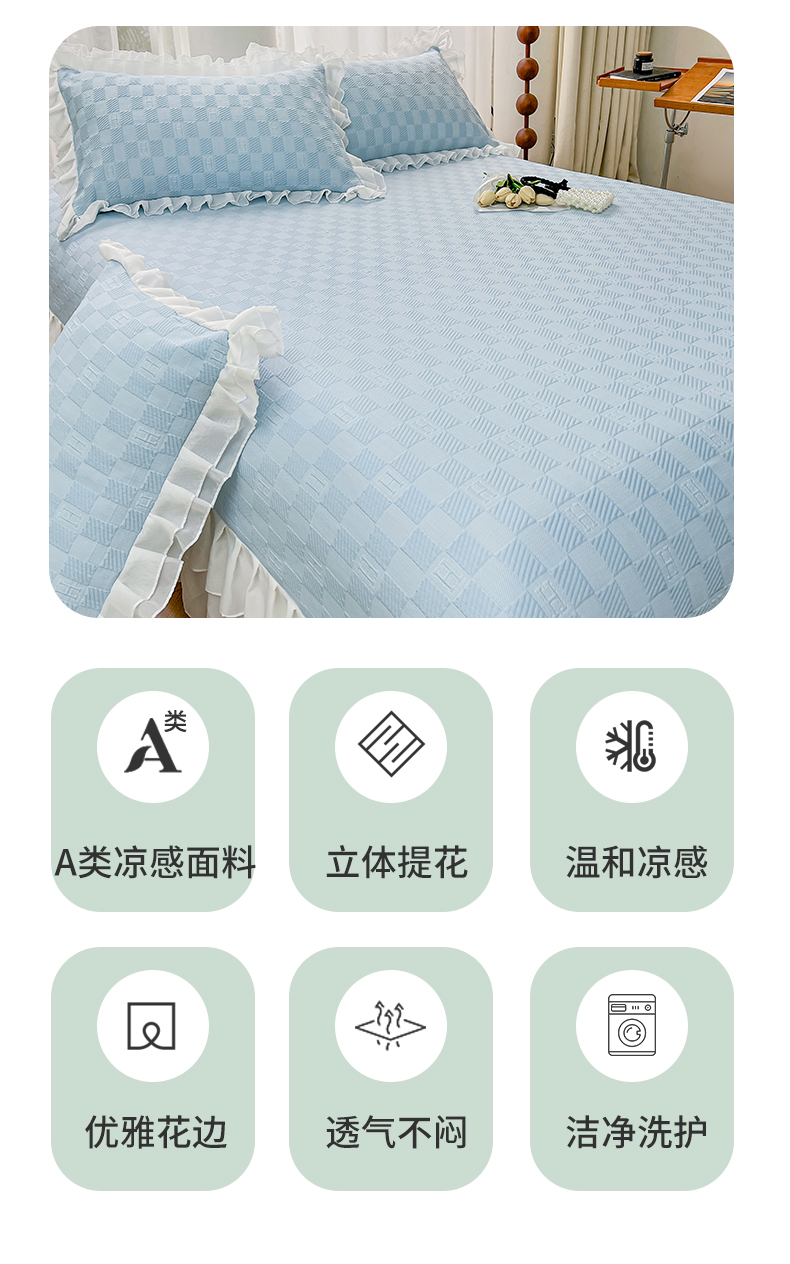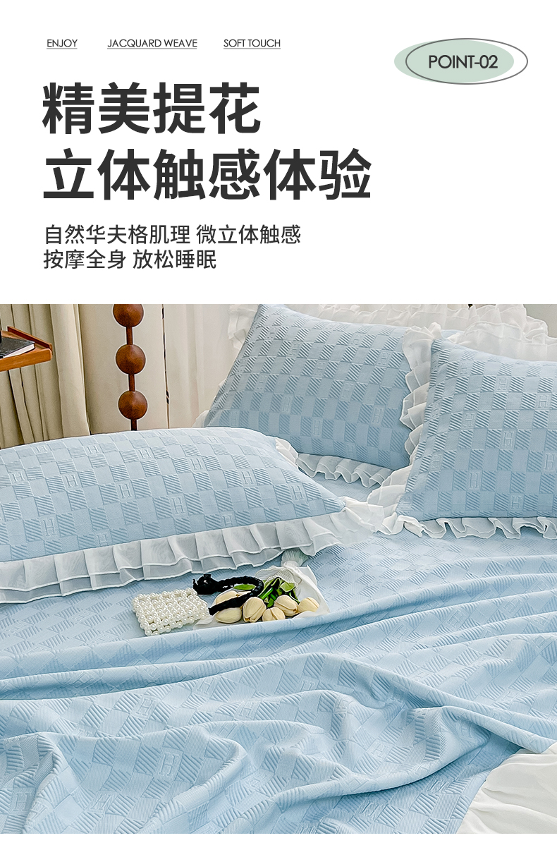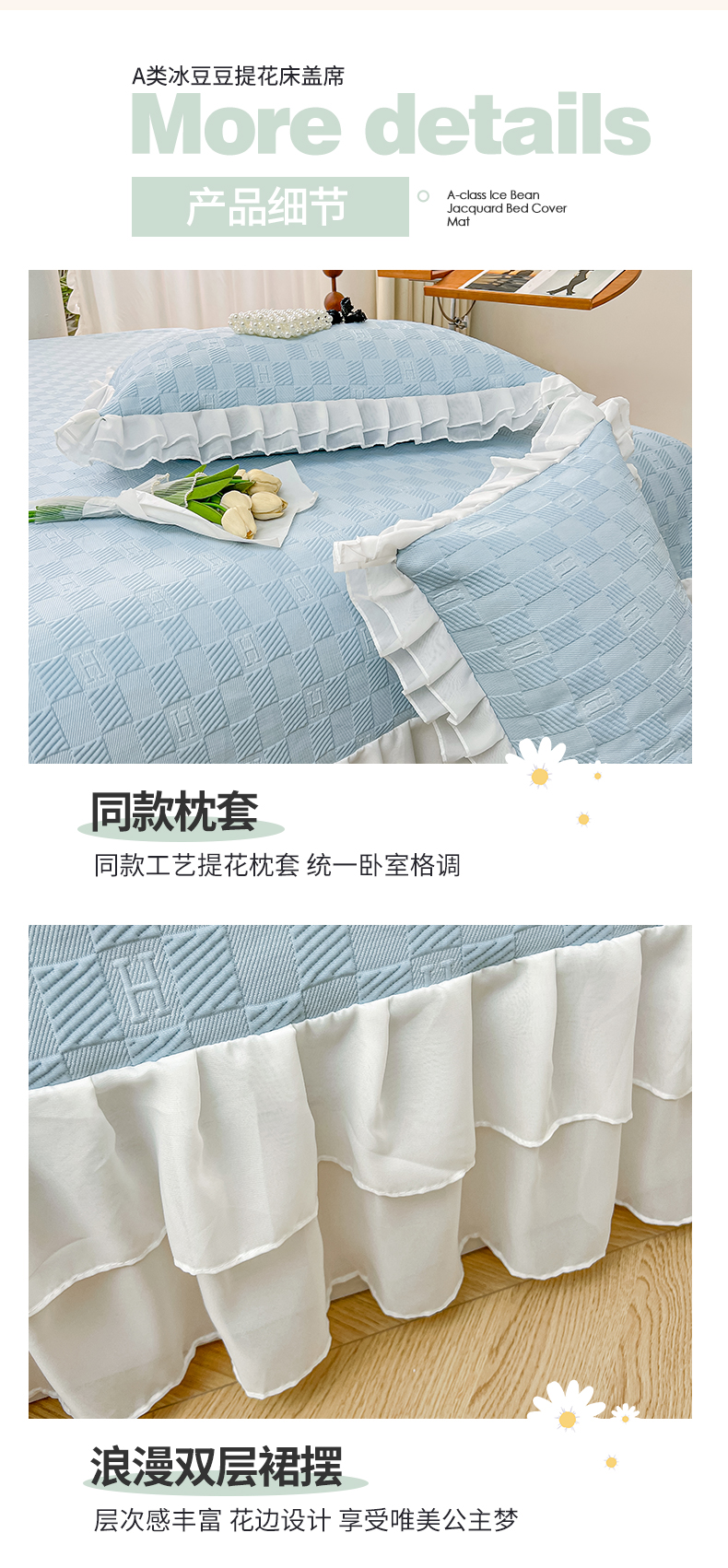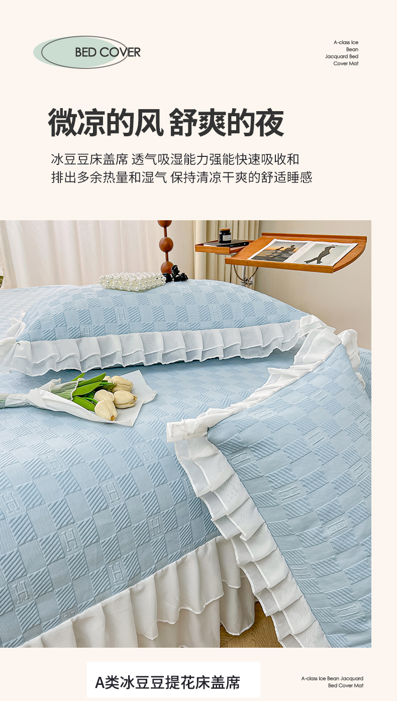 商品名称:宜凡2024新款A类冰豆豆提花床盖凉席 字母H 蓝