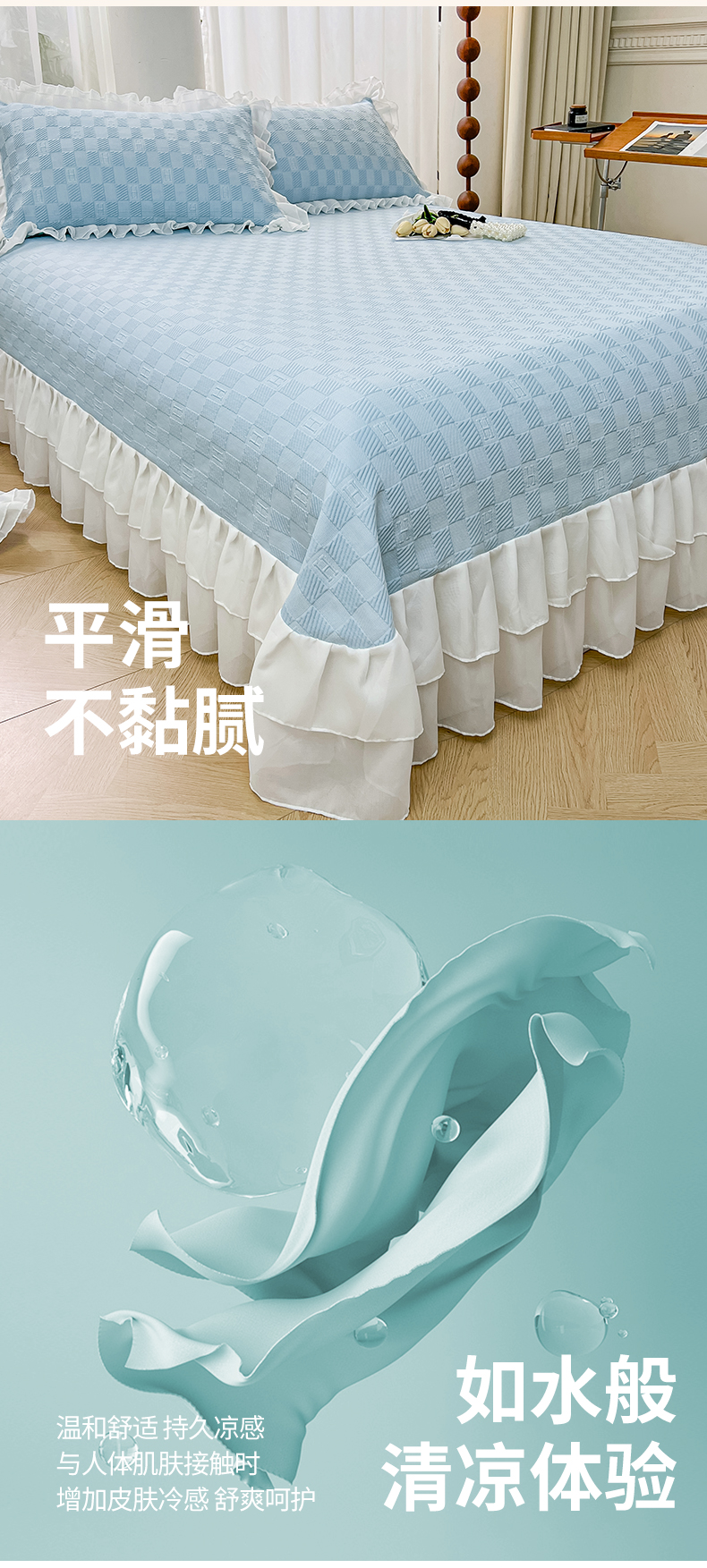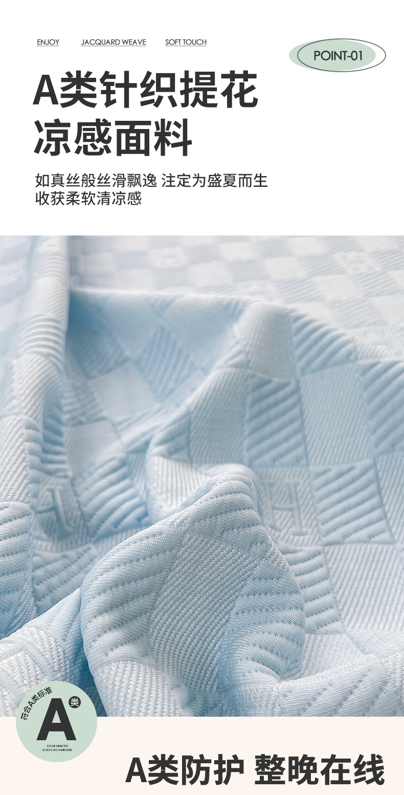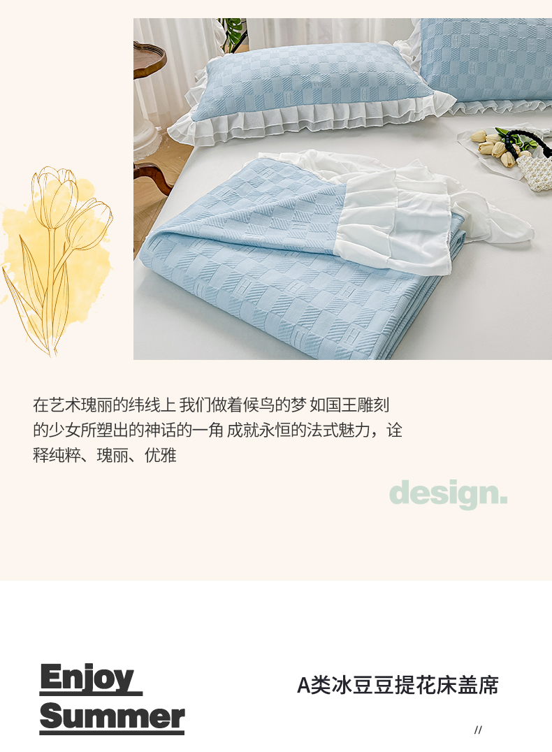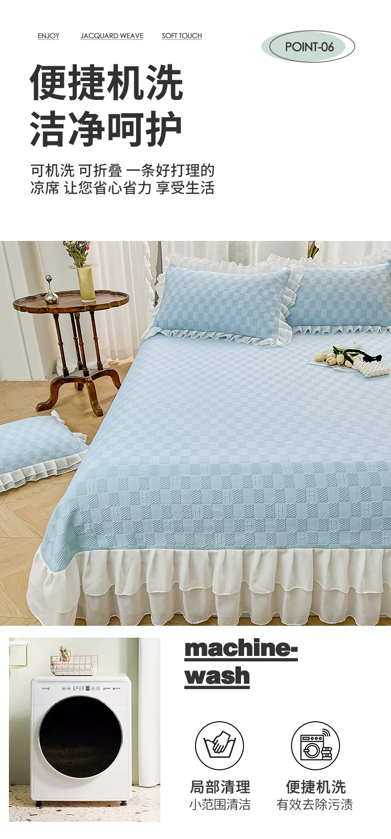 商品名称:宜凡2024新款A类冰豆豆提花床盖凉席 字母H 蓝