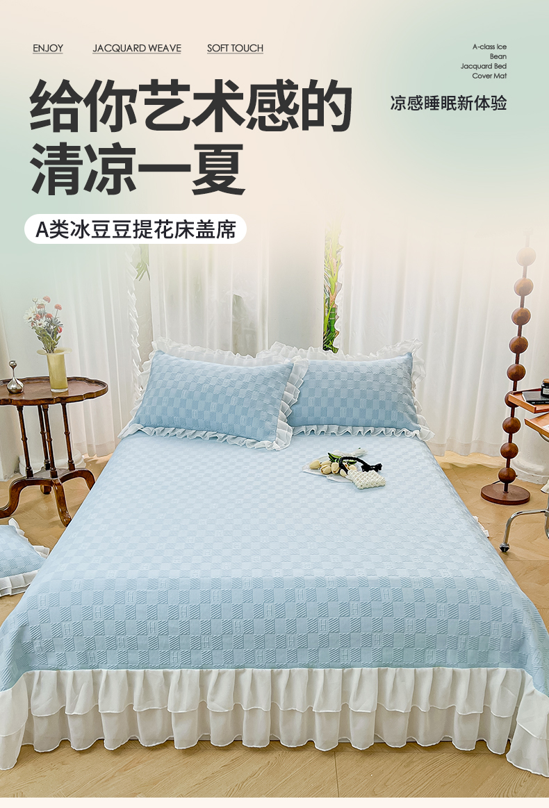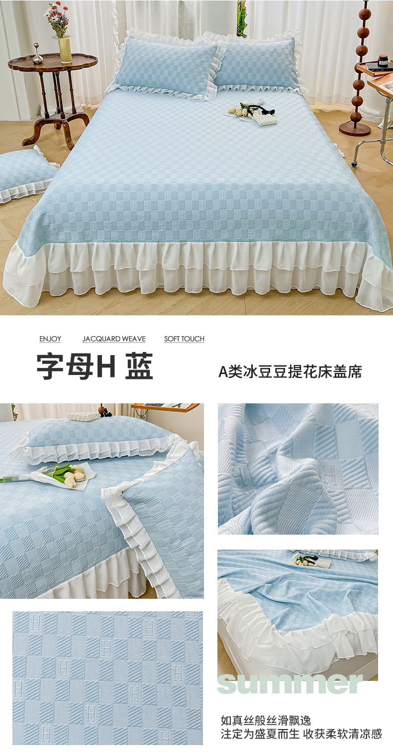 宜凡2024新款A类冰豆豆提花床盖凉席 字母H 蓝