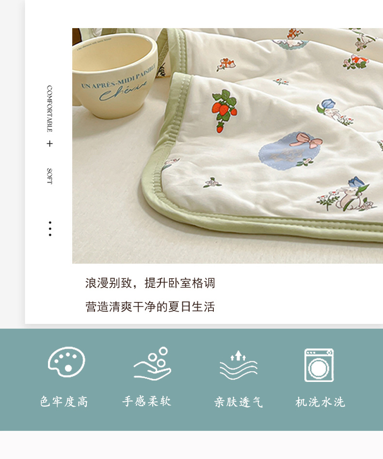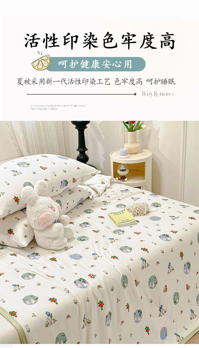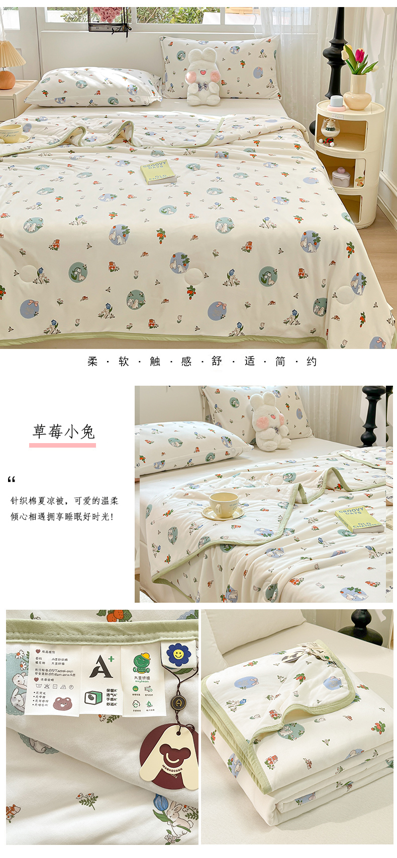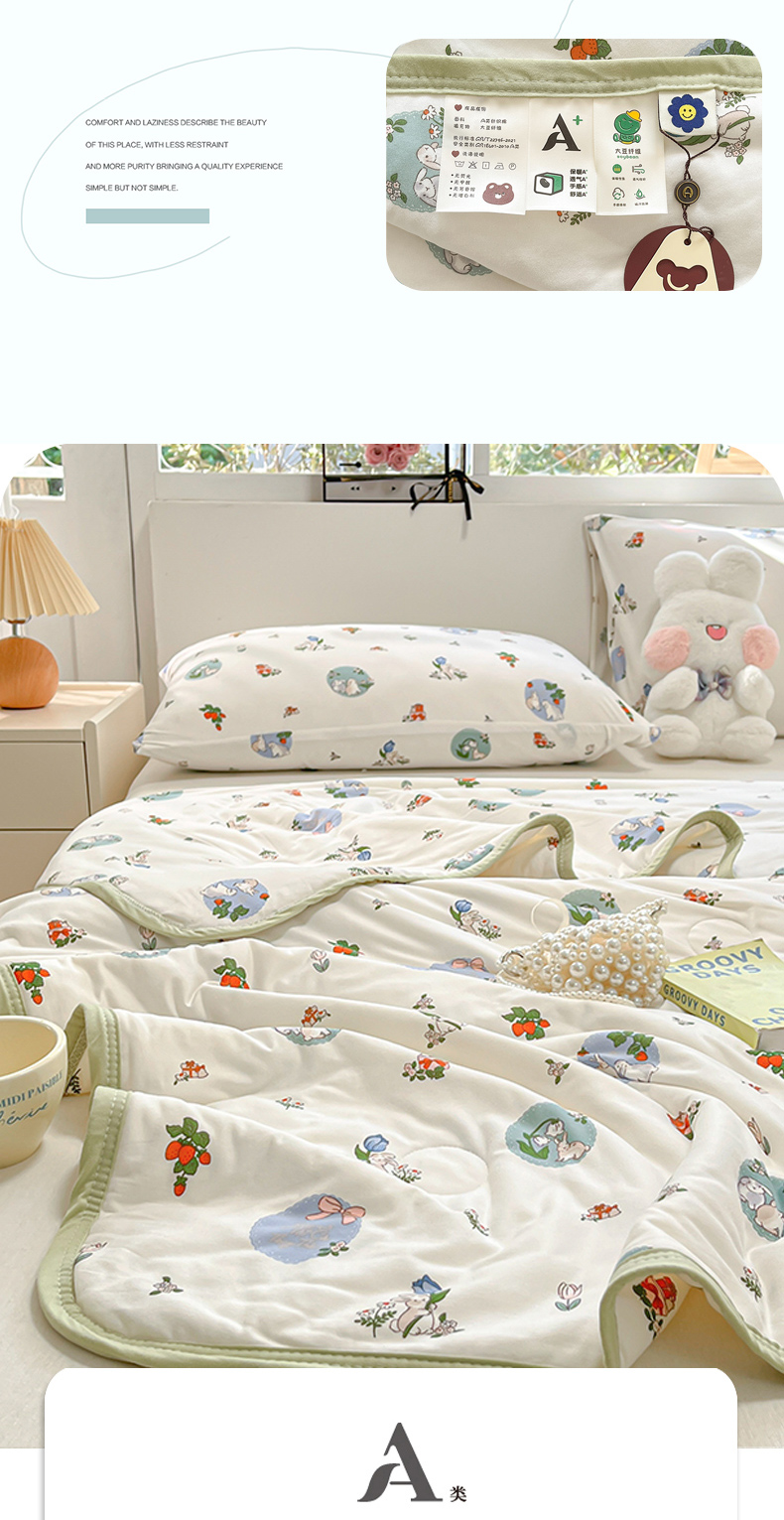 商品名称:葡萄家 2024新款A类母婴级大豆纤维牛奶丝针织棉夏凉被 草莓小兔