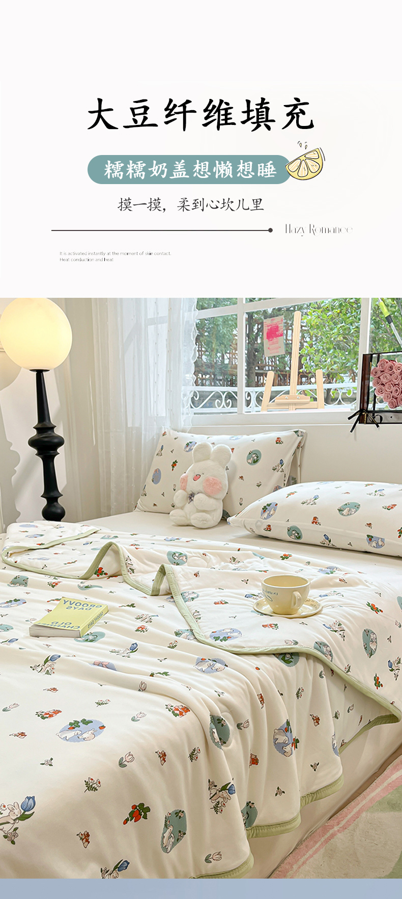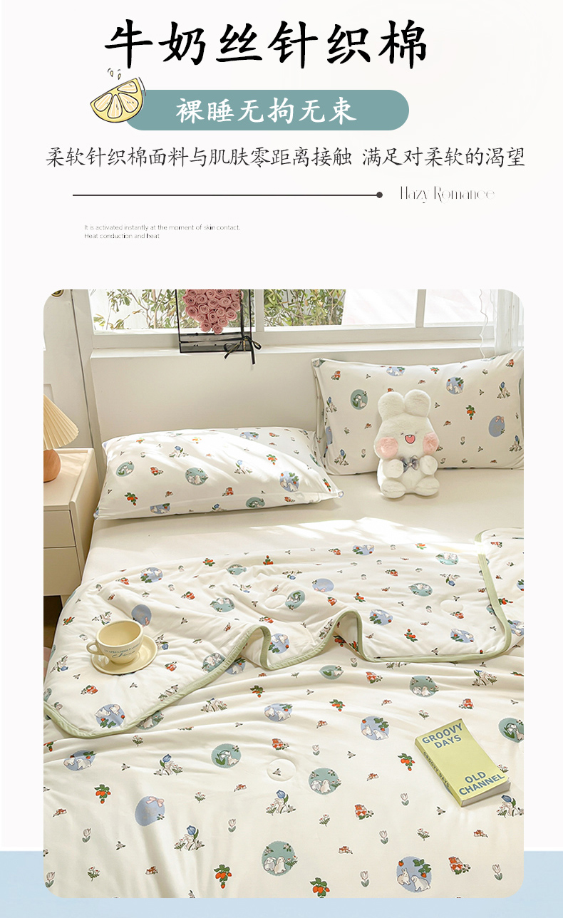 葡萄家 2024新款A类母婴级大豆纤维牛奶丝针织棉夏凉被 草莓小兔