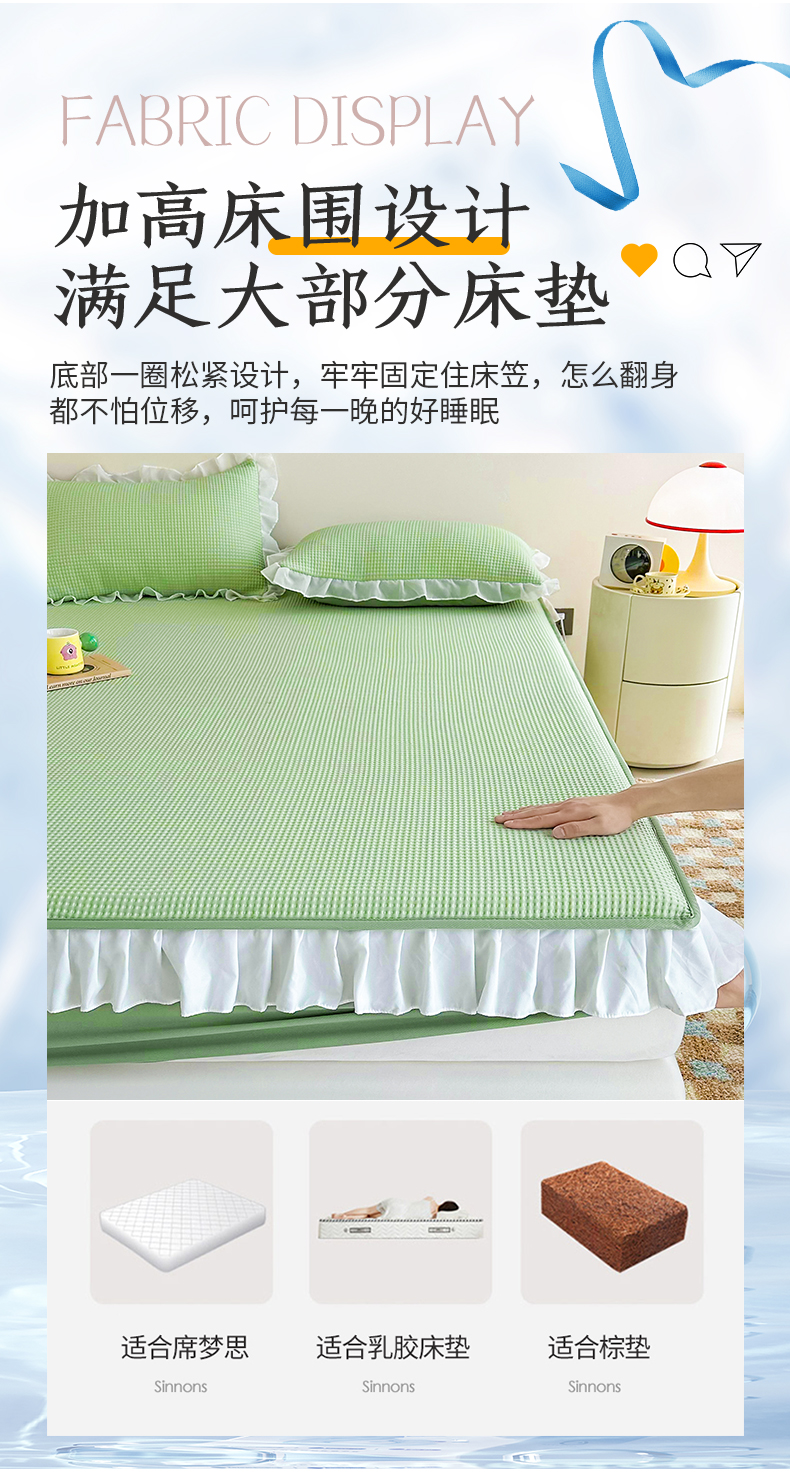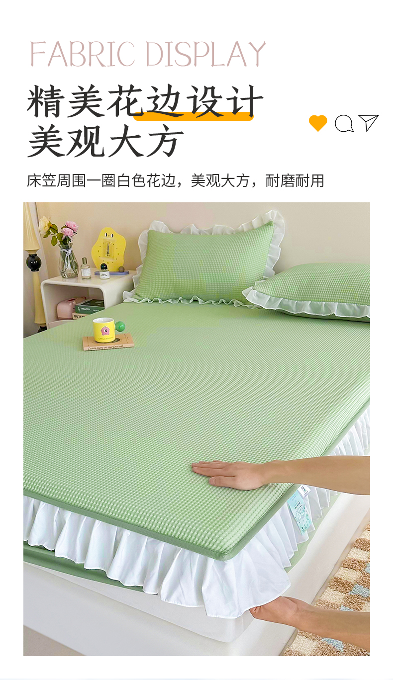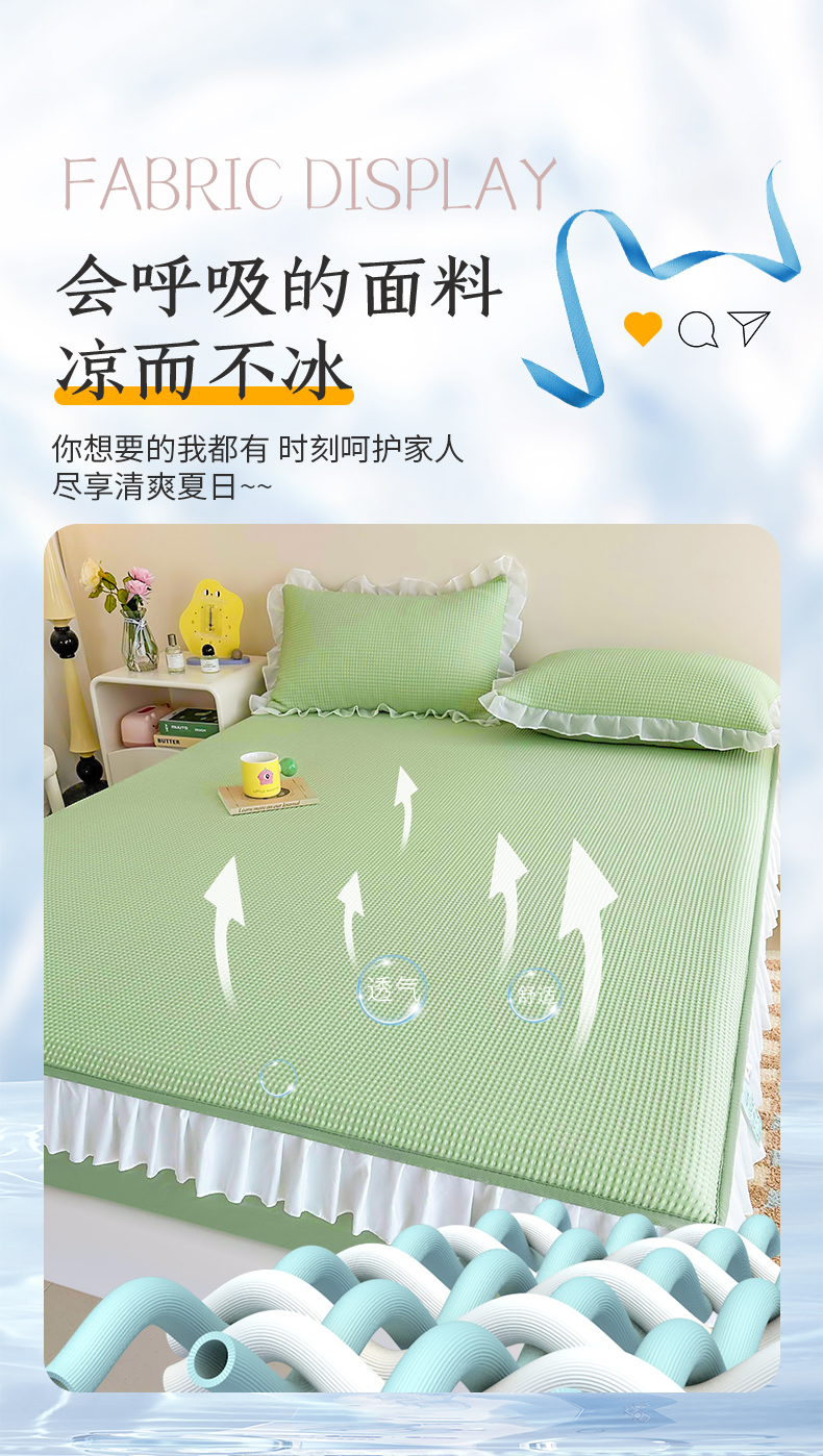 商品名称:屹成家纺 2024新款PE高分子凉豆豆冰丝凉席床笠款 菱形格-绿色