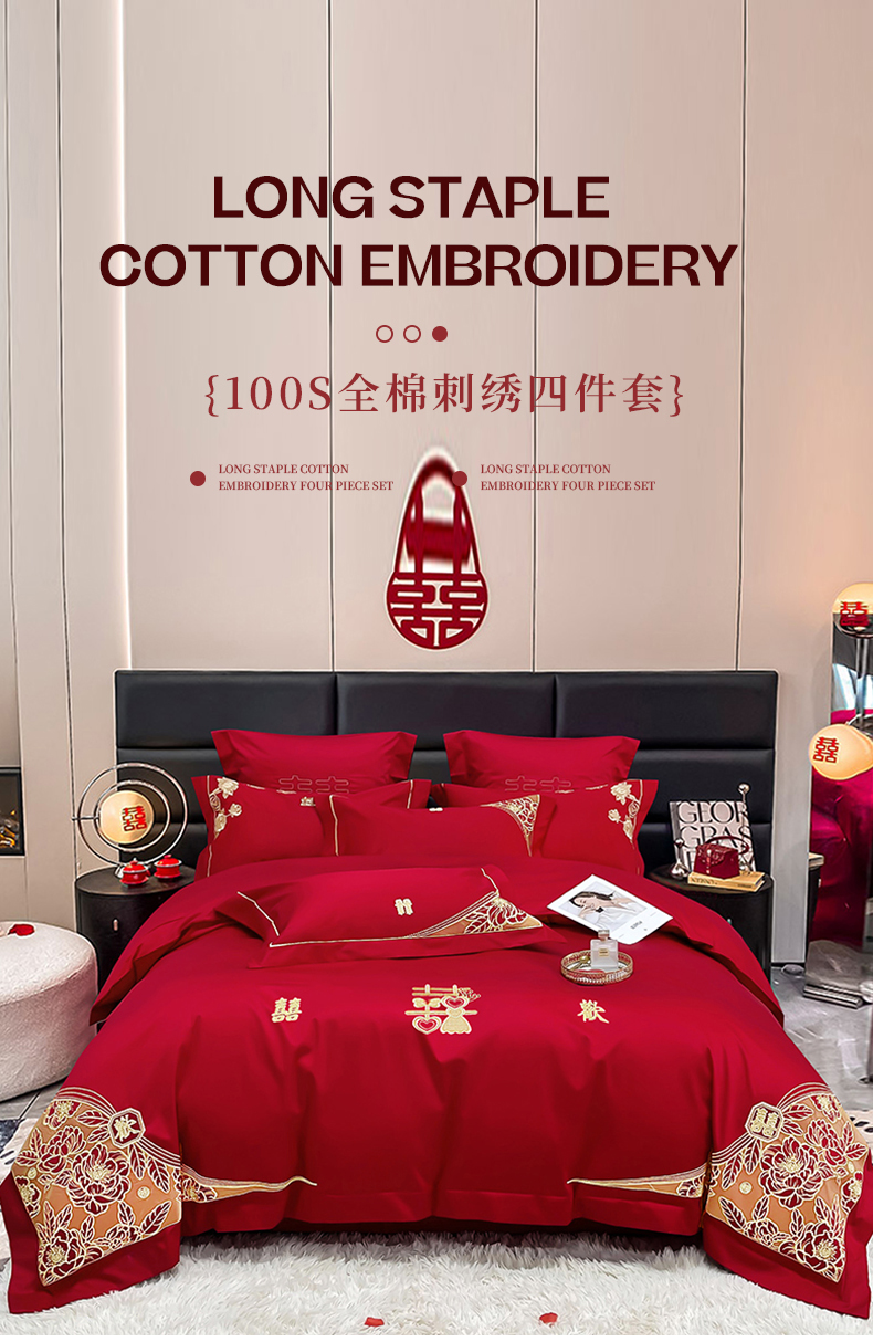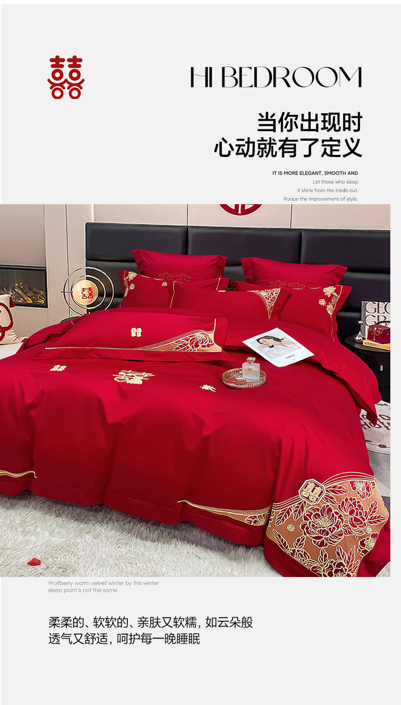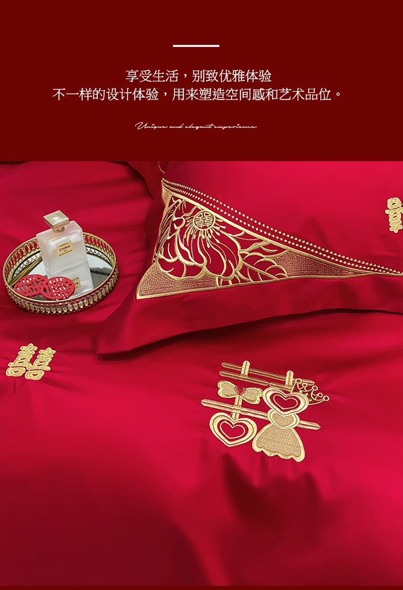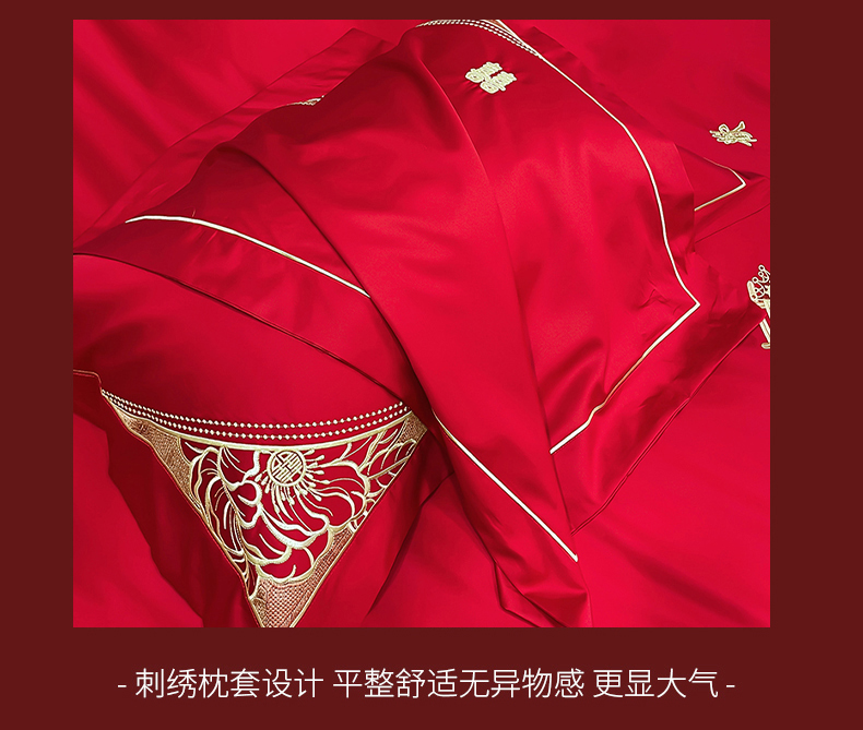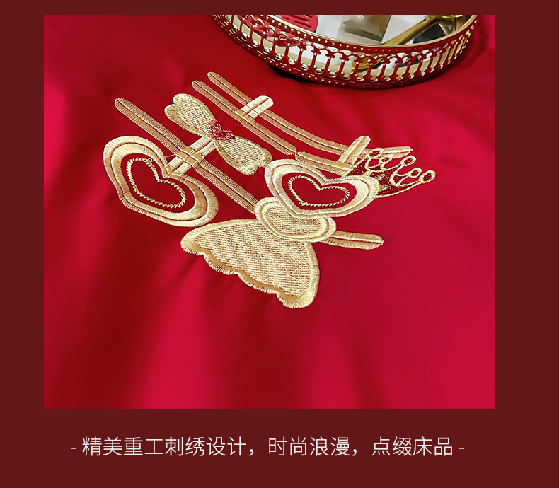 当前位置: 91家纺网 > 商品网购 > 床品套件 > 四件套 > 婚庆四件套 > 卓缦家纺 2024婚庆款100支双股全棉刺绣四件套六件套 心生欢喜