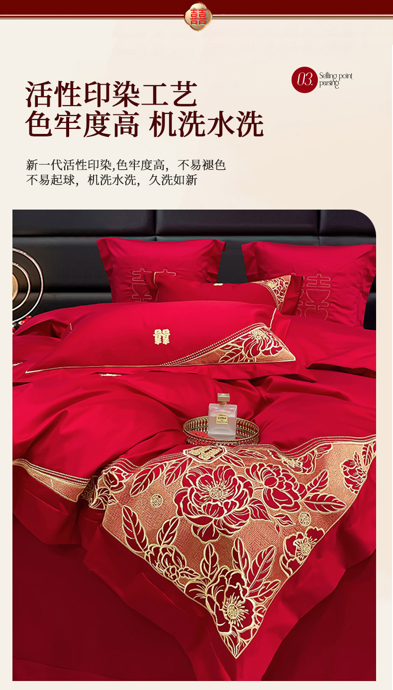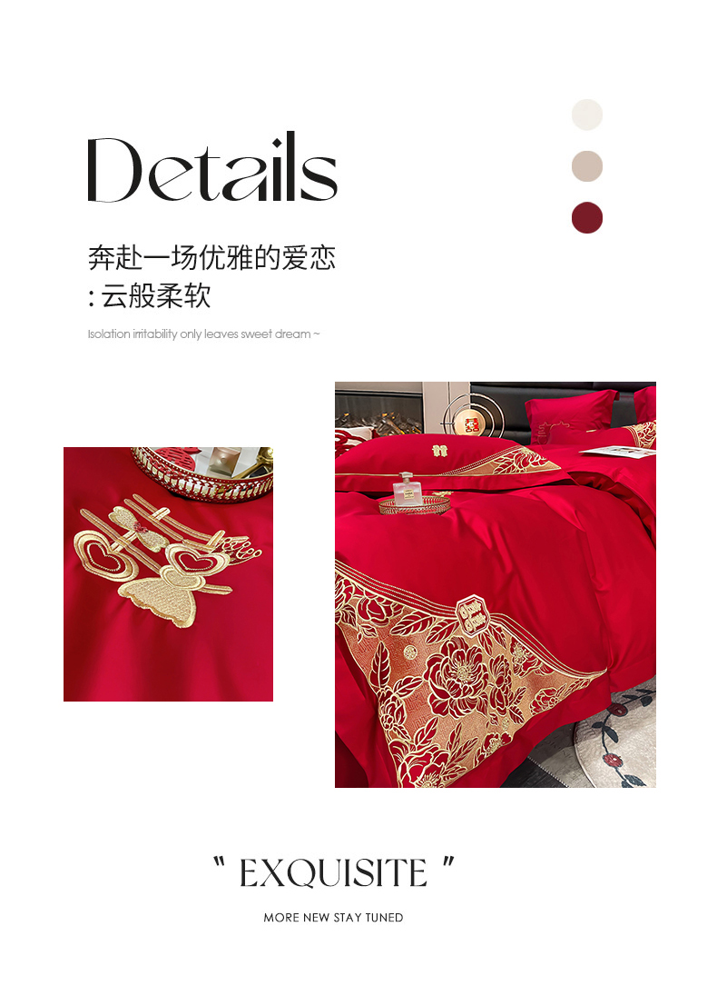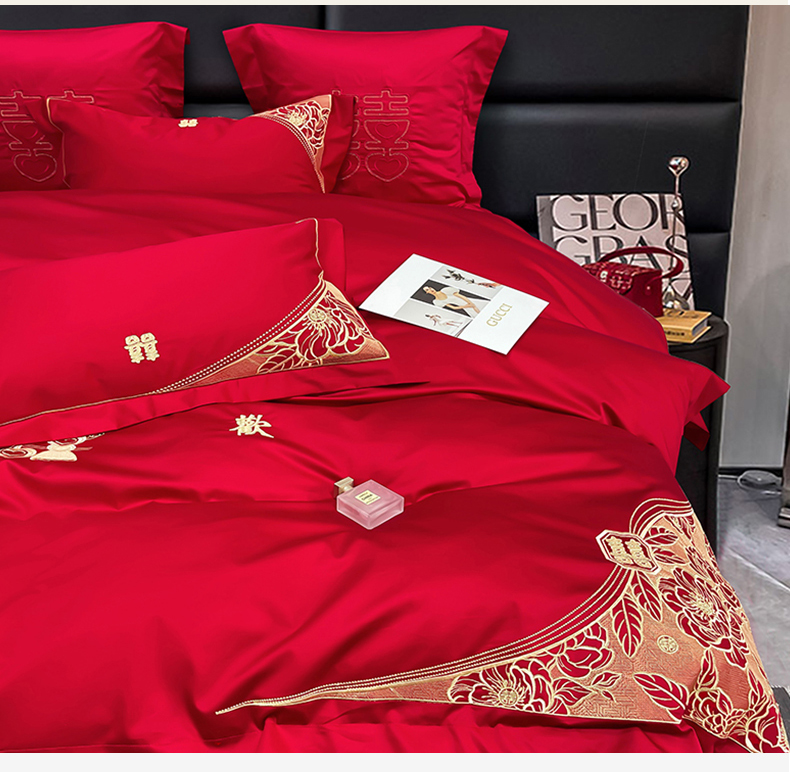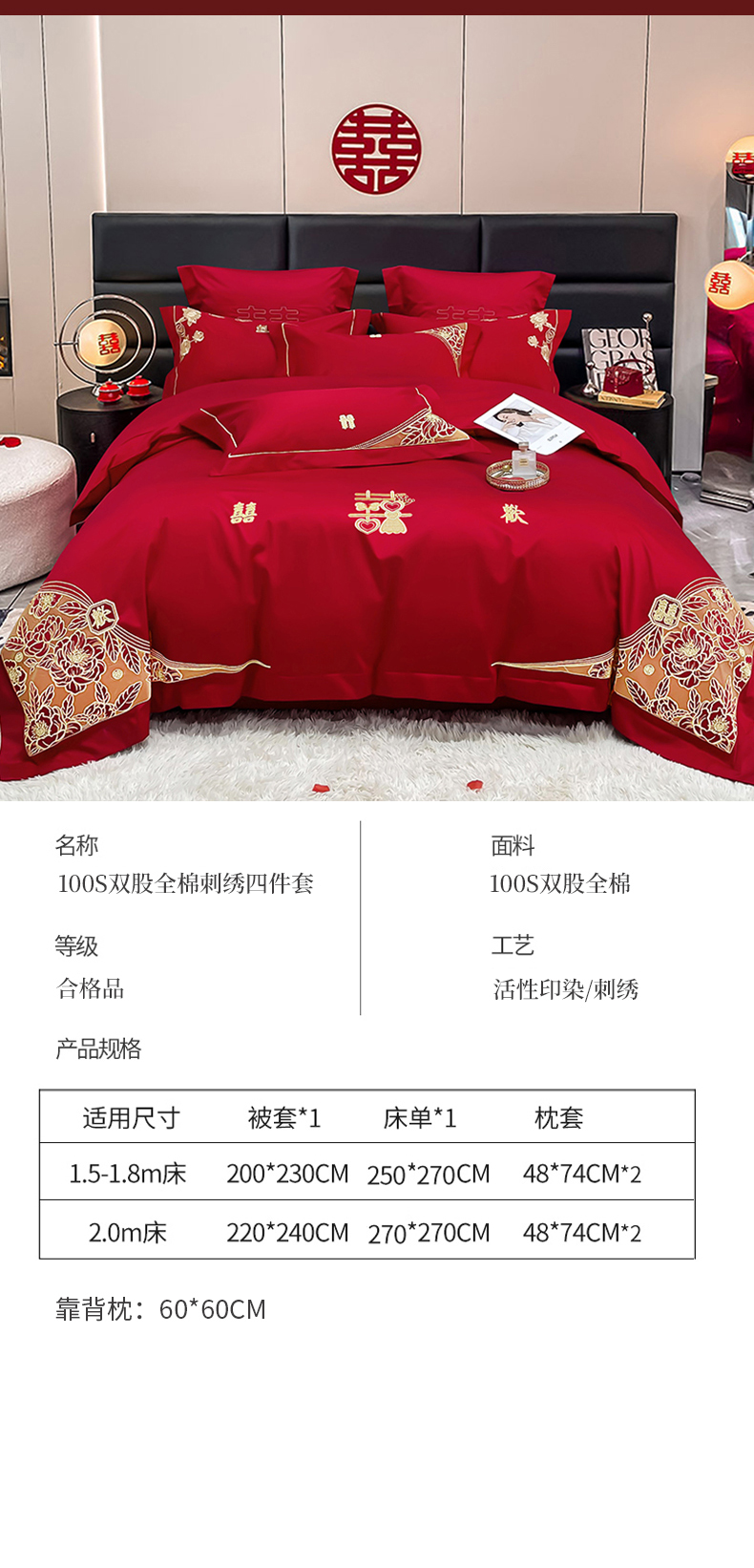 当前位置: 91家纺网 > 商品网购 > 床品套件 > 四件套 > 婚庆四件套 > 卓缦家纺 2024婚庆款100支双股全棉刺绣四件套六件套 心生欢喜
