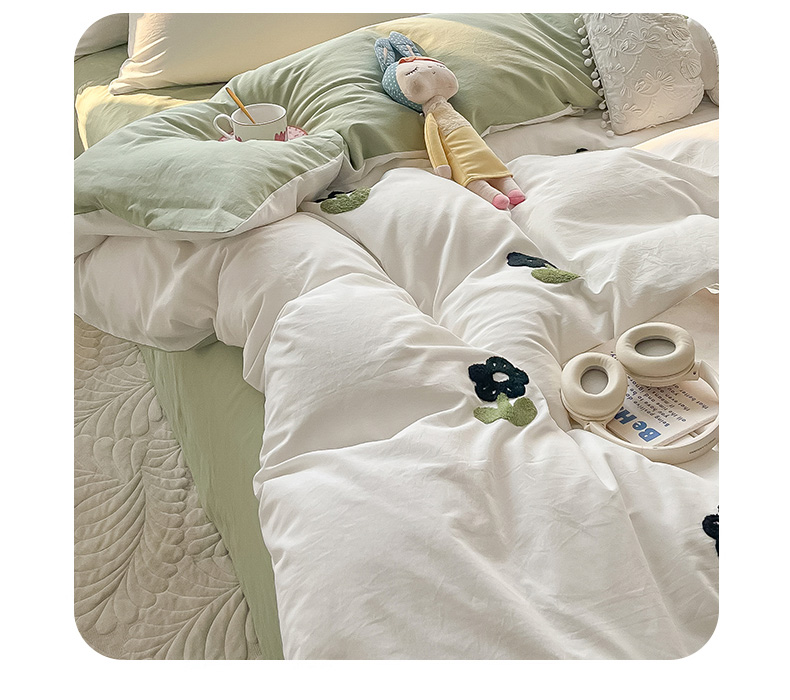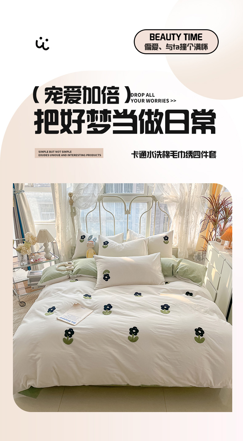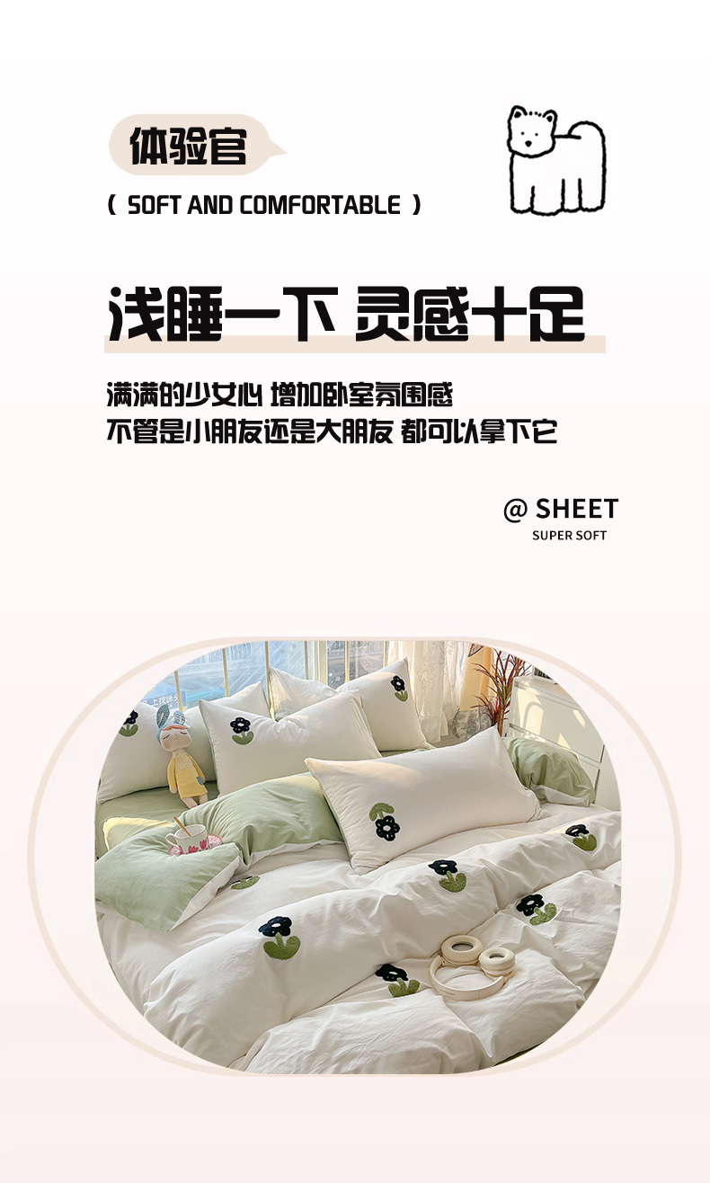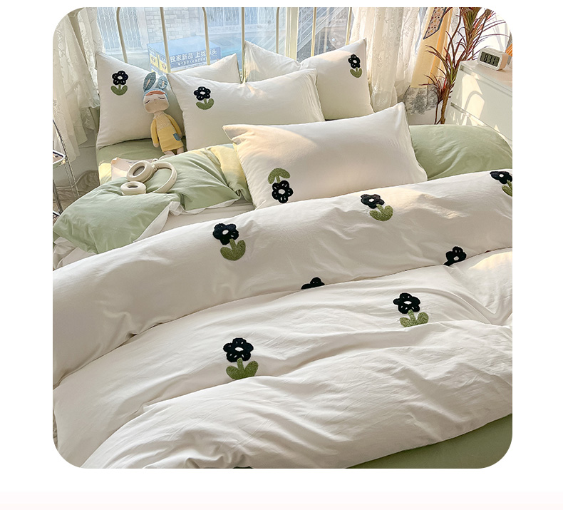 当前位置: 91家纺网 > 商品网购 > 床品套件 > 四件套 > 水洗棉四件套 > 眠帛家居 2024新款水洗棉奶油小清新毛巾绣四件套早春系列 朵朵奶油绿