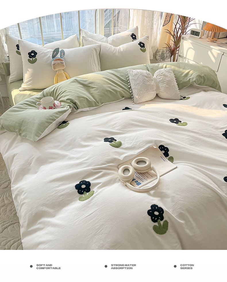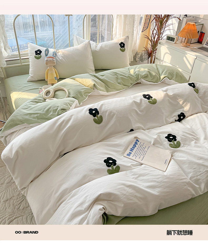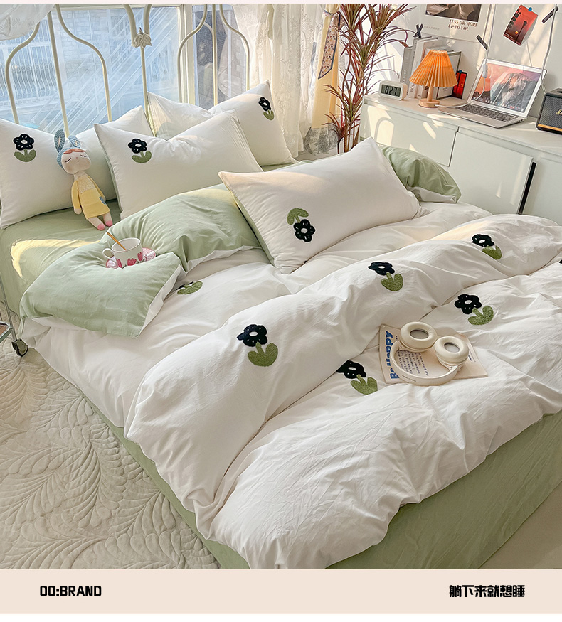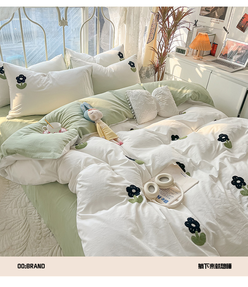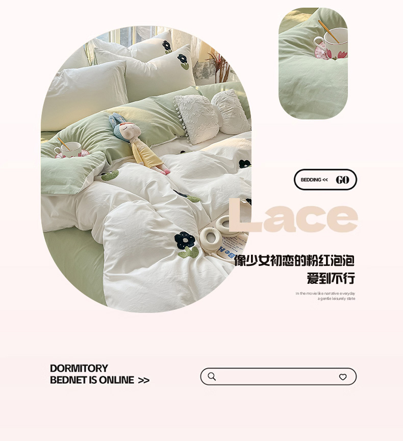 当前位置: 91家纺网 > 商品网购 > 床品套件 > 四件套 > 水洗棉四件套 > 眠帛家居 2024新款水洗棉奶油小清新毛巾绣四件套早春系列 朵朵奶油绿