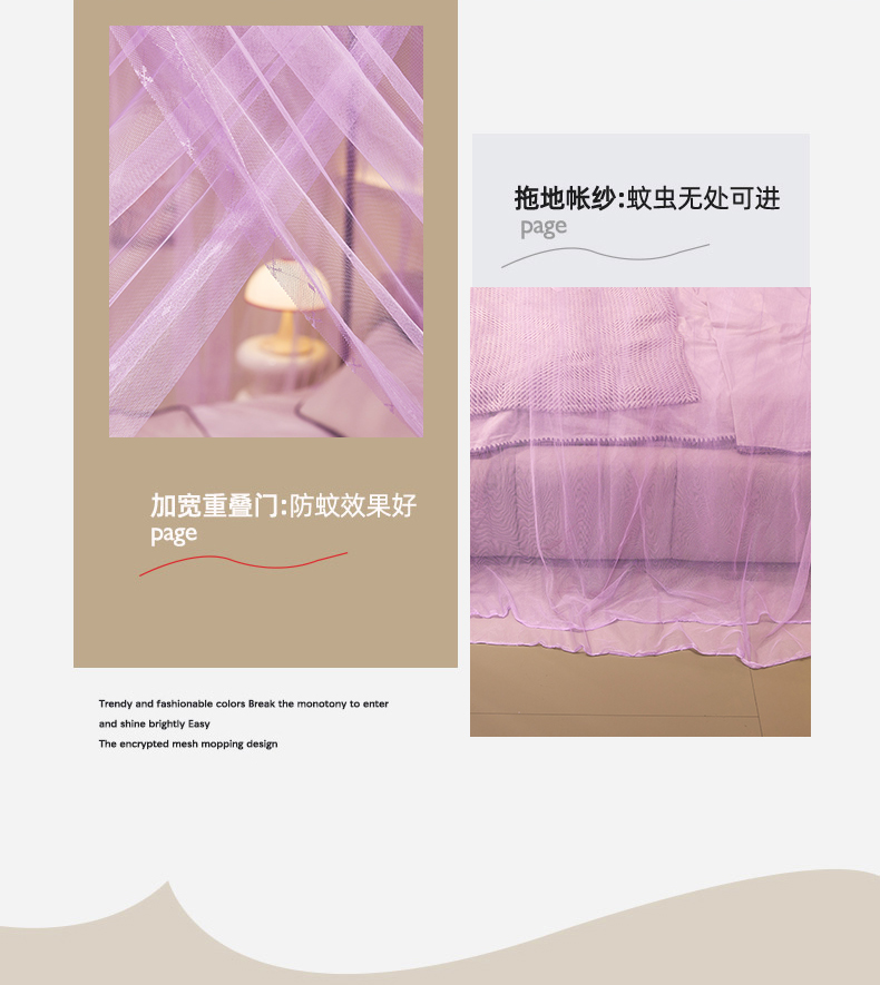 当前位置: 91家纺网 > 商品网购 > 床上用品 > 蚊帐 > 坐床式蚊帐 > 初心家纺 2025新款单开门防尘顶落地蚊帐-玉锦 玉锦-紫