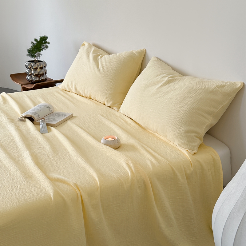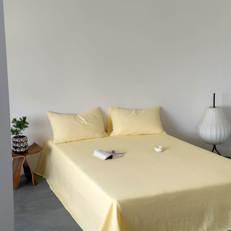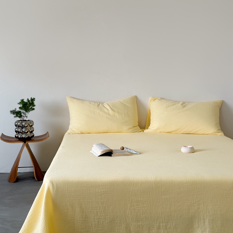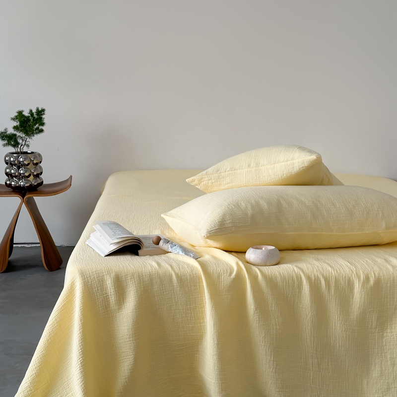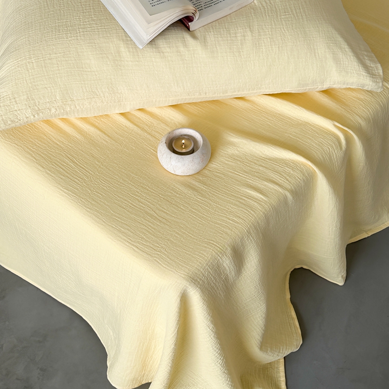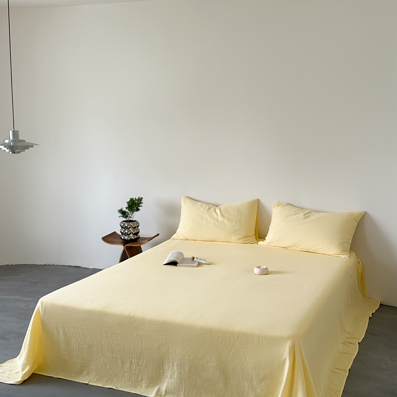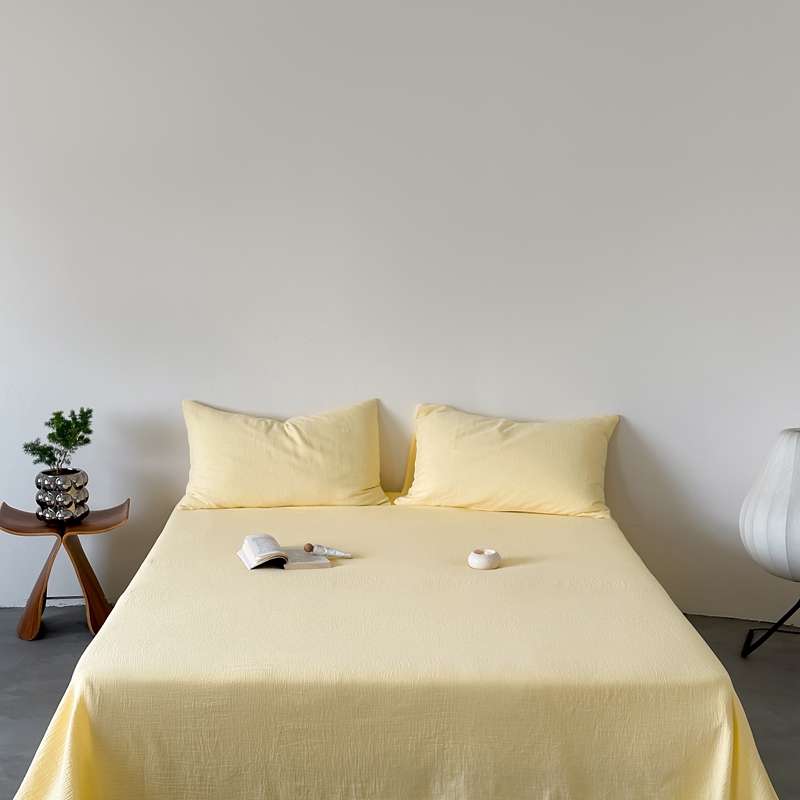 山舍家居 2024新款纯色全棉双层皱皱纱单品系列--单床单 鹅黄