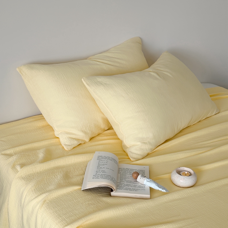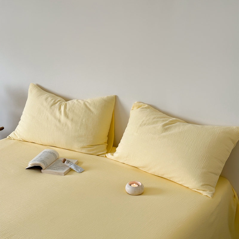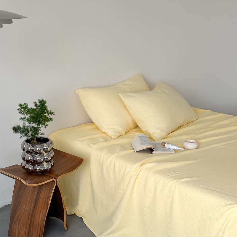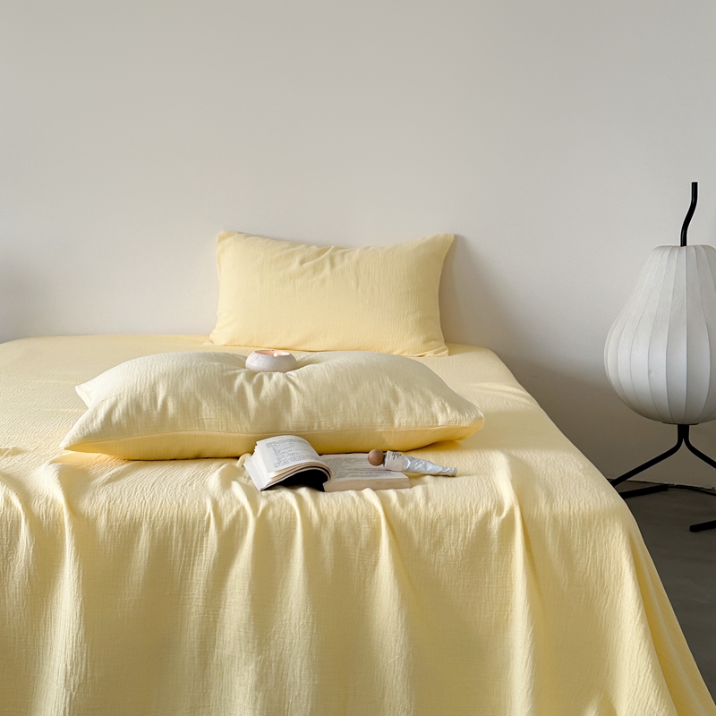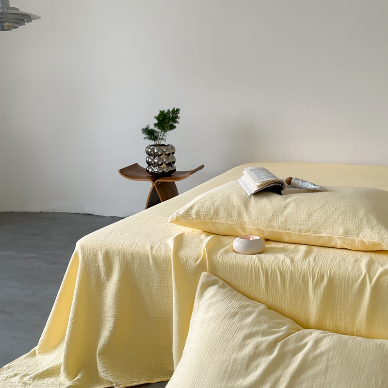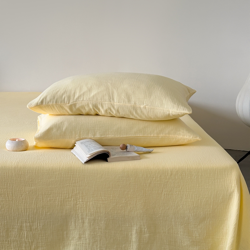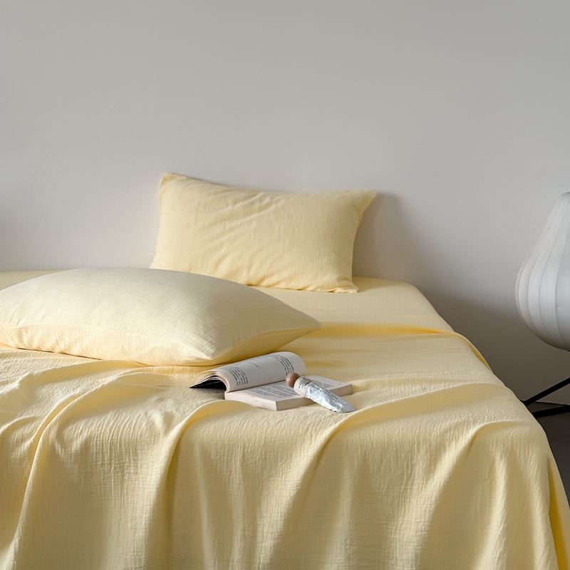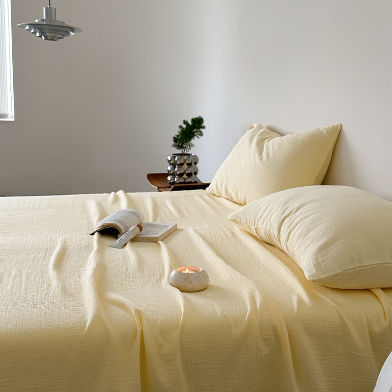 山舍家居 2024新款纯色全棉双层皱皱纱单品系列--单床单 鹅黄