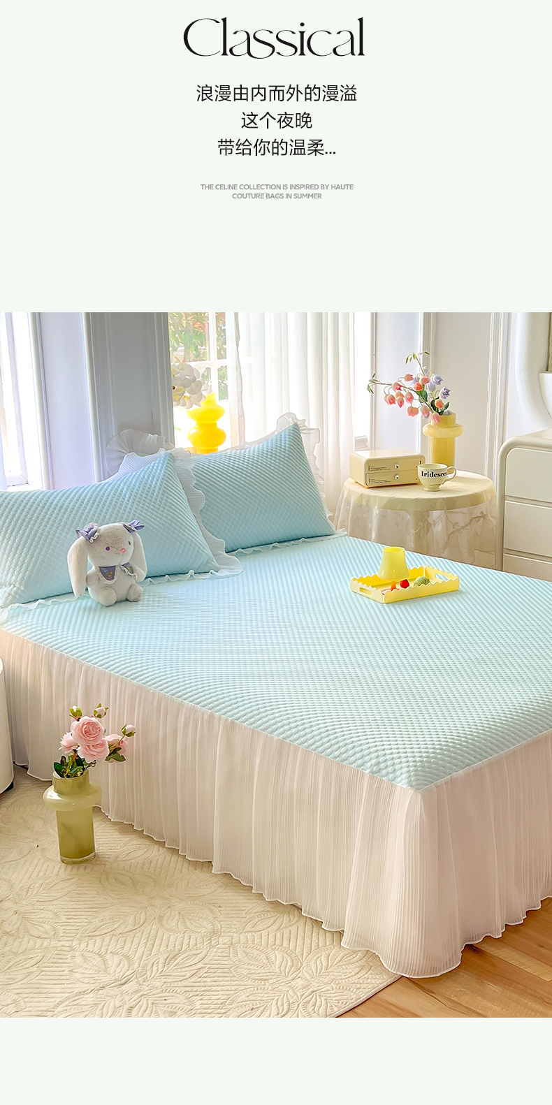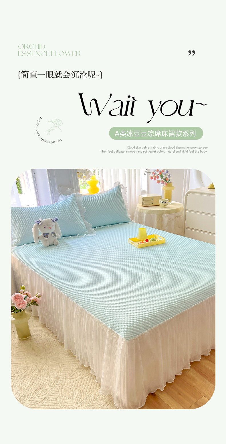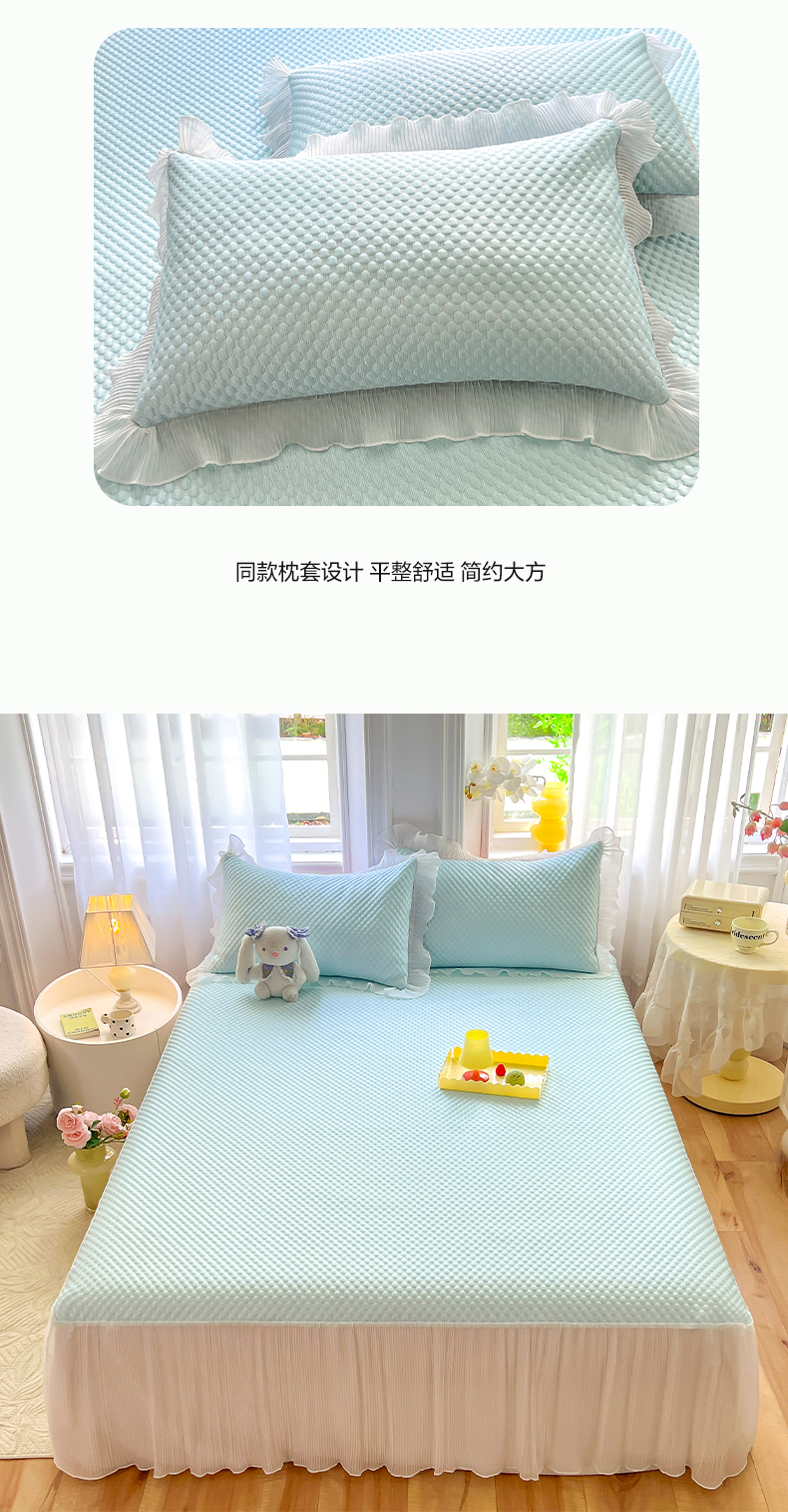 商品名称:逸尚阁 2025新款A类冰豆豆凉席床裙款系列 冰豆豆-天空蓝