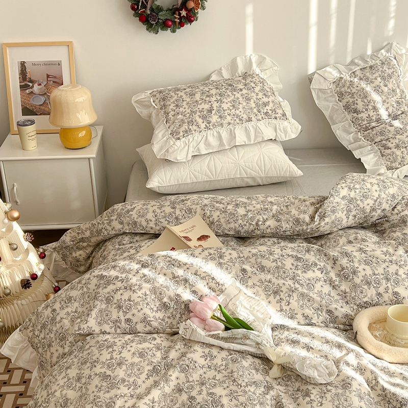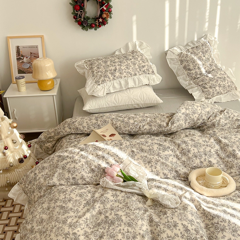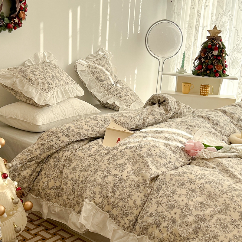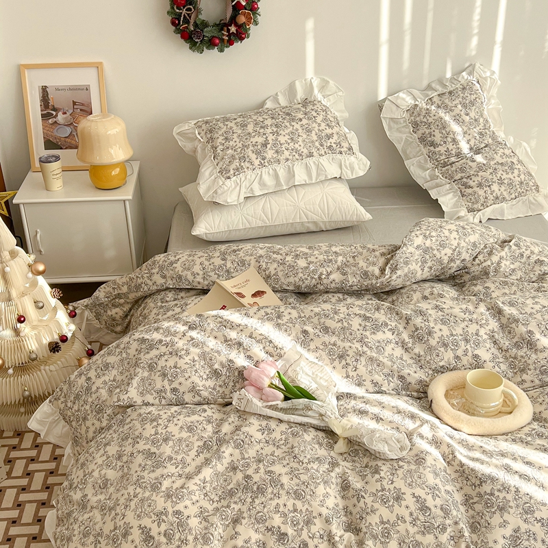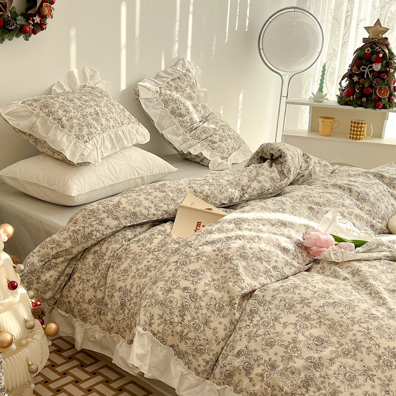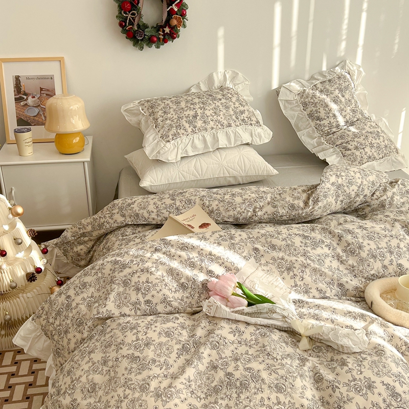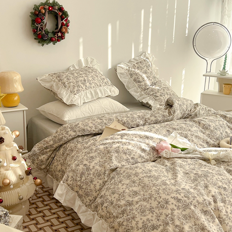 昔可家纺 2024新款全棉白花边复古花系列四件套 莫里斯花房