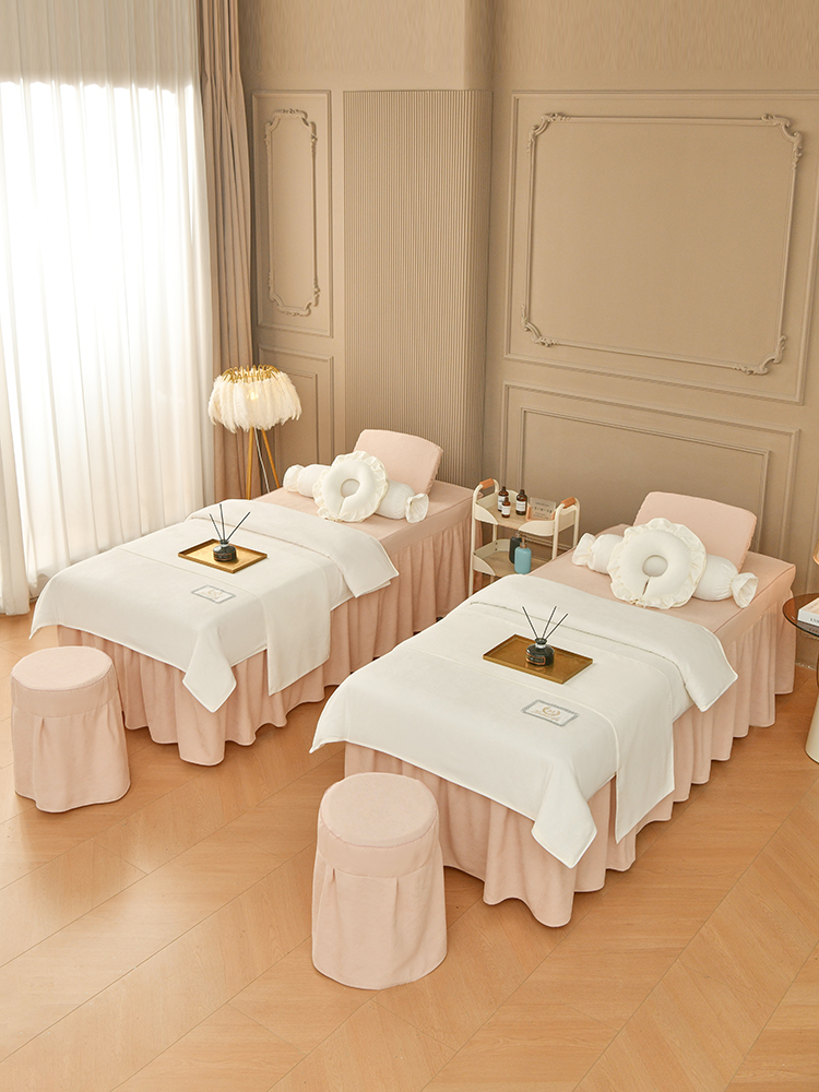 不打烊家纺 (原春恩家纺) 2025新款贡棉美容床罩系列套件-艾米尔 艾米尔米白色拼驼色