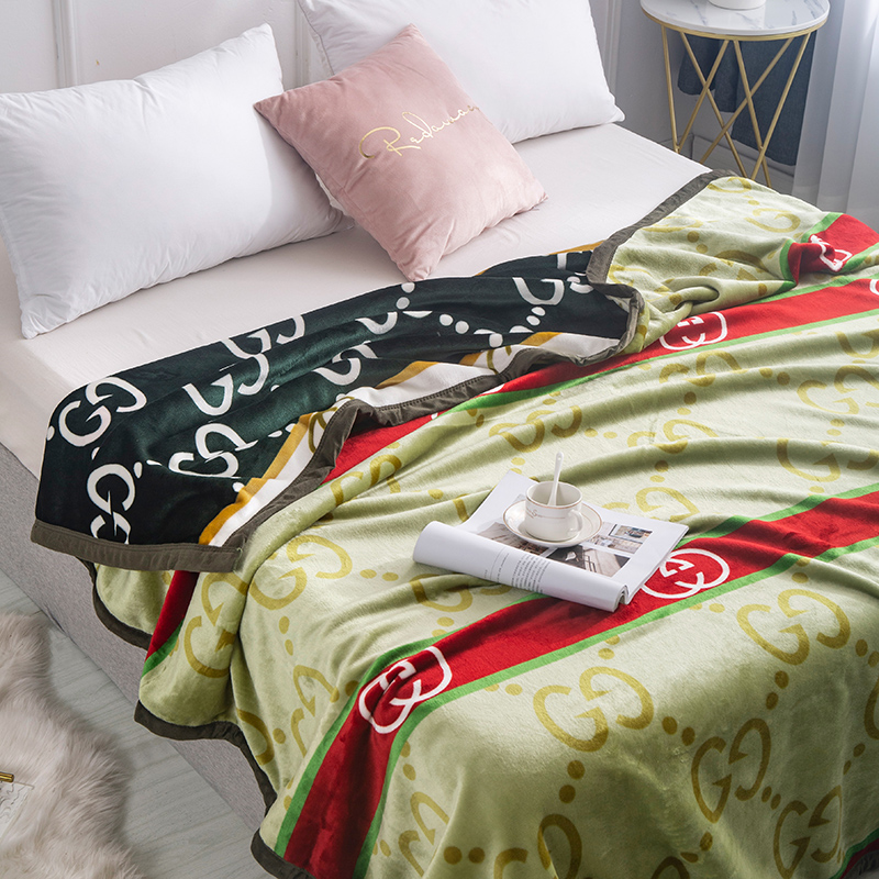 总 2023双层大版AB版云貂绒毛毯法莱绒休闲盖毯沙发空调毯,骏马,圣马罗-黄,圣马罗-兰