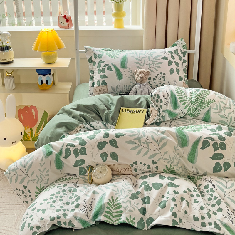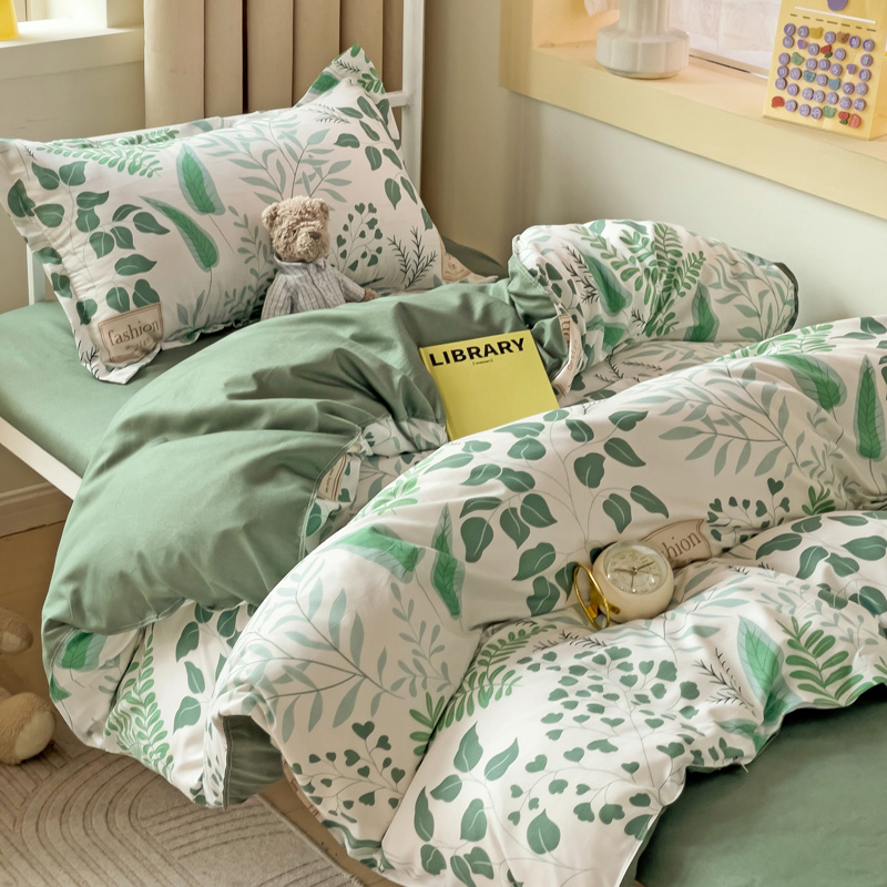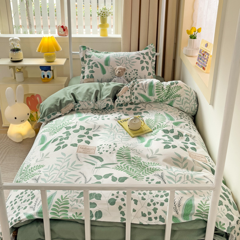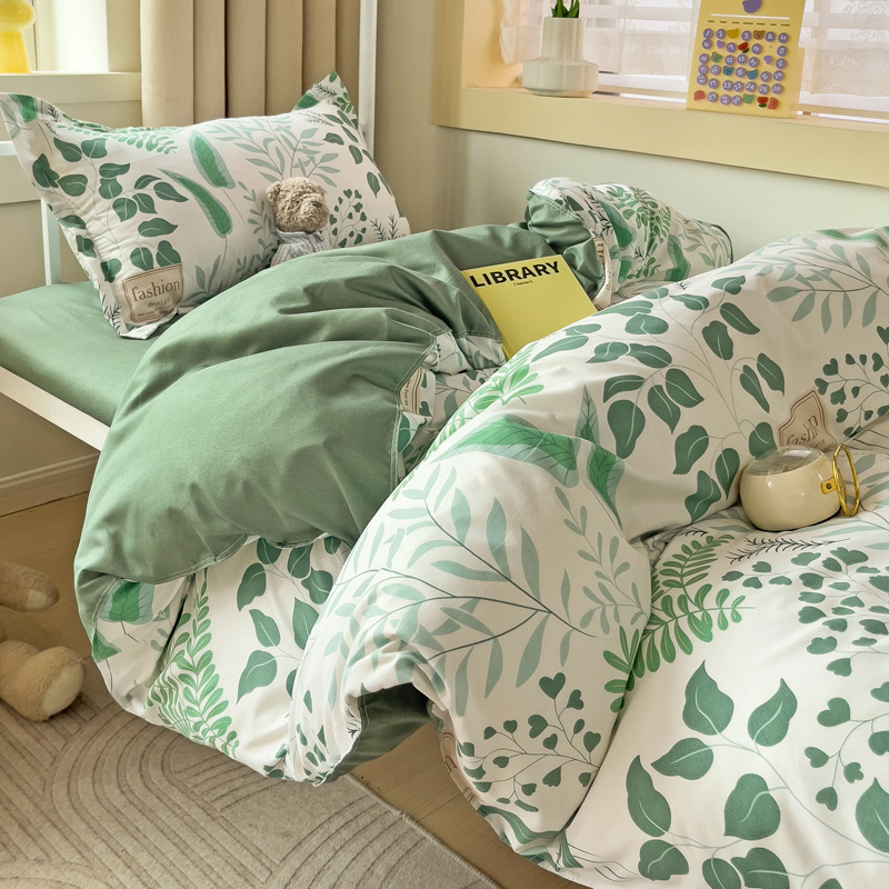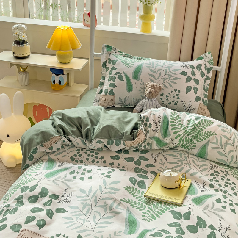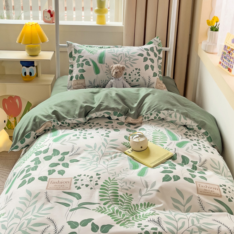 商品名称:港岛妹妹 2024新款芦荟棉印花四件套四件套学生床宿舍图 依叶