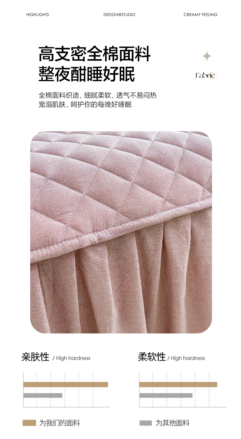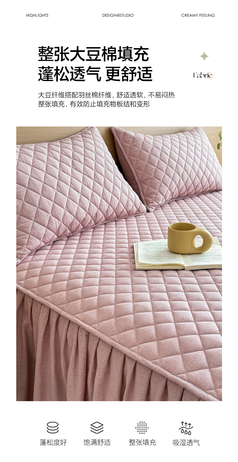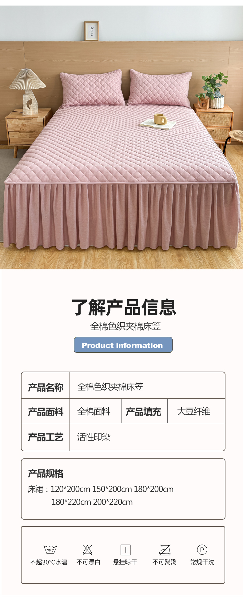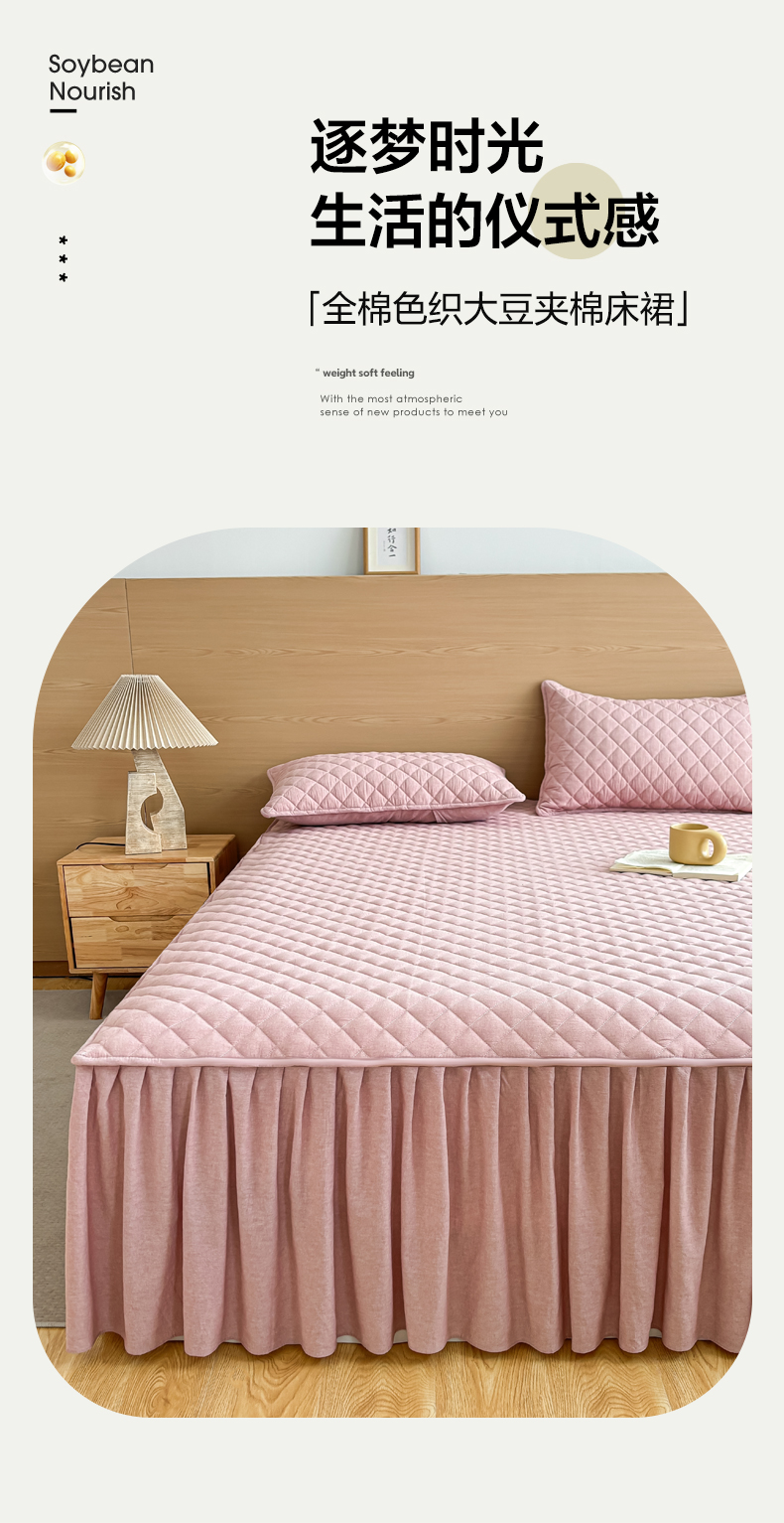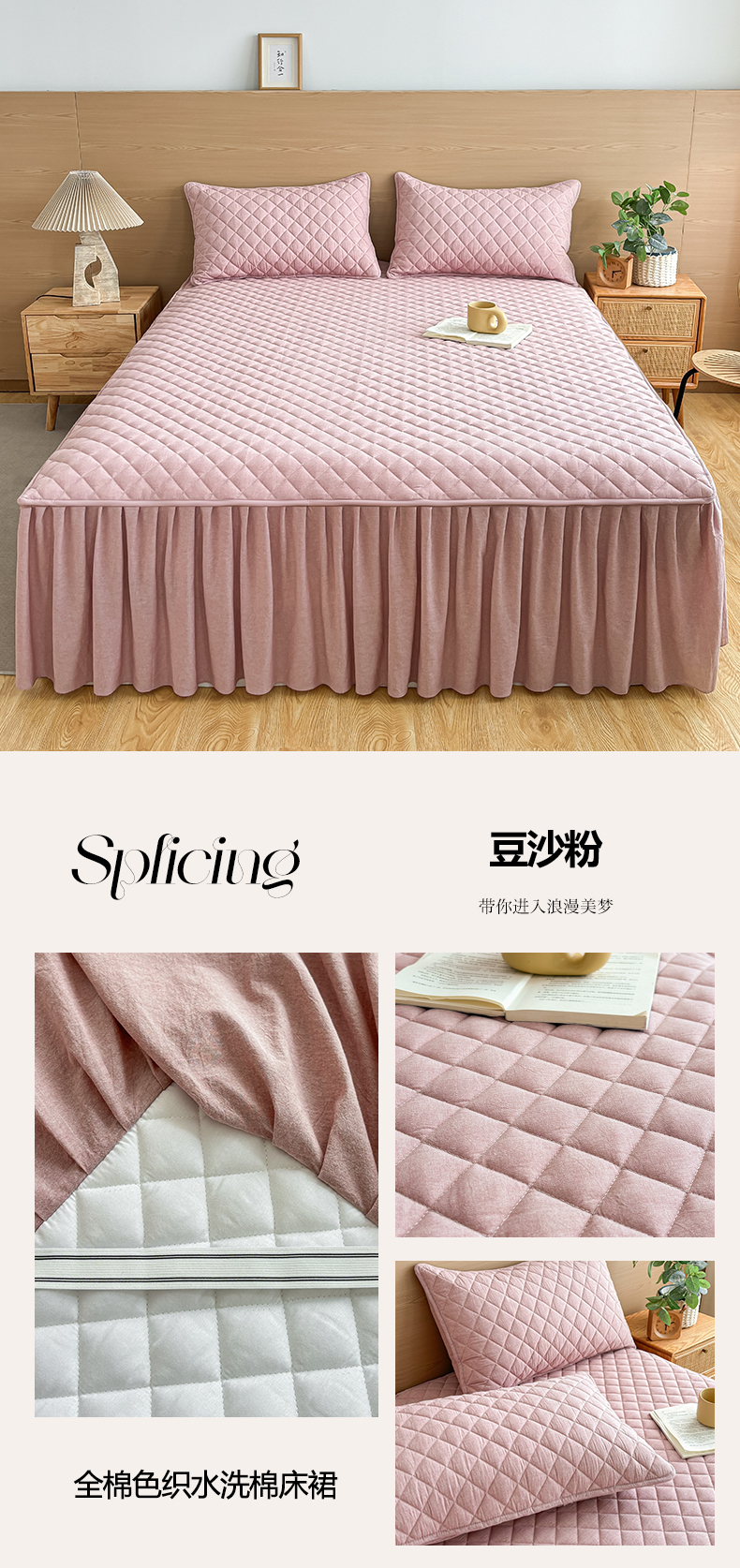商品名称:糯米猪家纺 2024新款全棉色织水洗棉夹棉床裙 豆沙粉